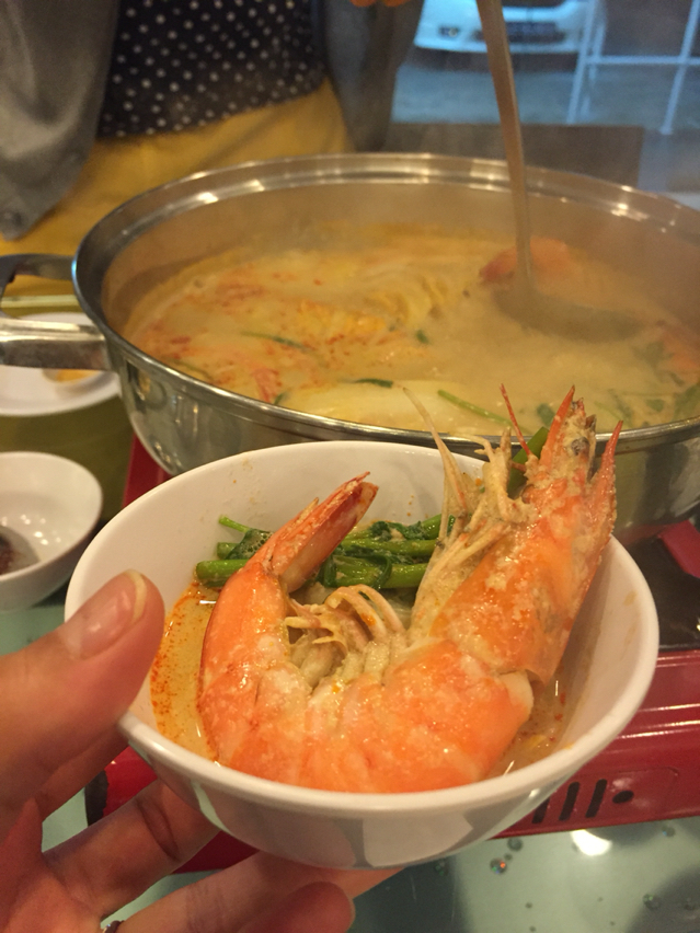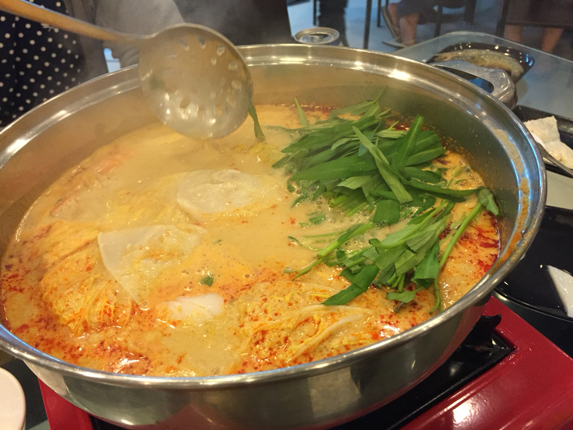 ココナッツミルク入りの甘辛カレースープの鍋という感じです。