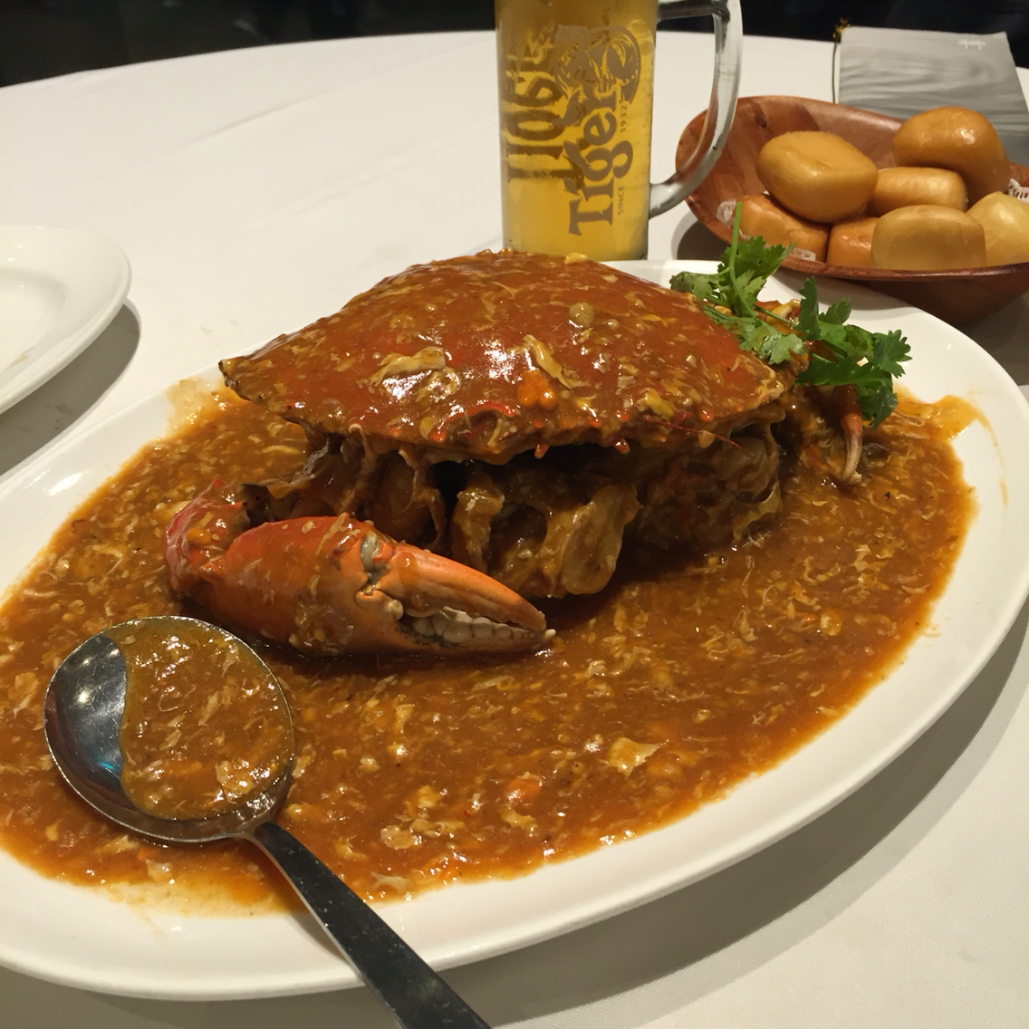 チリクラブはお店にもよりますがわたしたちの食べたのはそんなに辛くはなかったですよー。シンガポールの食べ物はタイほどは辛くないです。