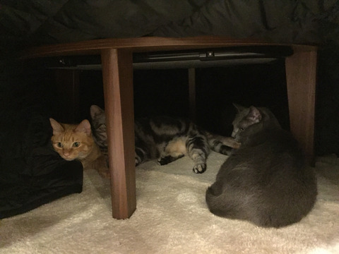おこたの中の3にゃんず、めっちゃ可愛いですね~😍