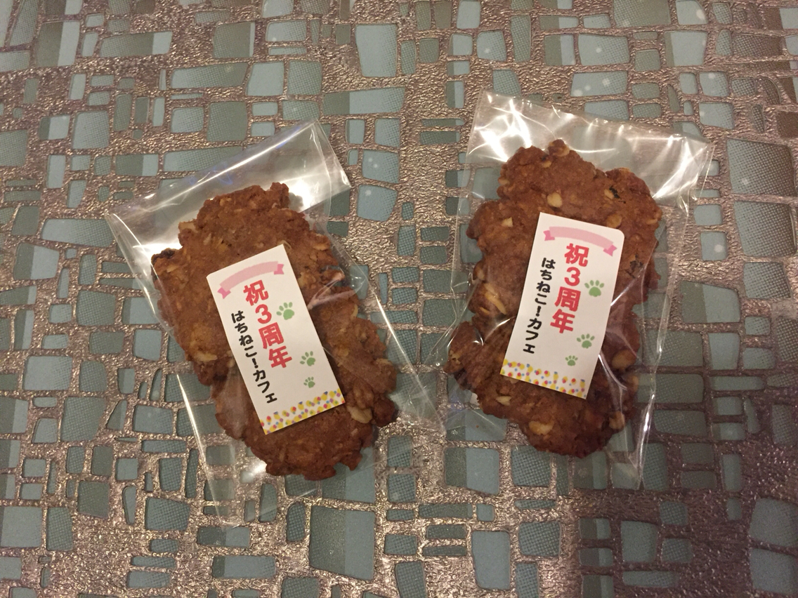 はちねこさん、3周年だそうで本のお礼に記念クッキーをいただにました。