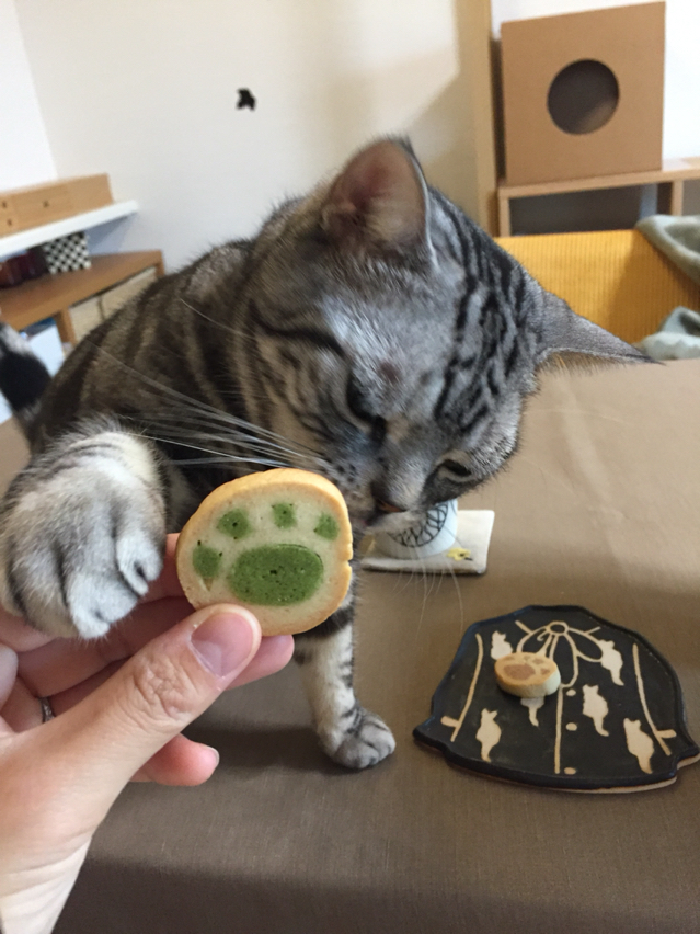 アイスボックスクッキー、一度作ったのですが簡単なぐるぐるデザインですら難しくて根を上げそうでした。なのに肉球クッキーなんてすごすぎます!まず作る工程の紙を見て尊敬でした!難しそうで私には出来ません・・(笑)