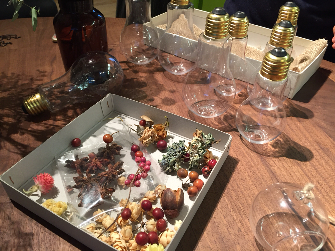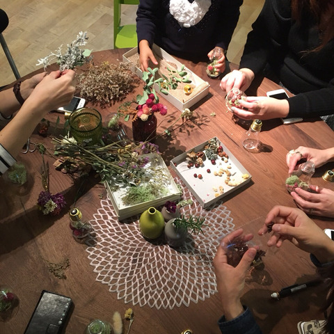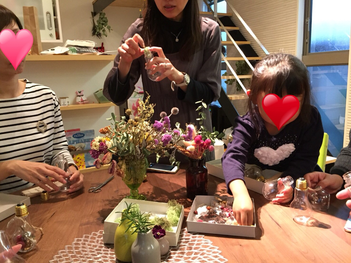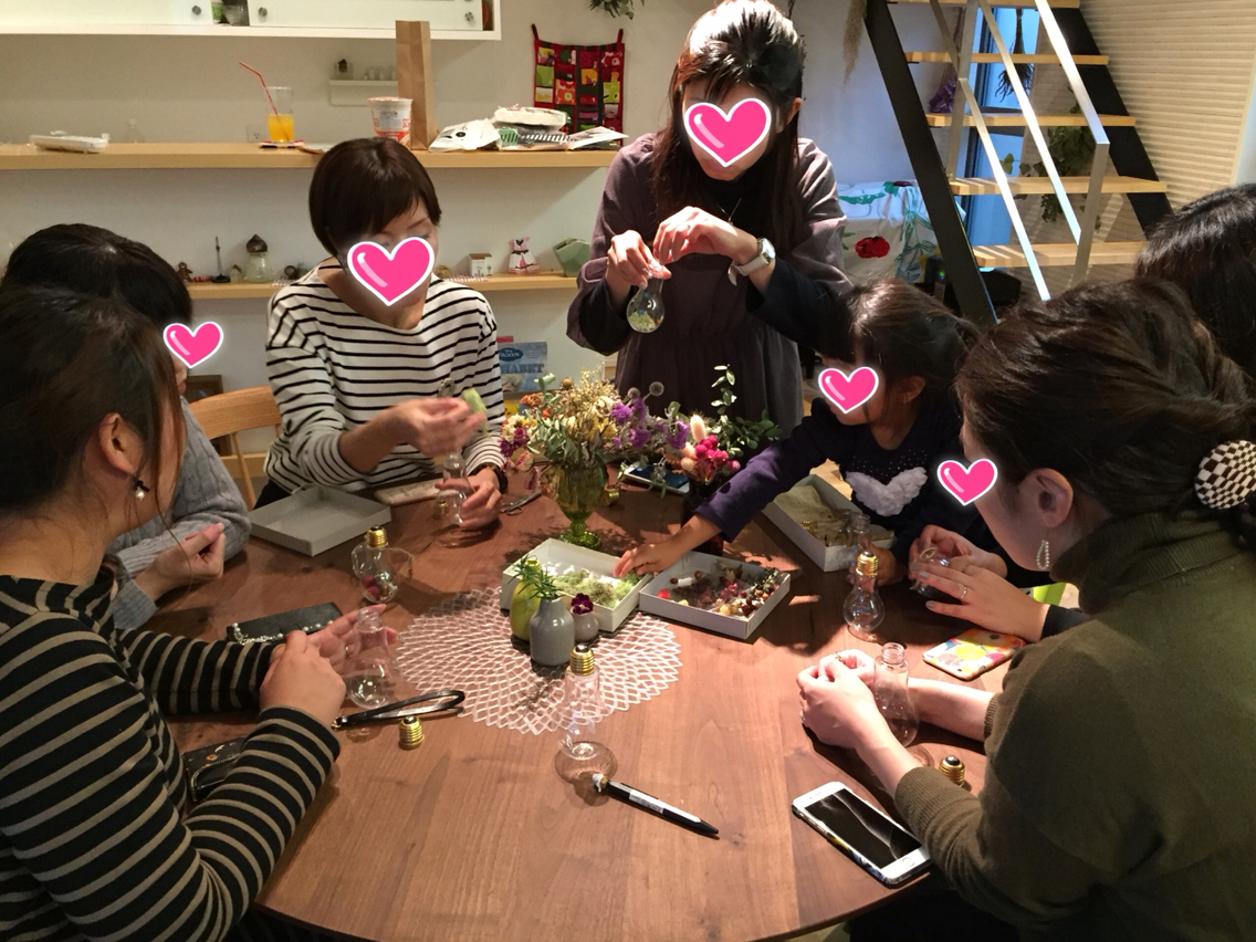 ワークショップは不器用な 時間がないわたしたちでも簡単に出来て持って帰りやすいというテラリウムを選んでくれました。