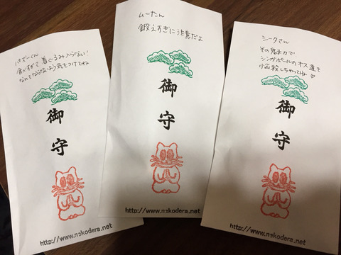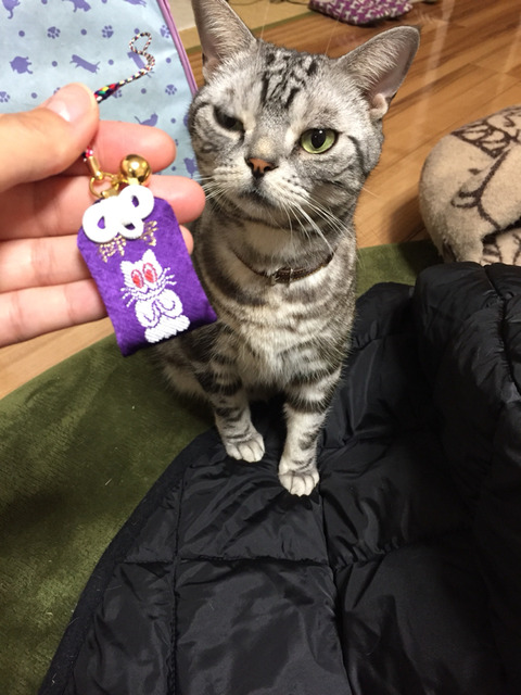 joliちゃん、にゃんずの引越しを心配して、こんなお守りをくれました(´;Д;`)