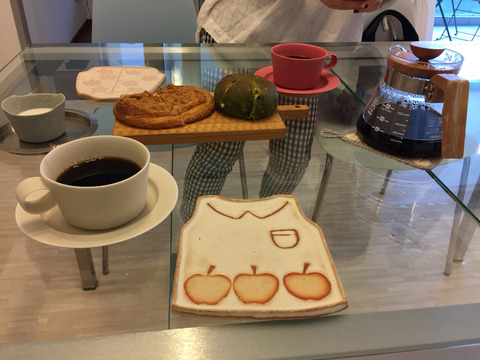というわけで1ヶ所だけパン屋さんに寄って買って帰り、にゃんションにお誘いしました。
