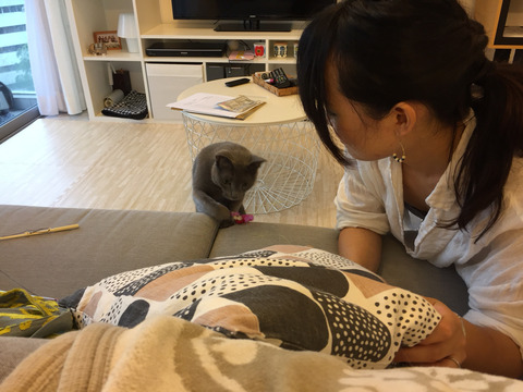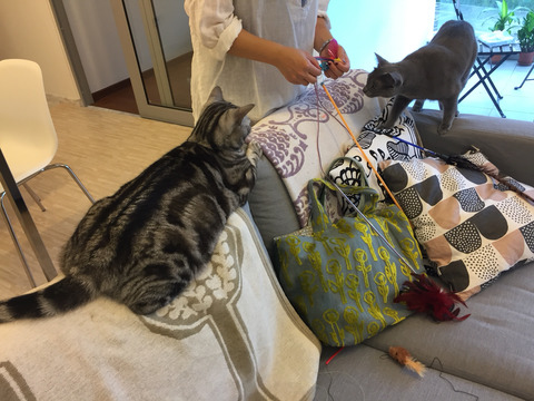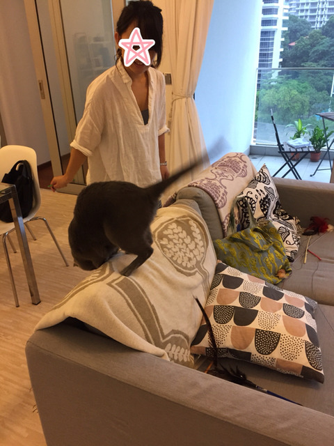 シンガポールでの初めてのお客さんにうっきうきのにゃんず