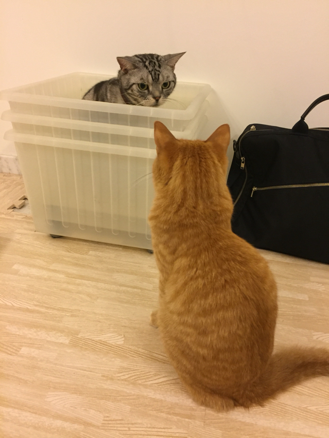 残念ながら3匹はなかなか一緒に箱に入らないんですよー( ;∀;)