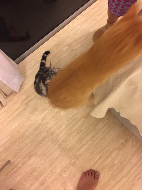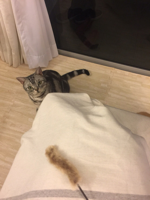 UR氏が仕事から帰って来て、2人でにゃんずと遊んでたときのこと。