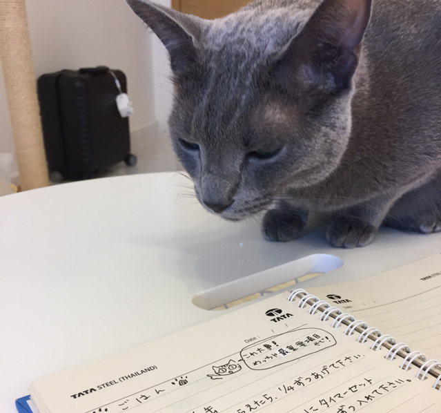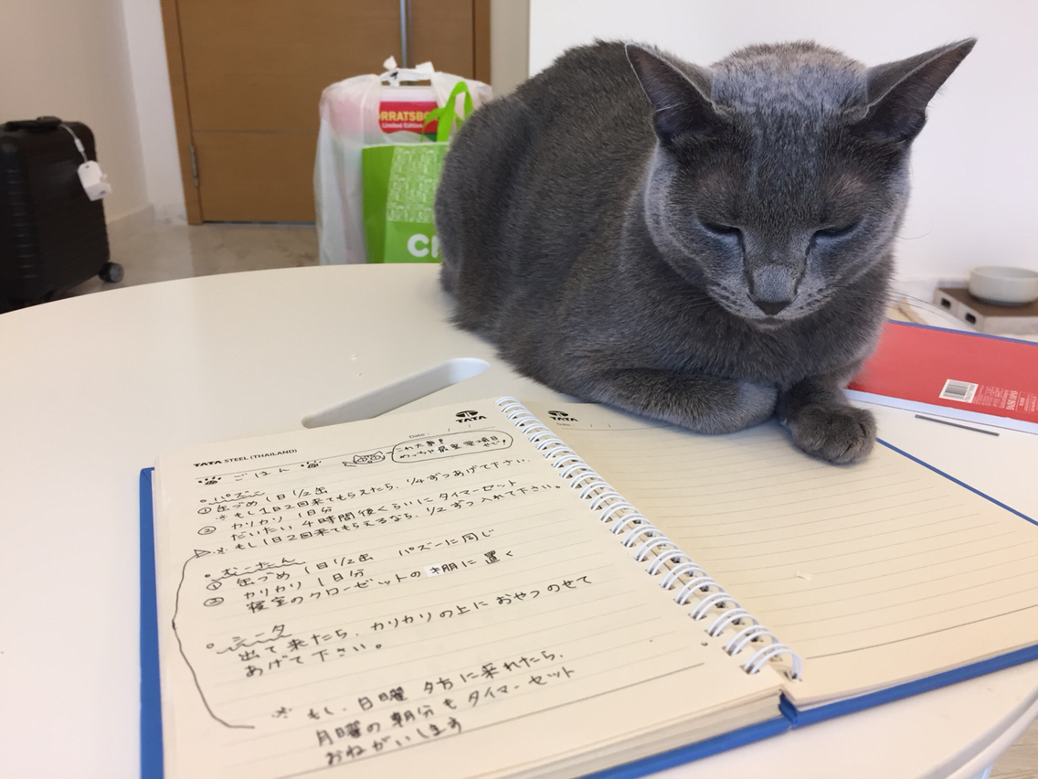 先日遊びに来てくれたお友達には旅行中のにゃんずのお世話をお願いしました。