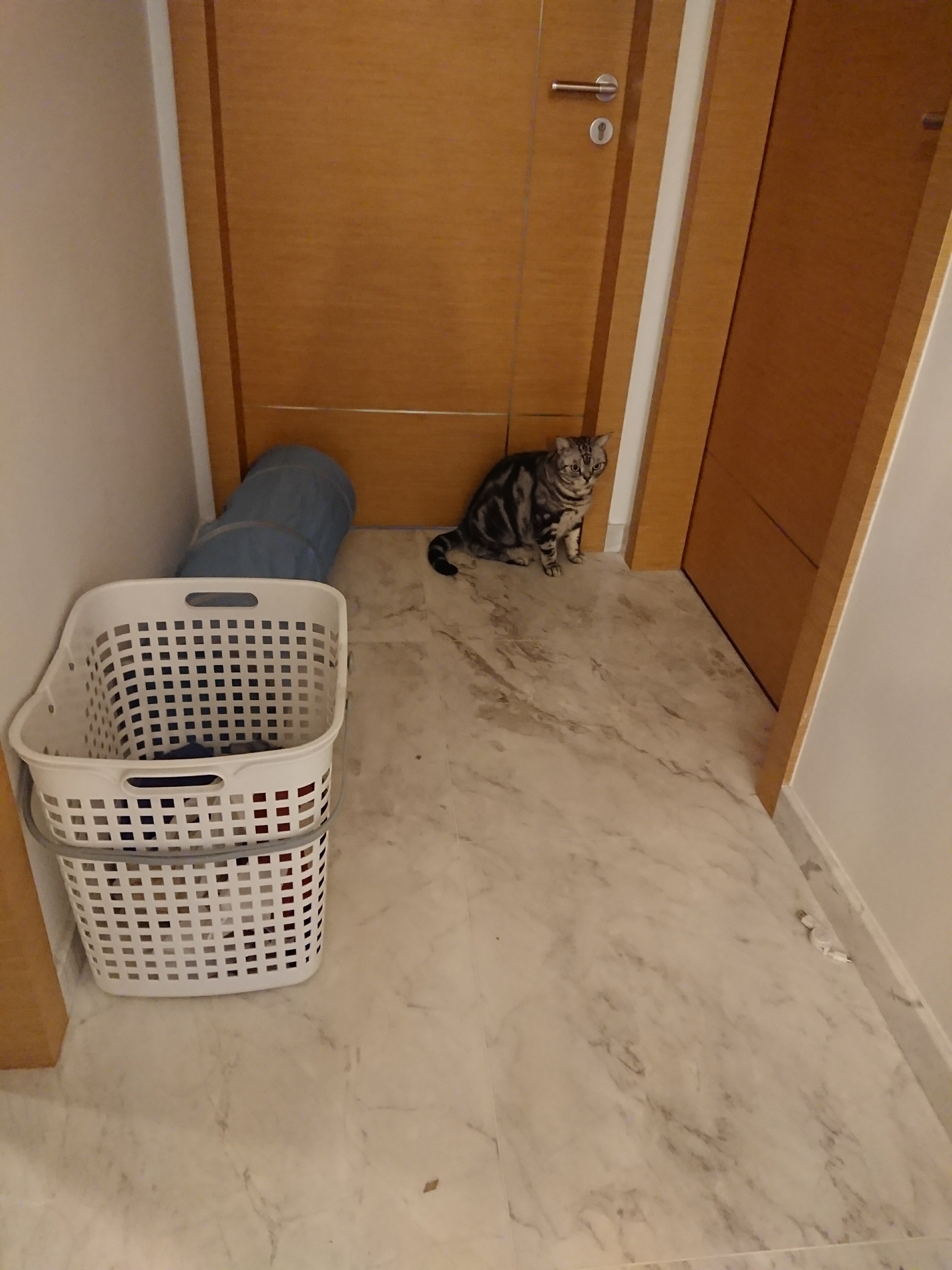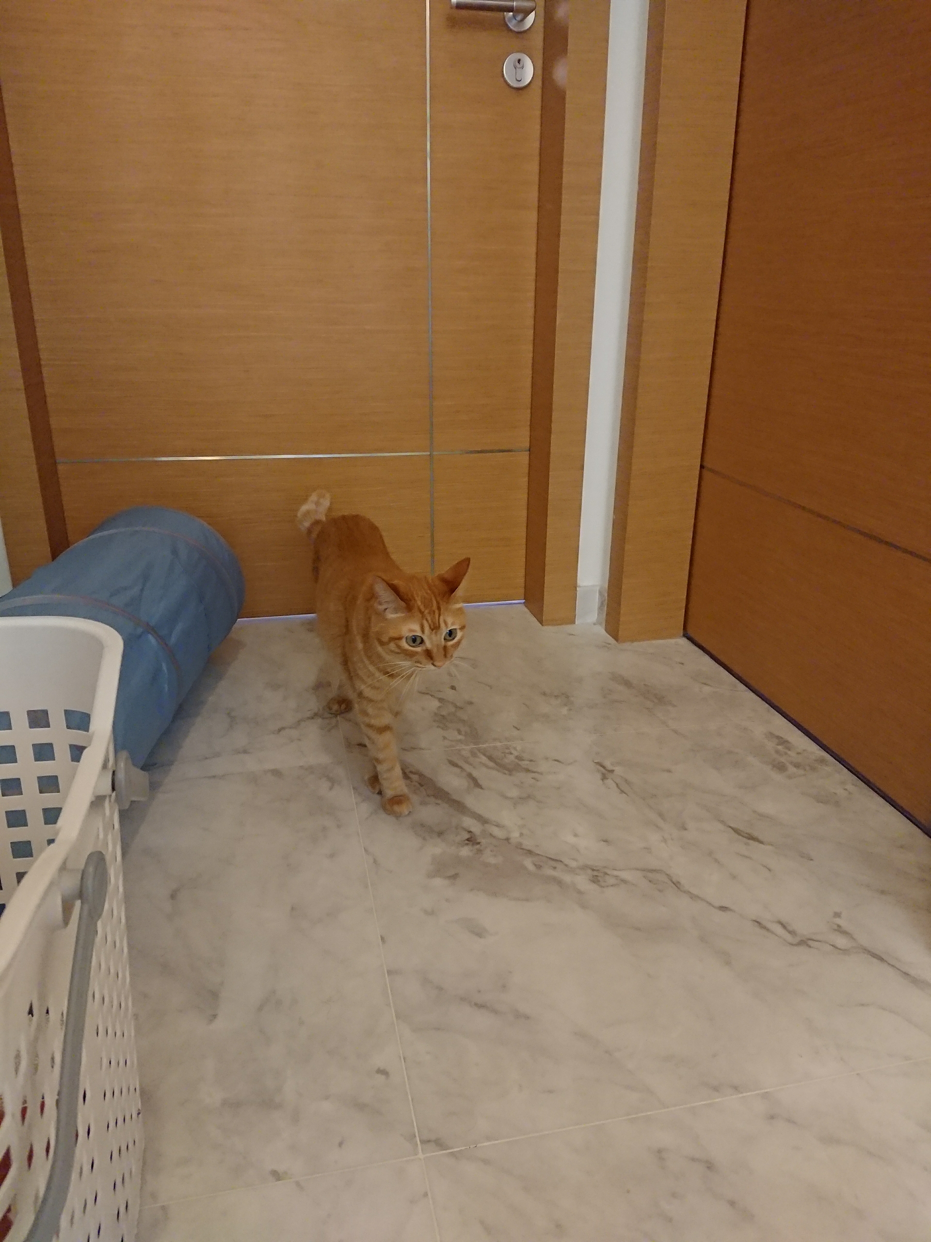 ベッドの下に逃げ込まれたら手が出せなくなるので、お客様部屋のドアを封鎖