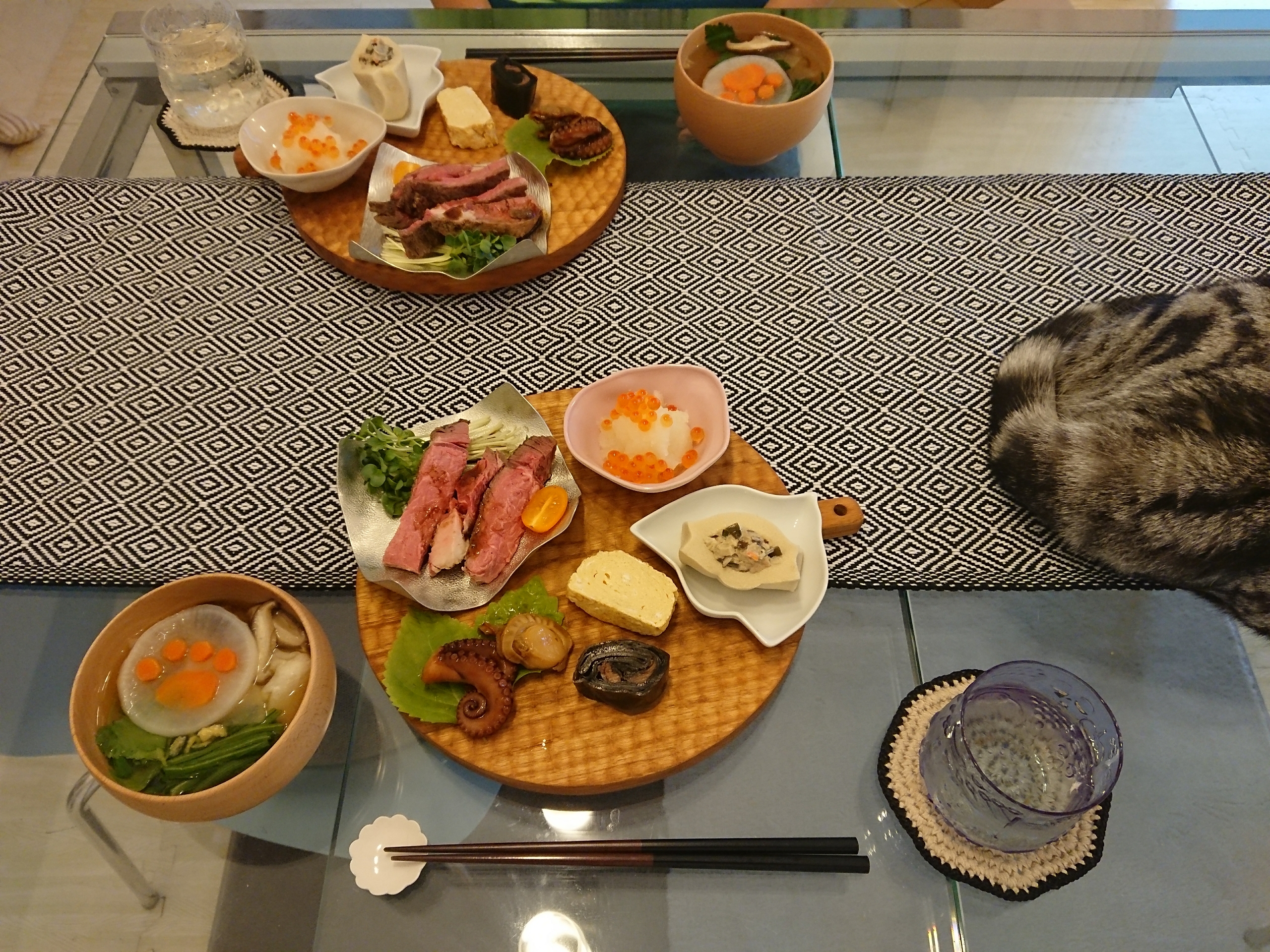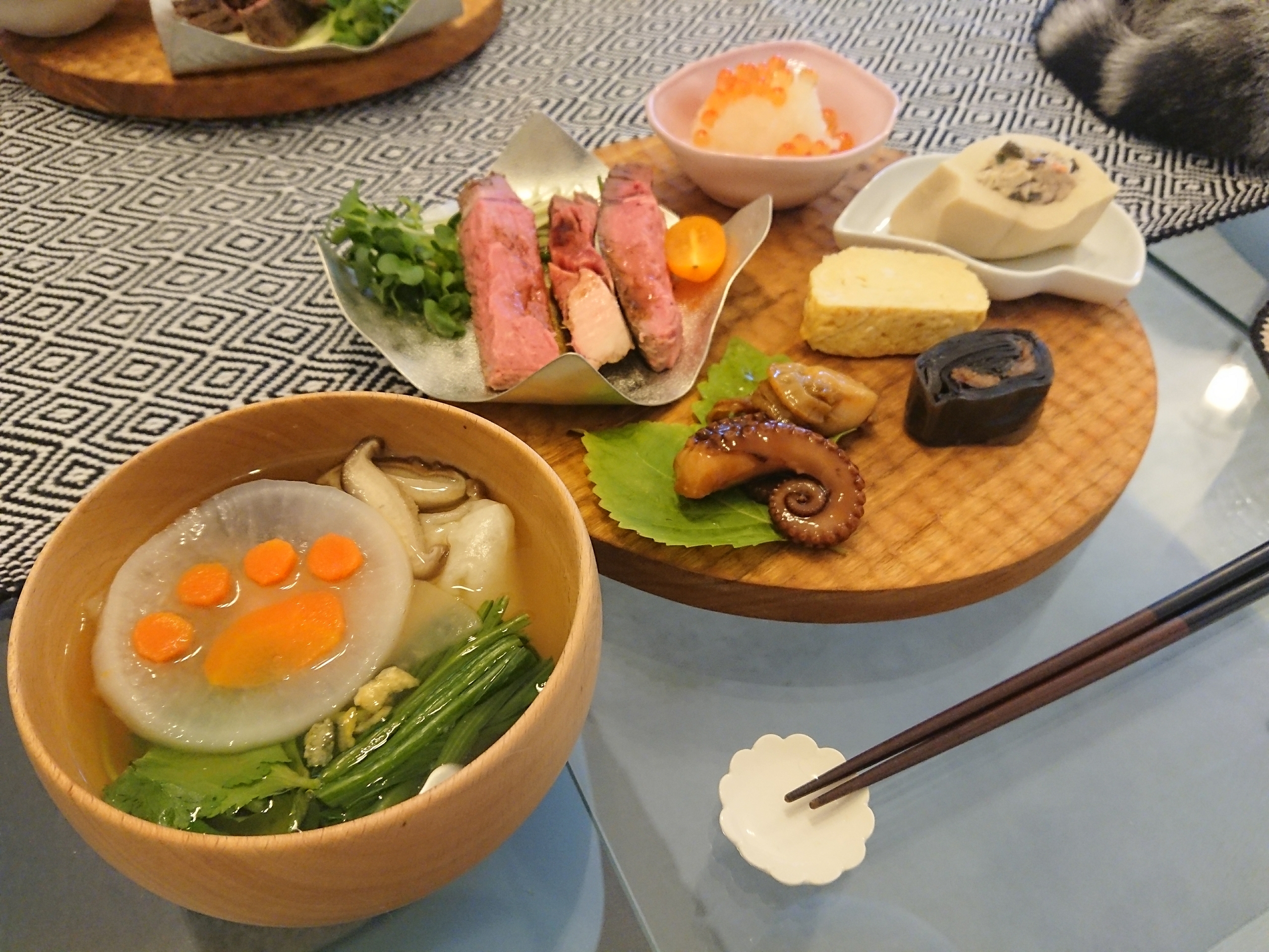 りょこさんの料理の腕前には感心させられてばかりですが、お雑煮の肉球大根&人参可愛い💕私も梅人参くらいは飾りますが、眼から鱗のアイデアですね。早速真似したいのですが‥大根を肉球の形にくりぬいて、そこに人参を詰めて切るのかな?難しそう😓