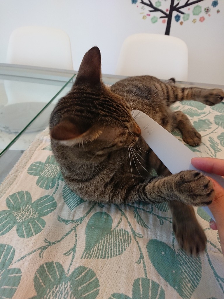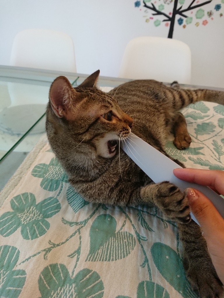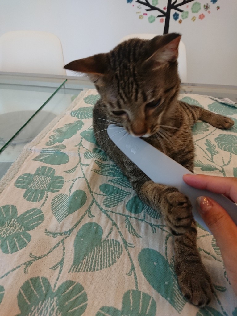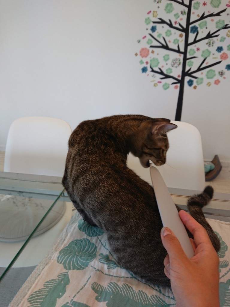 2018年04月12日 ねこじゃすり?そんなのボクには効かないよ! パズーに舐められるのが大好きなハクでも、人間に撫でられるのは好きじゃないハクねこじゃすり(コレ→★★★)ならいけるかな??“何コレ”“え?なでるの?”“やめてくれる?”がじがじ“噛むのは楽しいな!”けりけりけりおもちゃになってしまいました( ̄▽ ̄;) 気を取り直して…。そーっと、なでなでなでなでおっ、いい感じ??“……ん??”“がぶり”“サヨナラ~”顔周りよりは体の方が反応マシでしたが、やっぱりダメでした( ̄▽ ̄;)ぱずたんはこんなに気持ちよさそうなのになあ。シータさんも。“そういうの、いいです。”さすがのねこじゃすりも、ハクには効きませんでした。ねこじゃすり ピンク グレー 猫 ブラシ おもちゃ ペピイオリジナル 2018春夏“りょこは、パズーに着ぐるみ借りてハクを撫でたらいいと思うんだが。” ⑅ ◌ ⑅ ◌ ⑅ ◌ ⑅ ◌ ⑅ ◌ ⑅ ◌ ⑅ ◌ ⑅ ◌ ⑅ ◌ ⑅⑅ ◌ ⑅ ◌ 猫とのマンション暮らしのことを書いた本「にゃんションLife ねことマンションでしあわせに暮らす23の方法」を発売しました。楽天はこちらAmazonはこちらLINEでこのブログの更新通知が受け取れます。パズー目線のTwitter、ぱずったーはこちらInstagramはこちら。ブログより食べ物多め。 「にゃんずとの暮らし @Singapore」カテゴリの最新記事 < 前の記事次の記事 > コメント コメント一覧 (2) 1. ビビアン 2018年04月13日 07:10 パズたん、りょこさんに着ぐるみ貸してあげてください😆 パズたんとシータさんが気持ち良さそうなの見てると、人間の私でも羨ましくなるけど、ハクくんは違うんですね😊。毎朝パズたんにペロリしてもらってるから満足なのかな。 2. ays 2018年04月13日 13:52 はじめまして。いつも猫ちゃんの可愛い写真に癒されてます。 ハクくんは、まだ人間を警戒していて心から安心してないから、人間に触られるのを嫌がっているんですかね。 パズーくんを見習ってもっとリラックスしてほしいですね。 コメントフォーム 名前 コメント 記事の評価 リセット リセット 顔 星 情報を記憶 コメントを投稿する