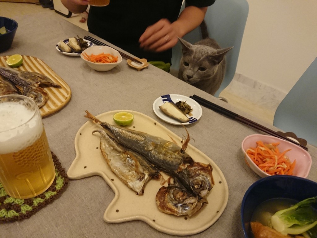 中でも鯖が1番好きなみたいで、塩振らずに焼いた鯖を一緒に食べたりしてました(*´ω`*)