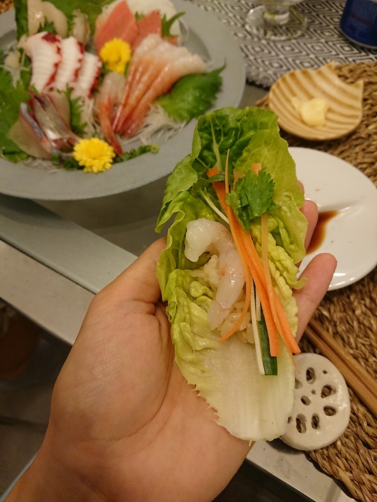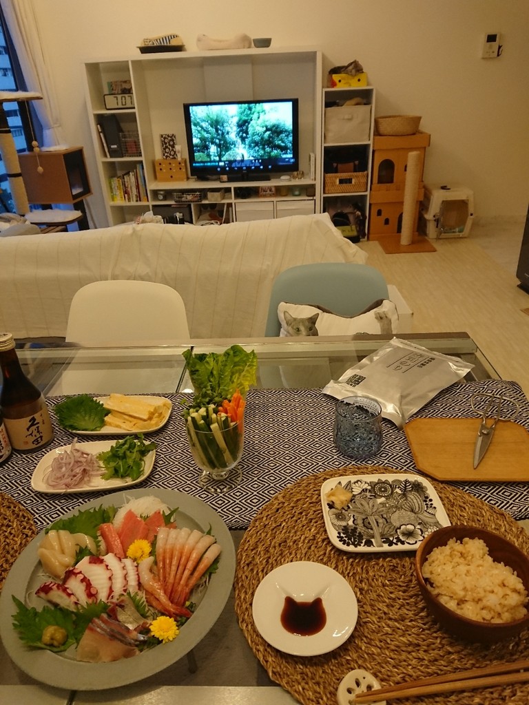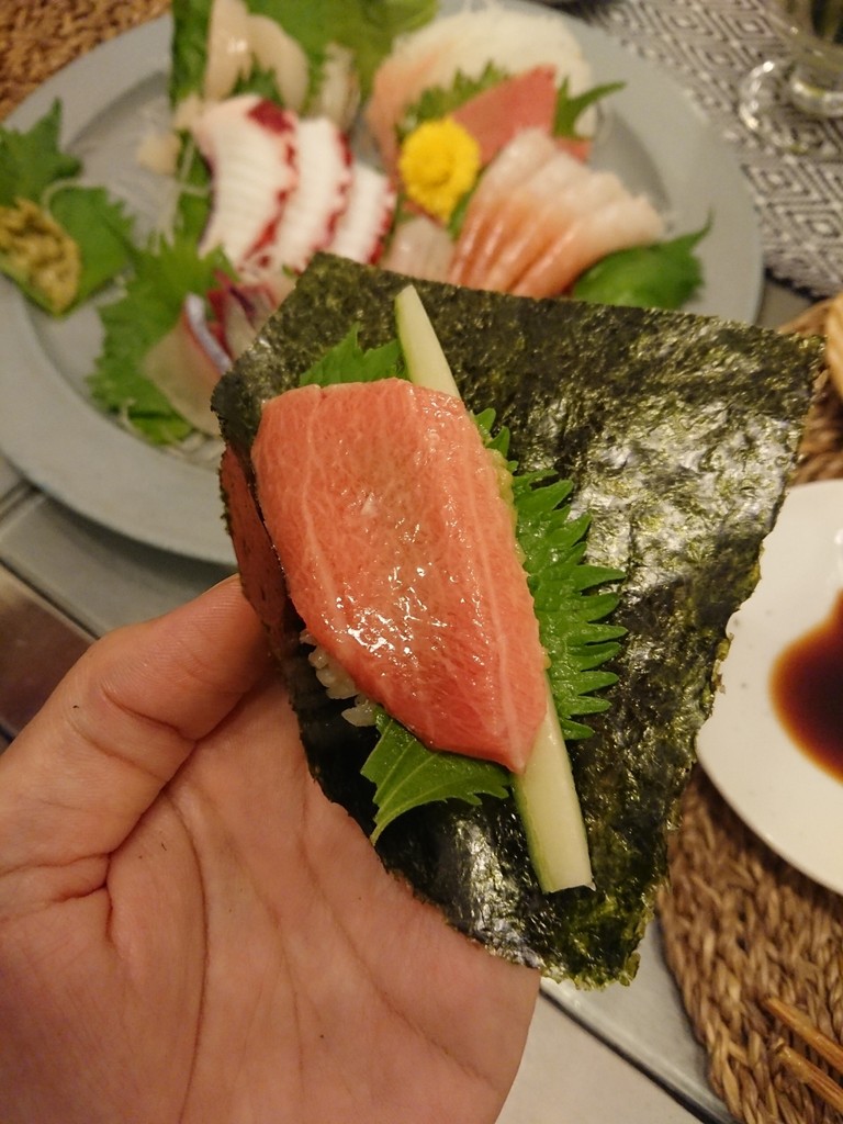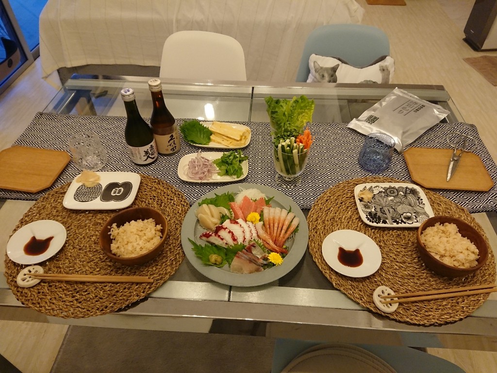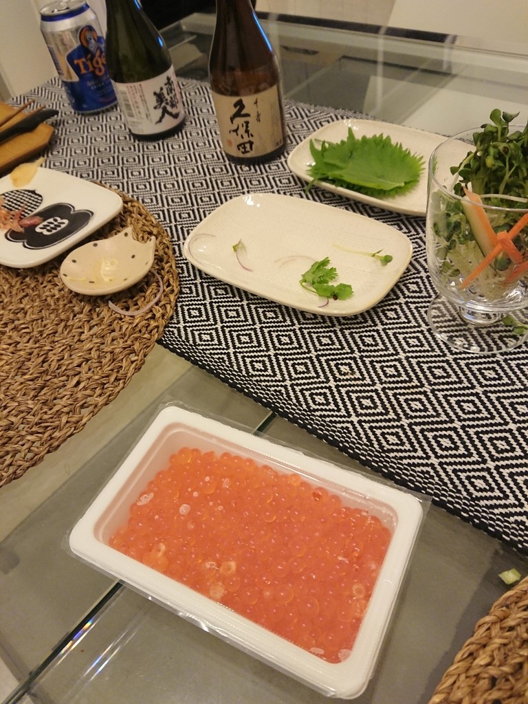 てことで、お刺身や日本酒を買ってお家で手巻き寿司をすることにしました。