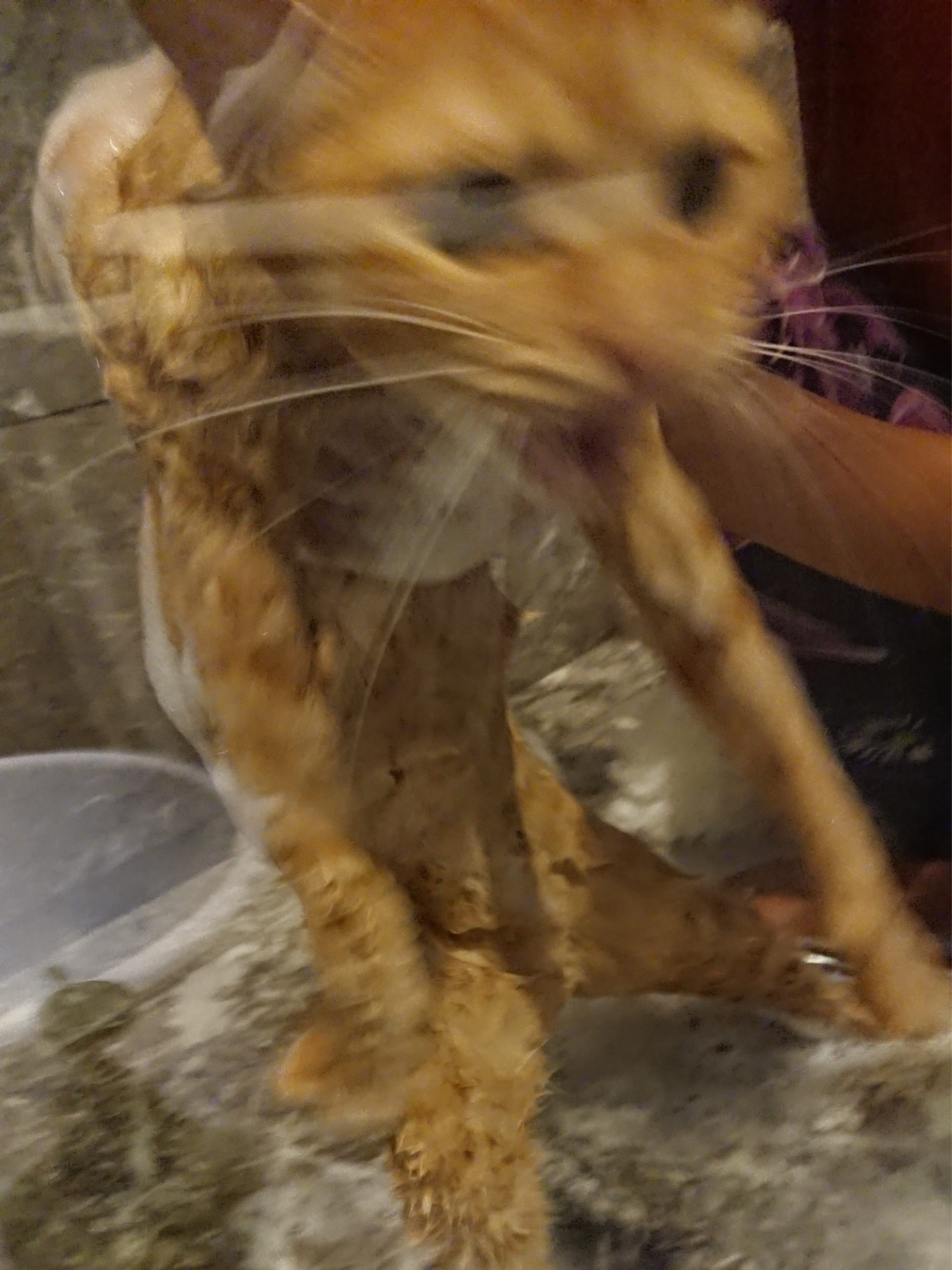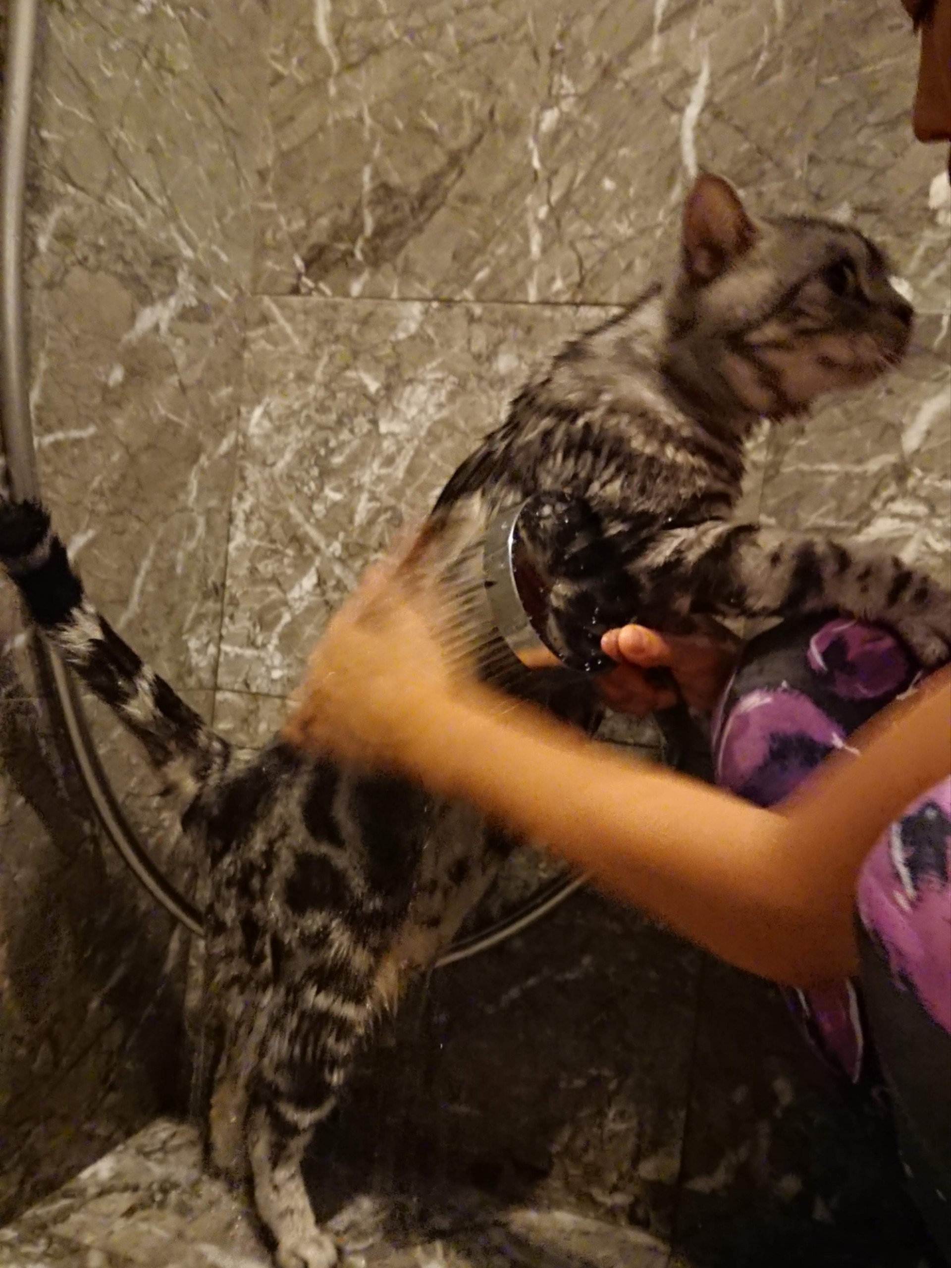 朝ごはん終わり次第、5ヶ月ぶりのにゃんずシャンプーです(๑و•̀Δ•́)و