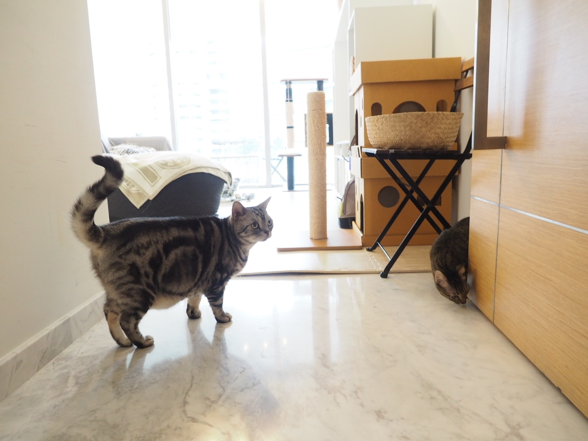 こうやって待ち伏せさせれてると、嬉しいけど猫が外に出ちゃいそうで危ないんです💦