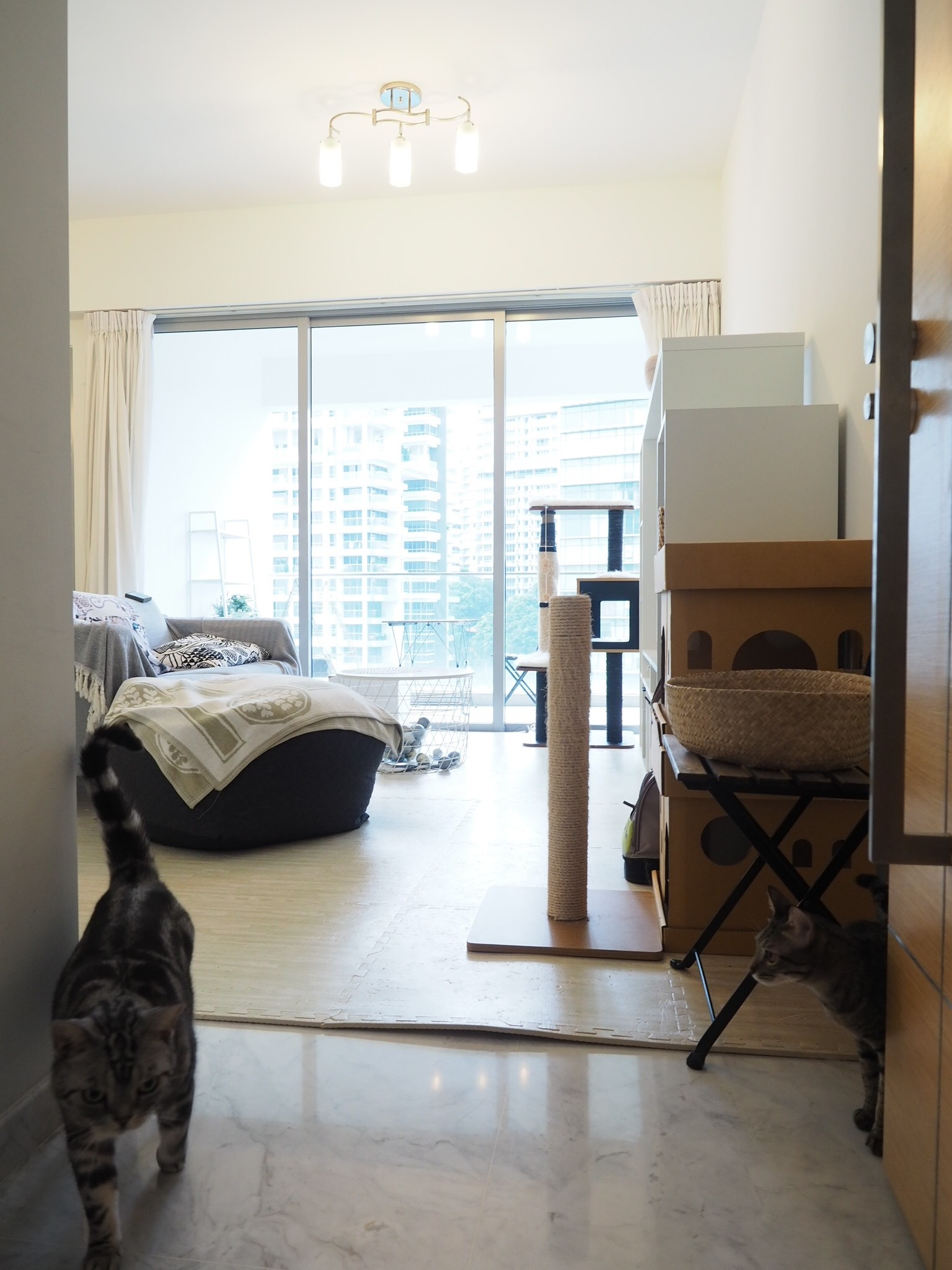 なので、猫が外に出るのを防ぐため、我が家はプライベートエレベーターの造りのマンションを選んで住んでいます。