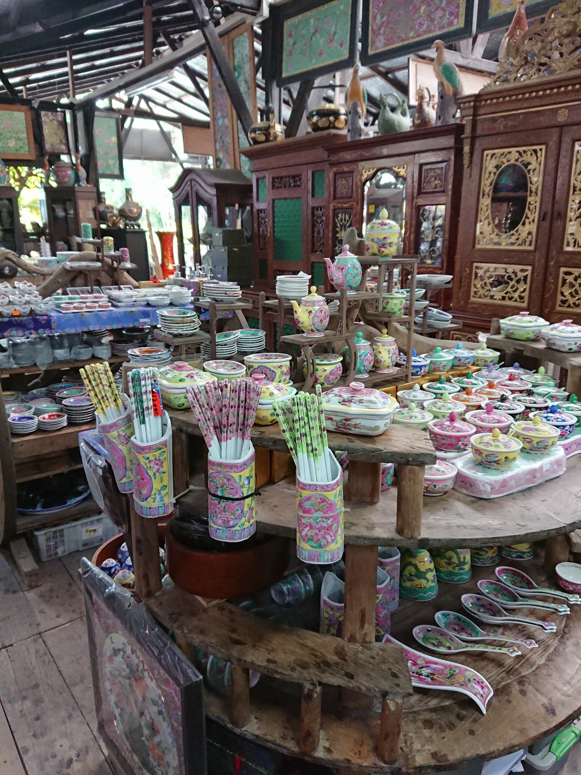 こちらの窯元では、シンガポールお土産として有名なプラナカン食器がとてもたくさん売られています。