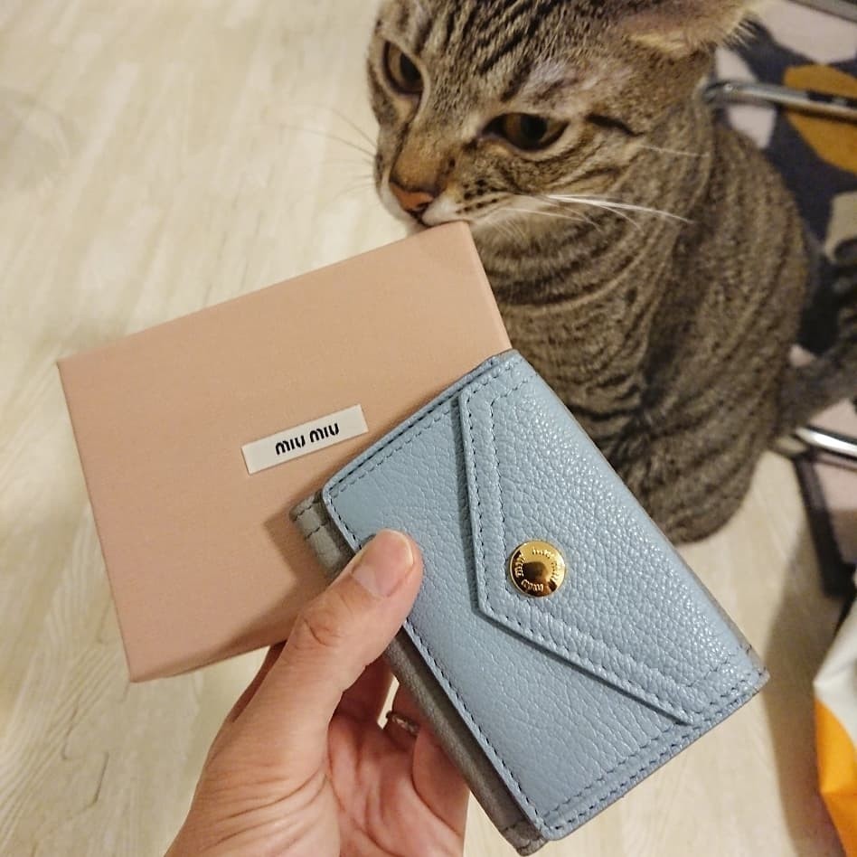 ミニ財布にしよう!と決めてから、いろんなブランドのを見比べましたが、このむーたんぽい配色にやられてmiumiuに決めました。