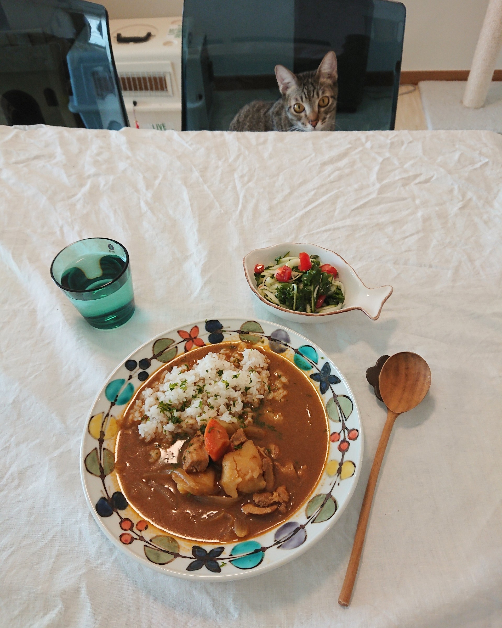 ルウがさらさらなので、本当はごはんと別盛りにしたほうがいいんですが、面倒で一緒にしたらごはんがひたひたになってしまいました(;'∀')