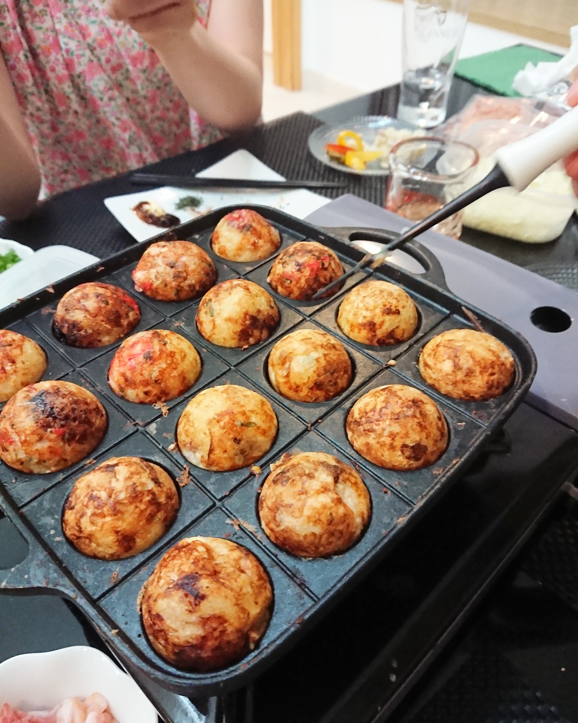 晩ごはんはたこ焼きパーティーでした。