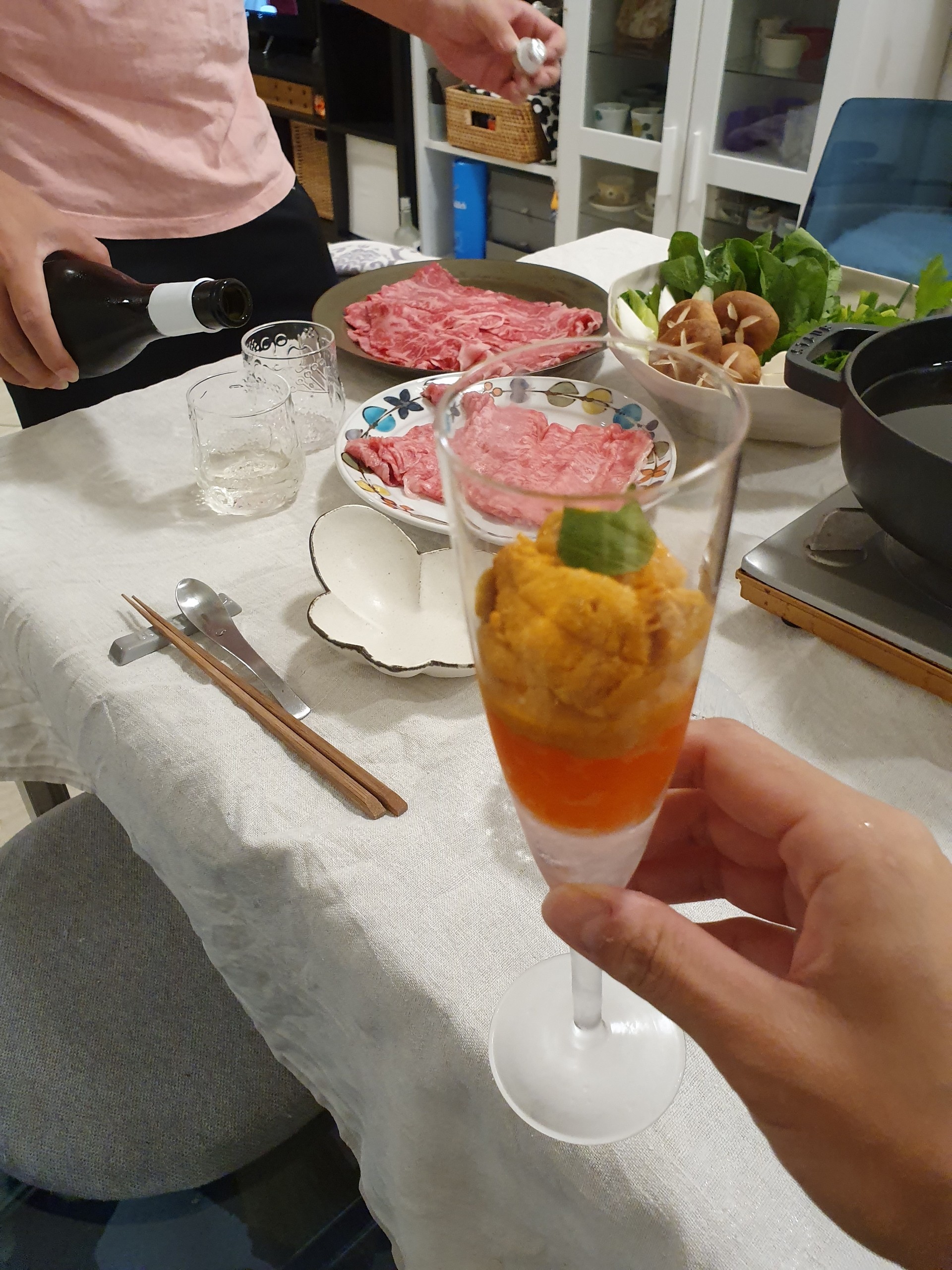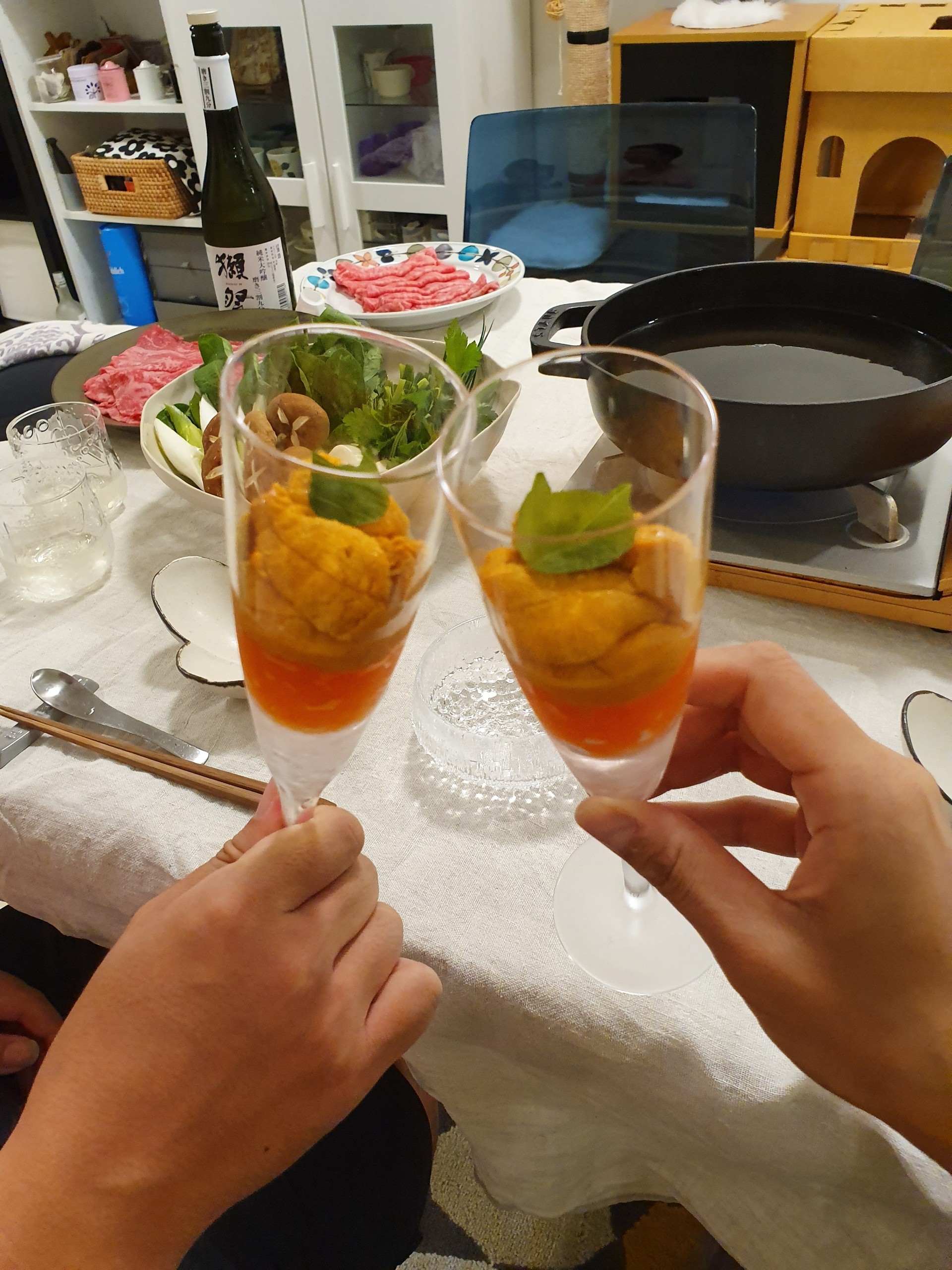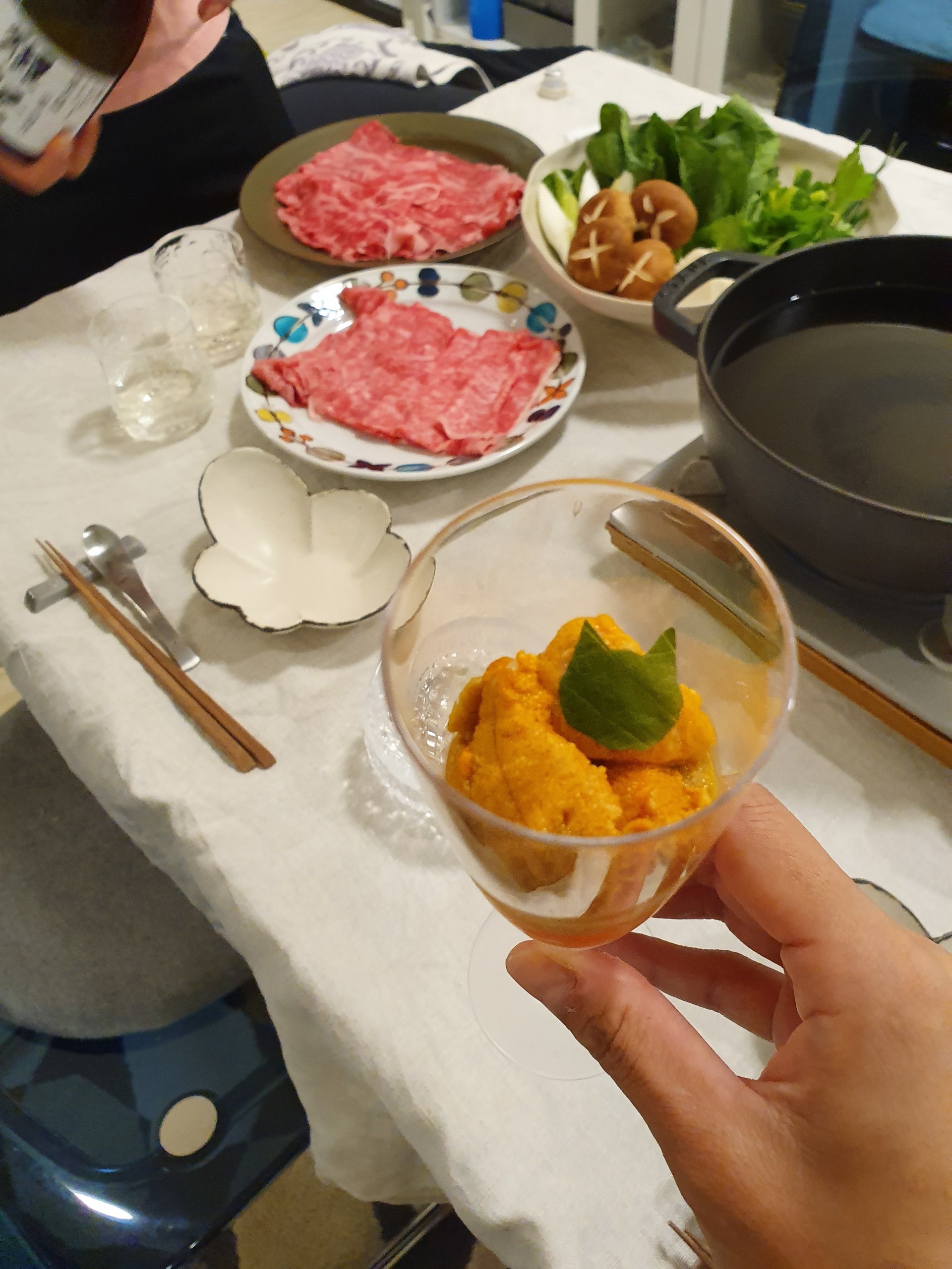 しゃぶしゃぶで手間かけてない分、ウニといくらで痛風カクテル作ってゴージャス感出しました(笑)