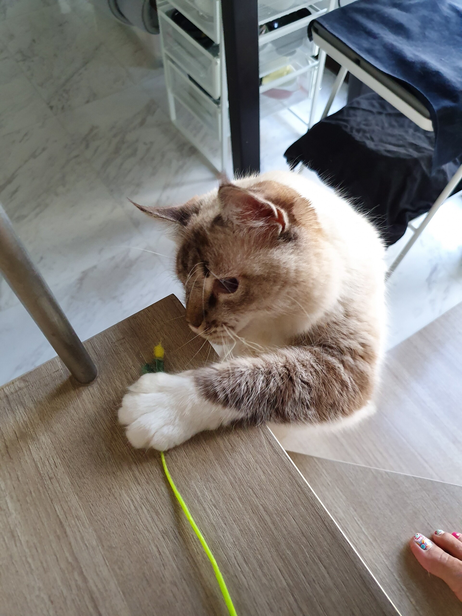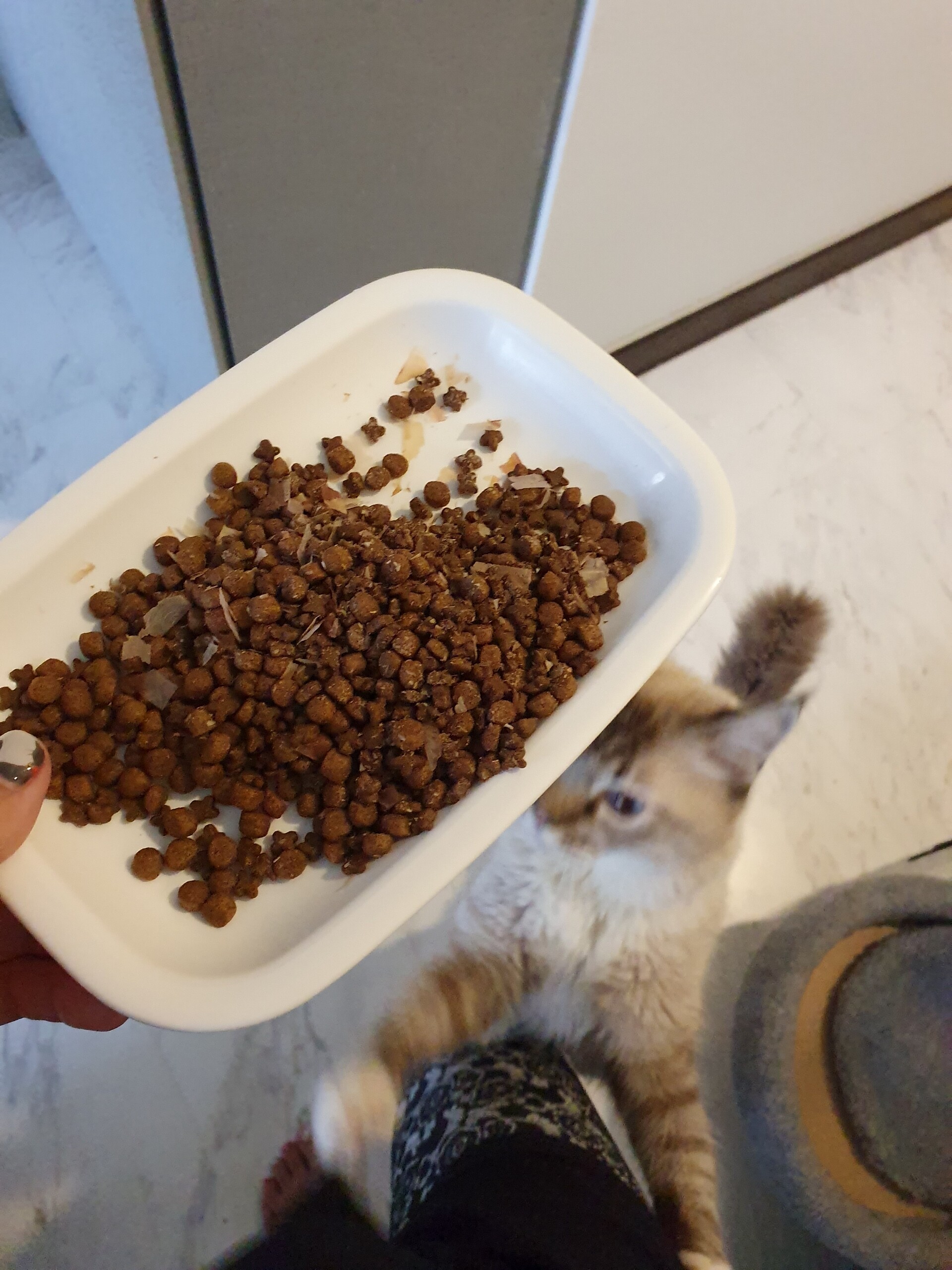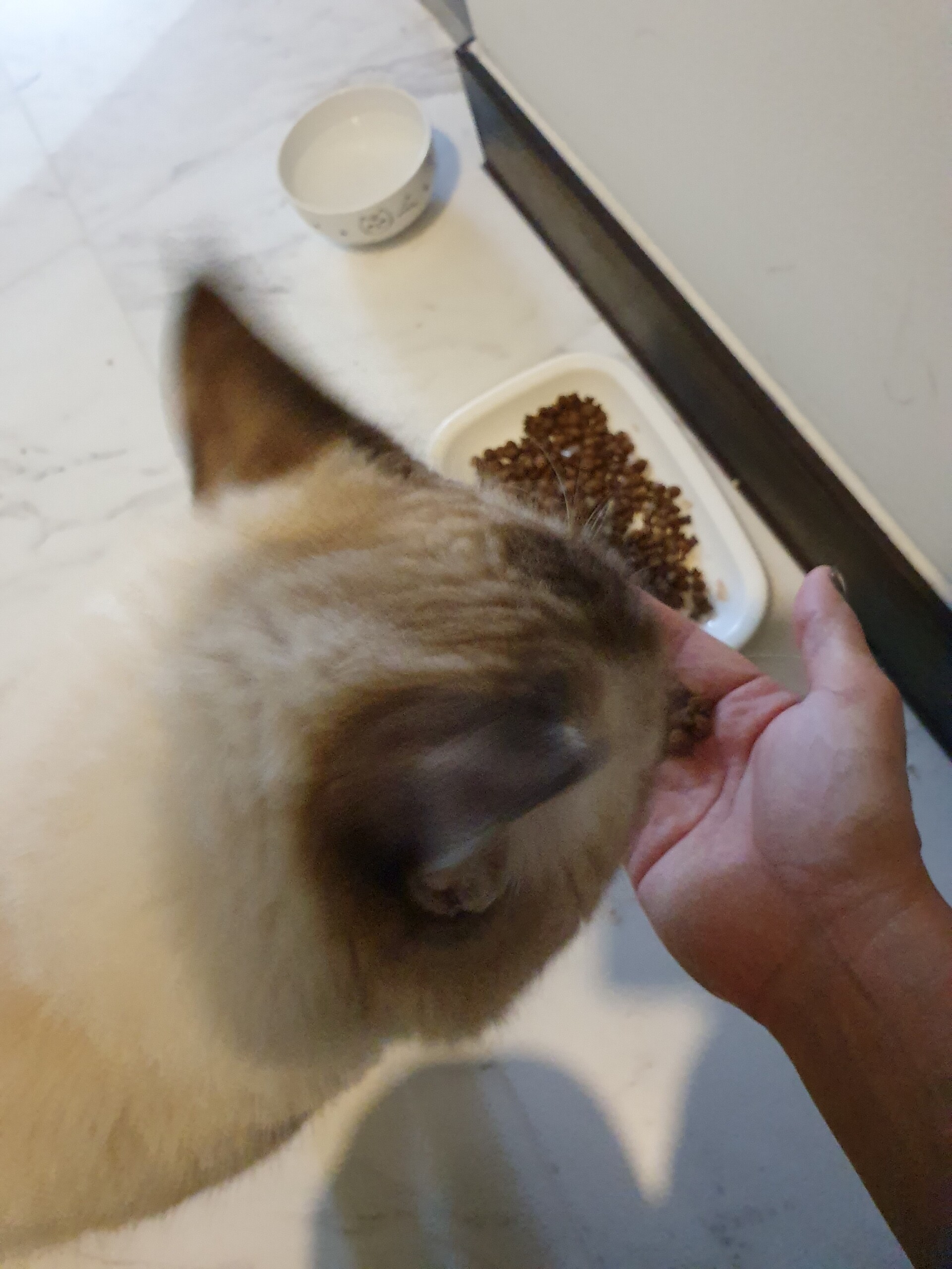遊んだあと、わたしの帰り際に「しゃーなし感」漂わせながらカリカリ食べてました(笑)