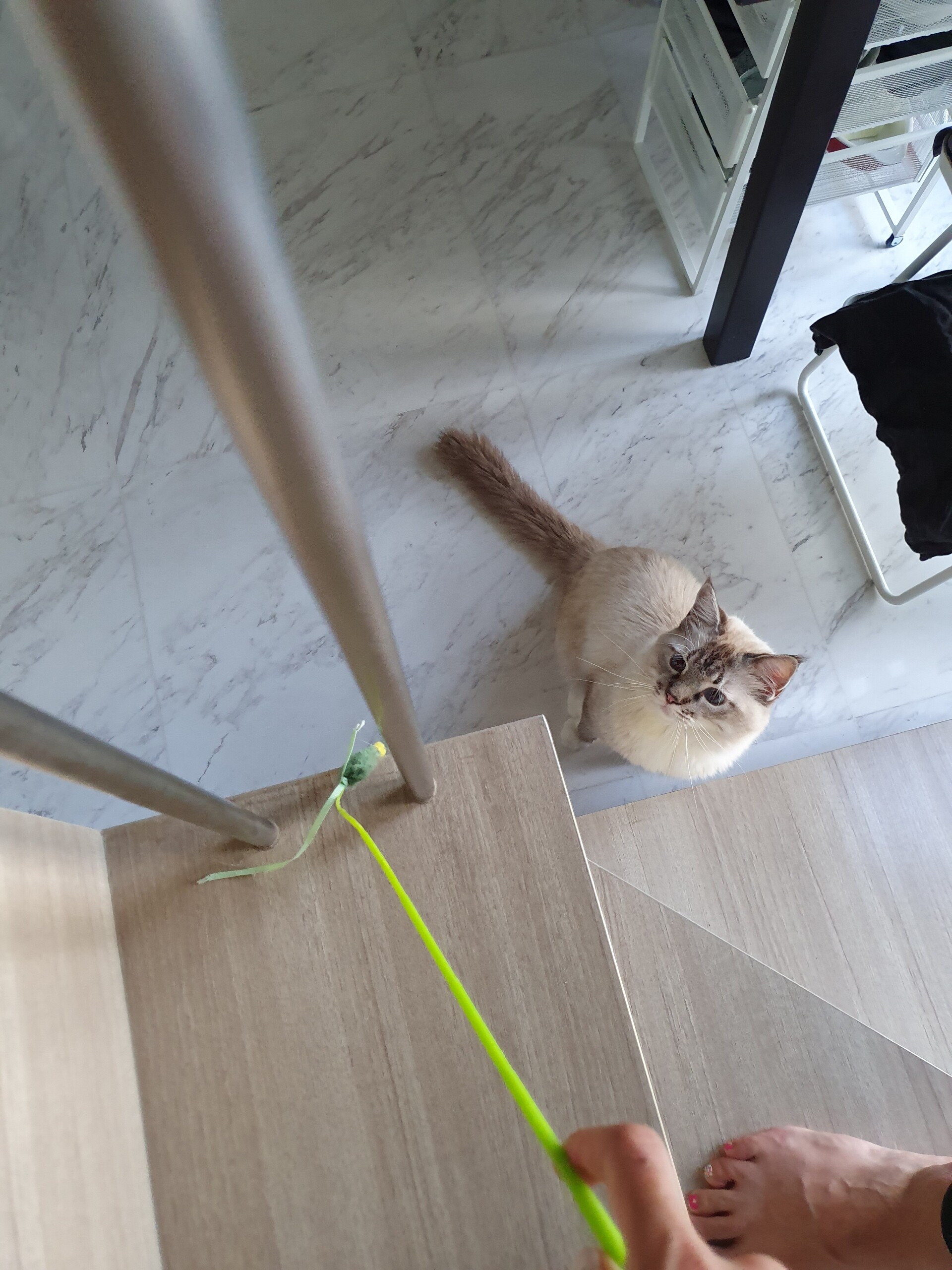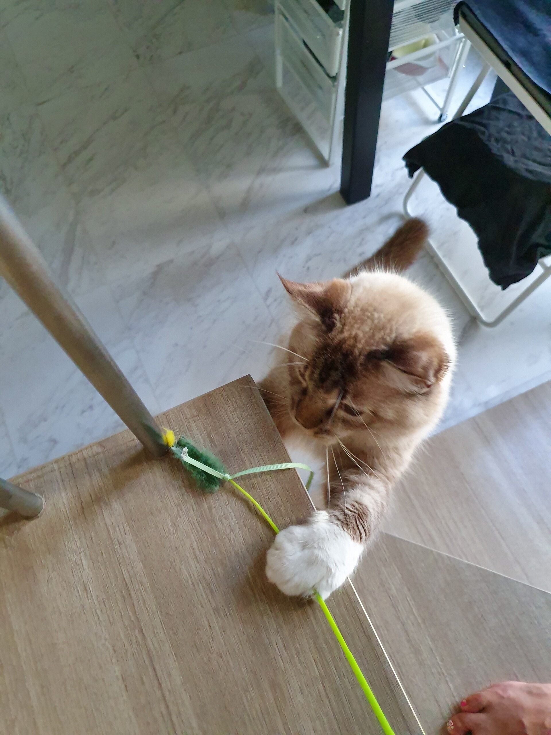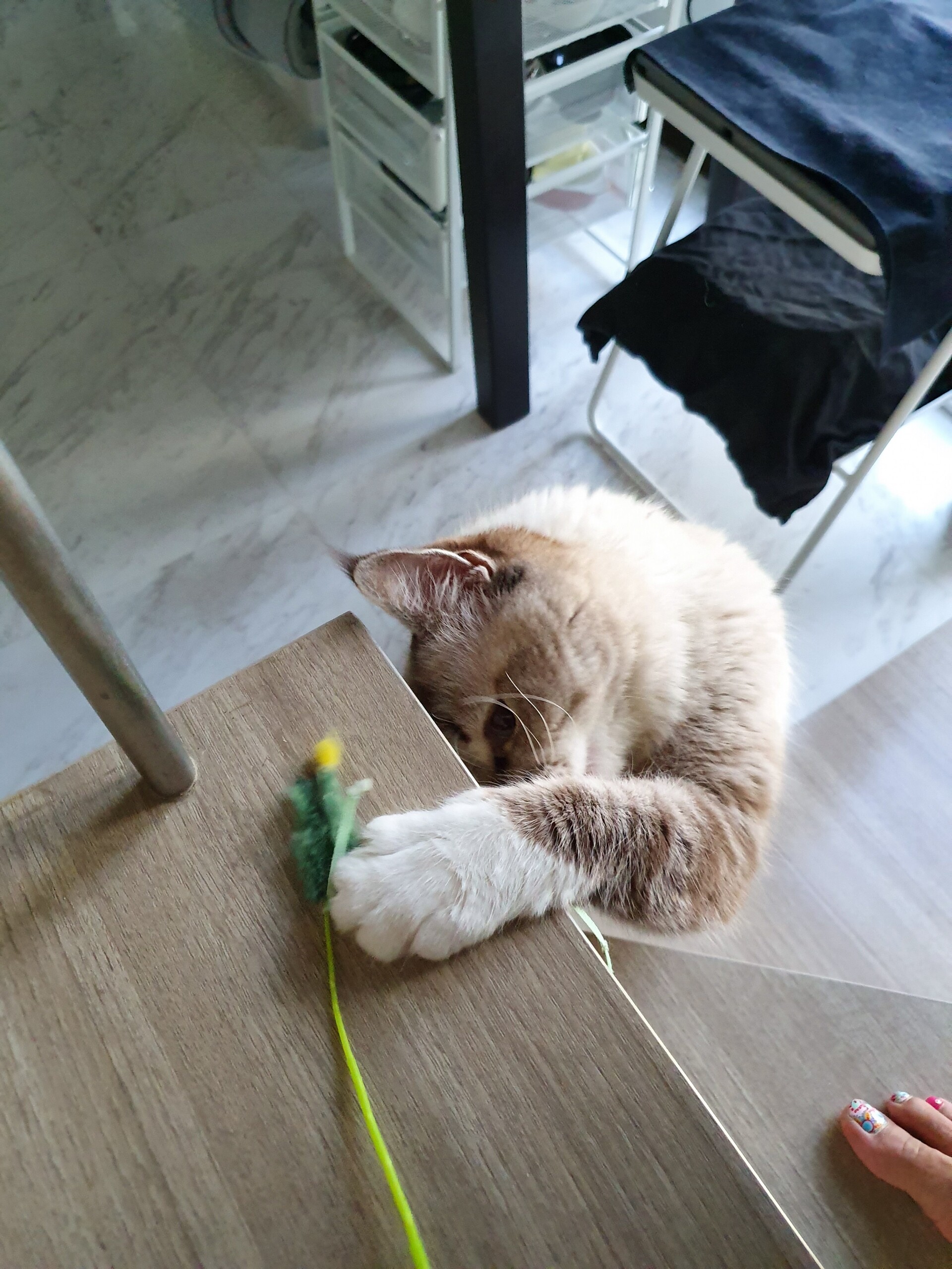 遊んだあと、わたしの帰り際に「しゃーなし感」漂わせながらカリカリ食べてました(笑)
