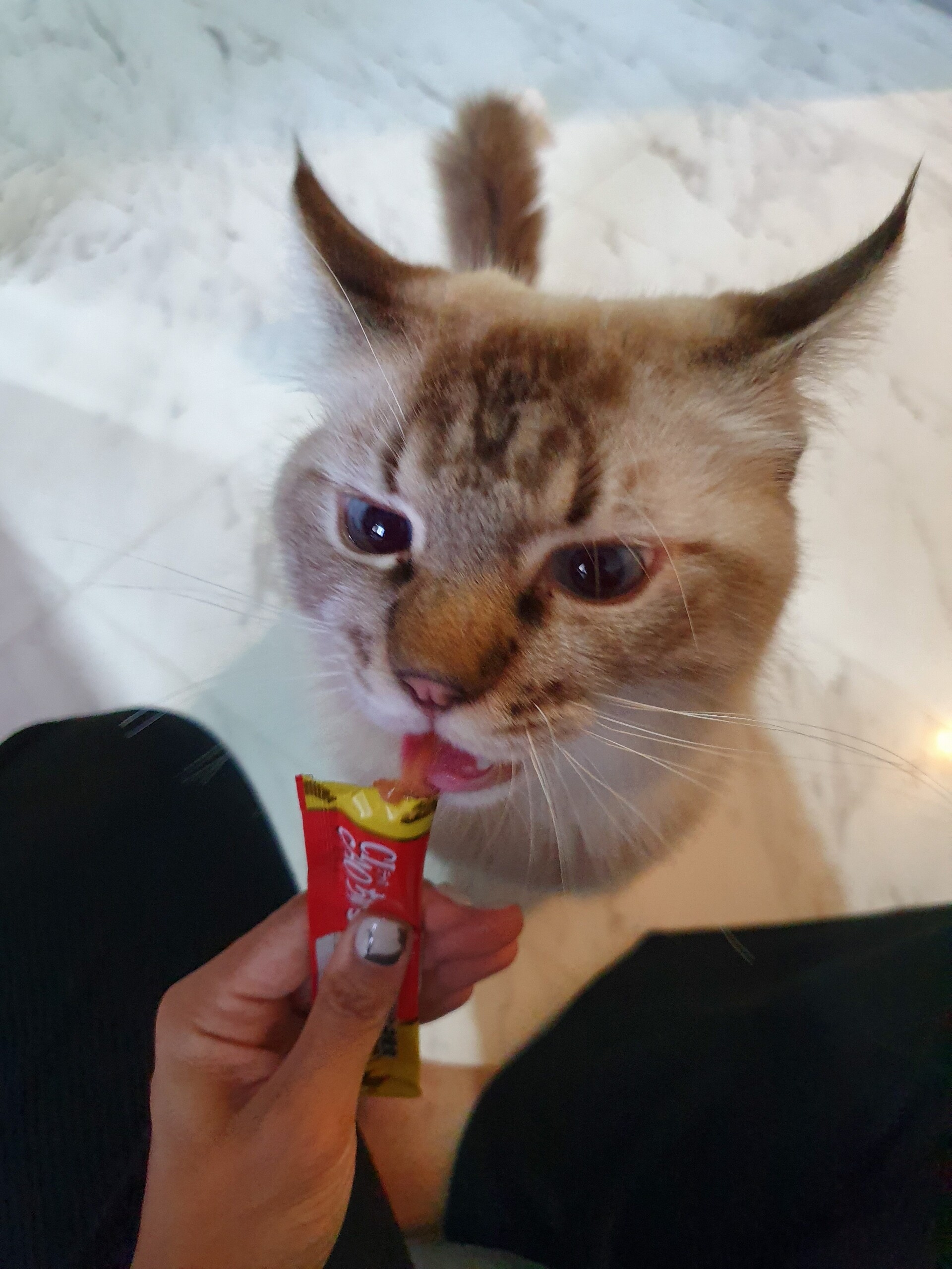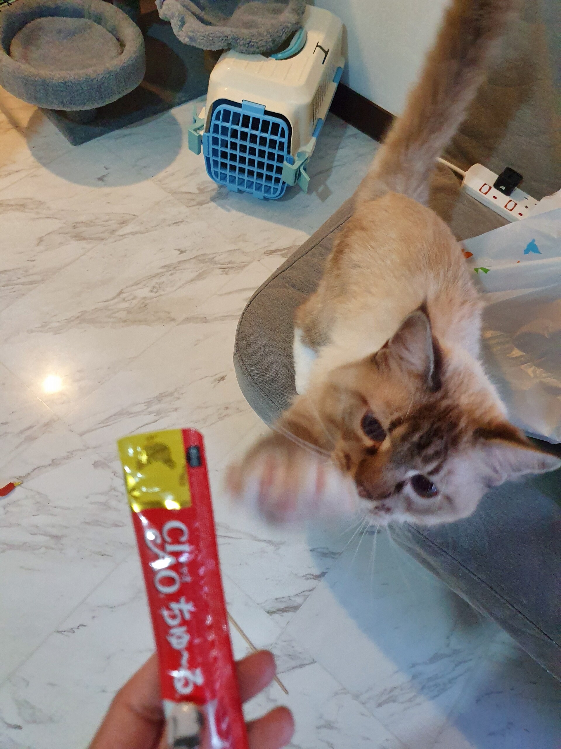 ぽんずちゃんに気に入られたいわたしは、まんまとちゅーるを家に入るやいなやあげてしまいました( ̄▽ ̄;)