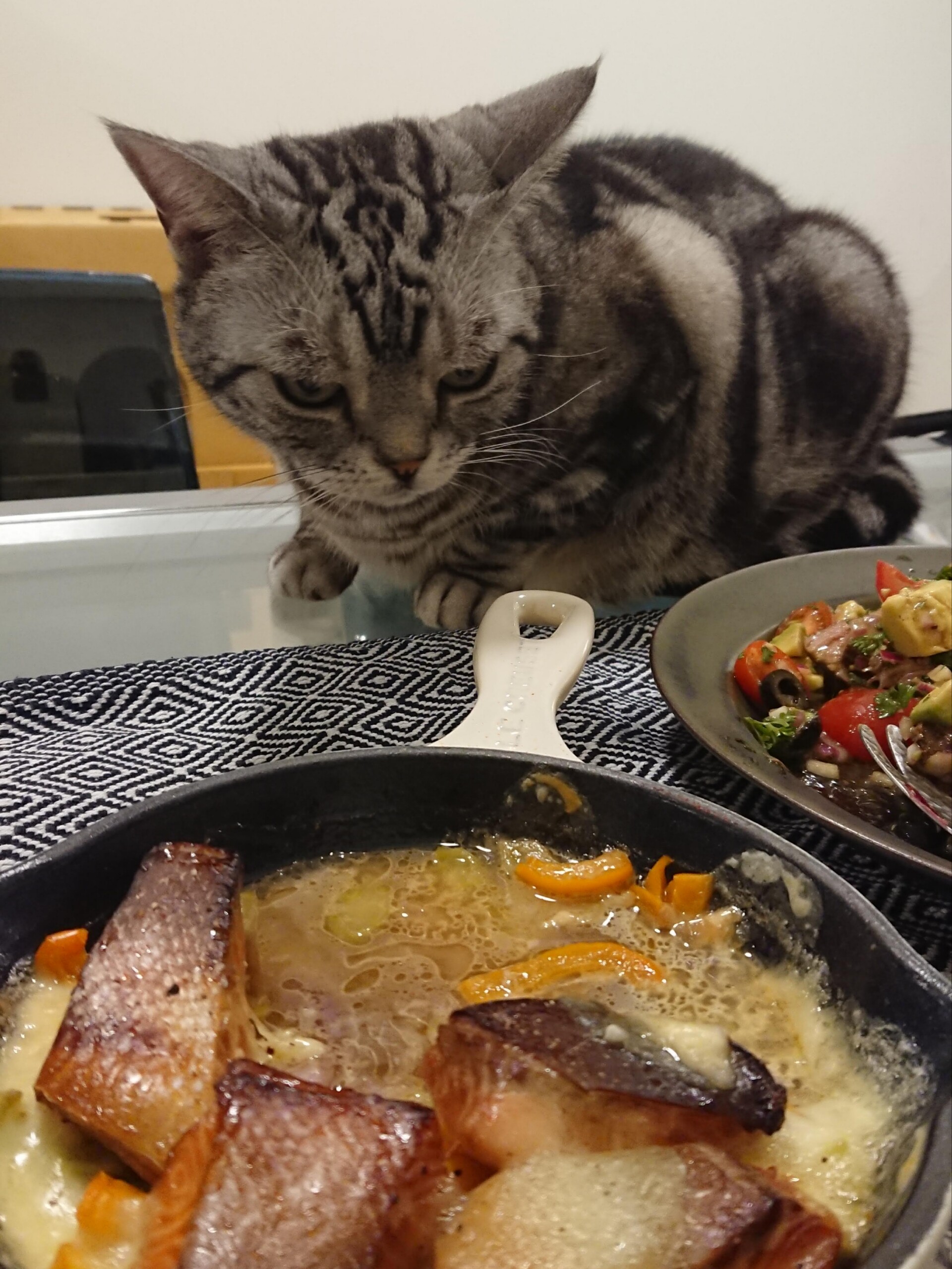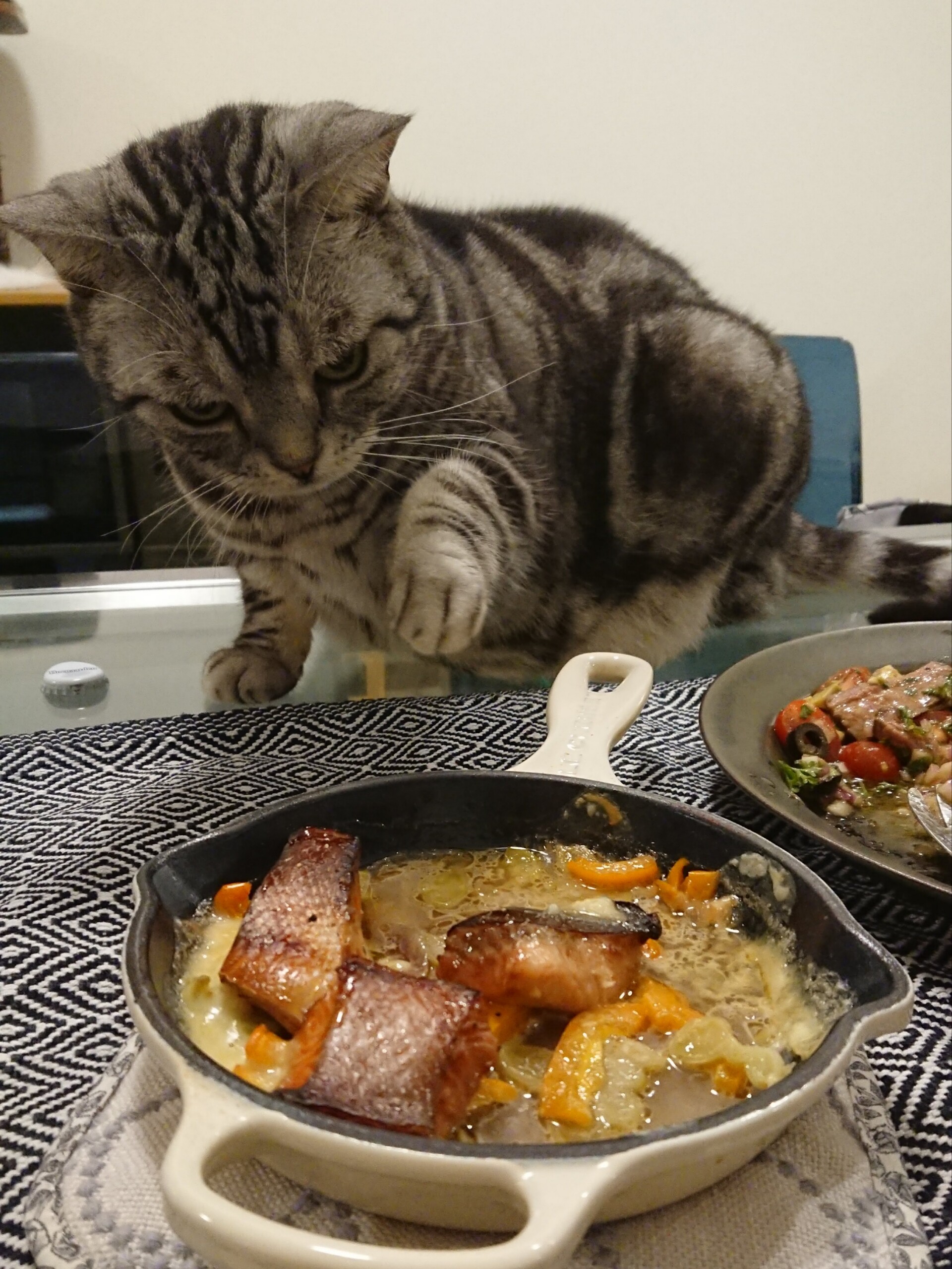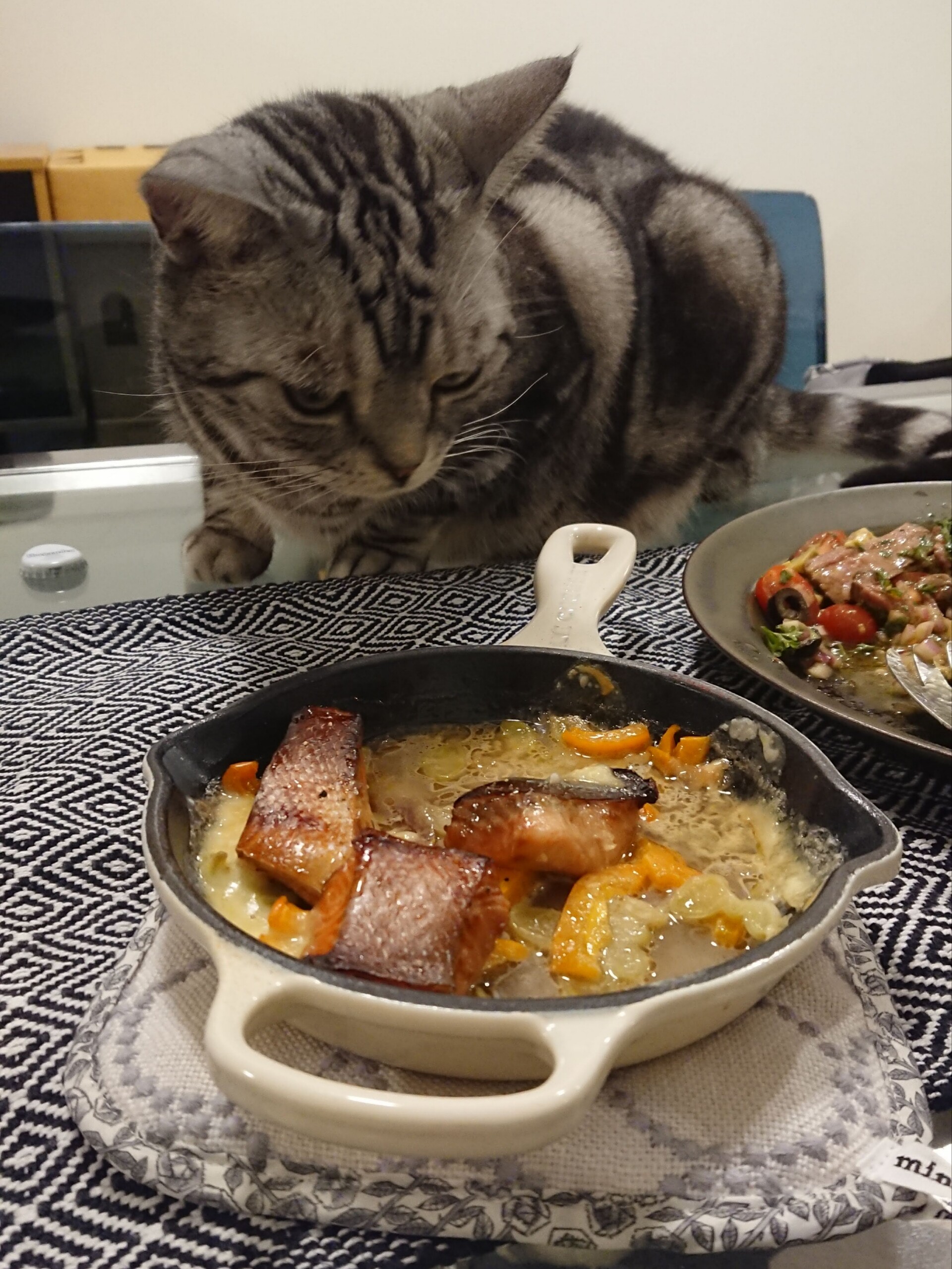 お肉にサーモンに…と、大好物がテーブルにあるもので、ぱずたんそわそわ