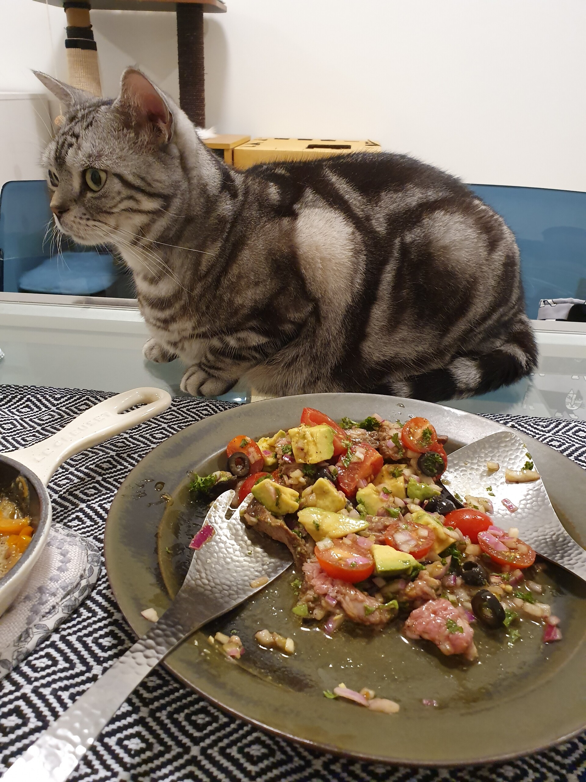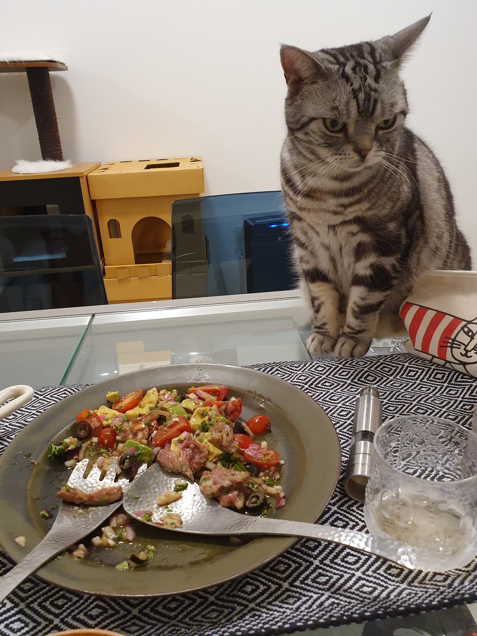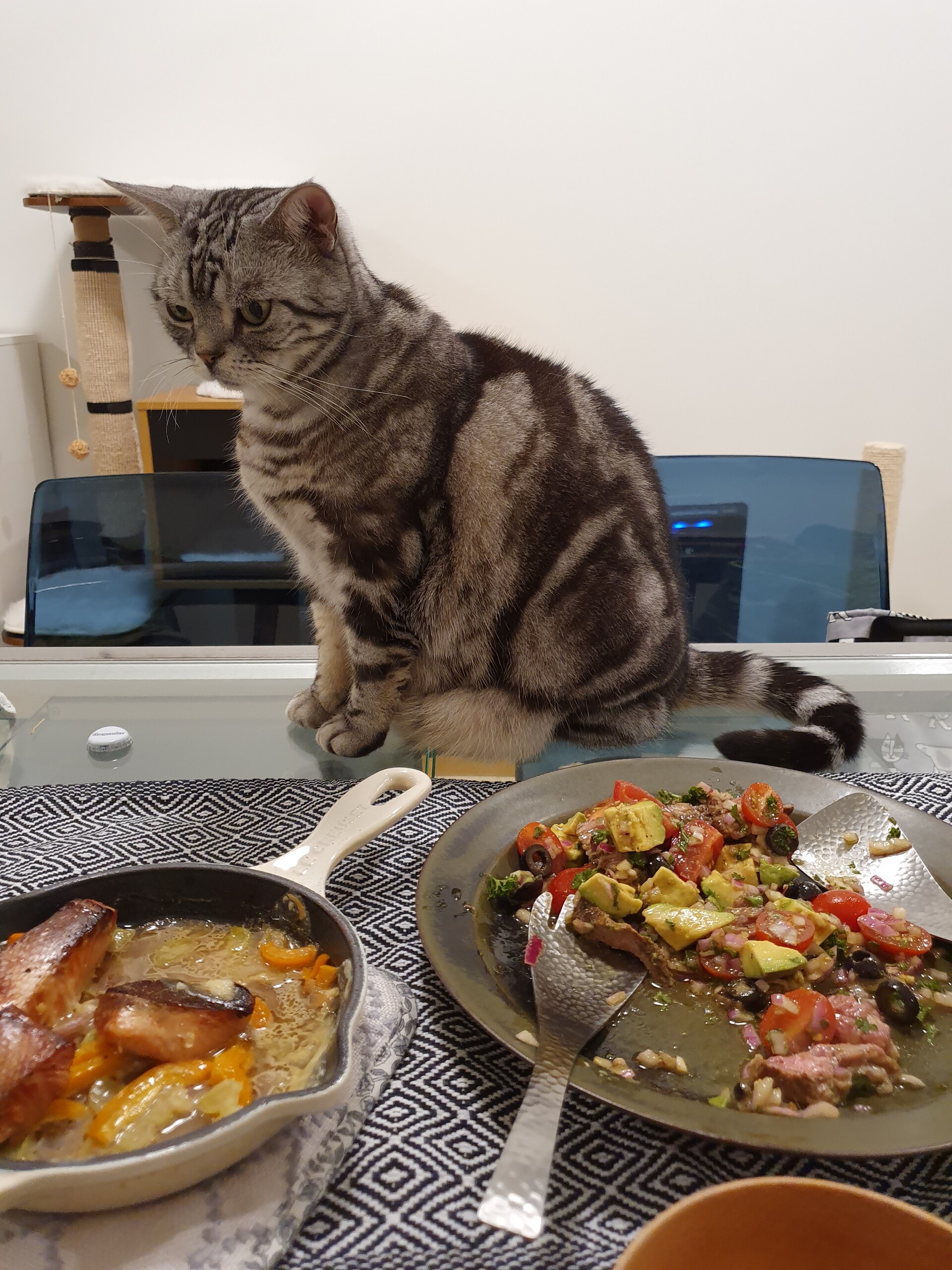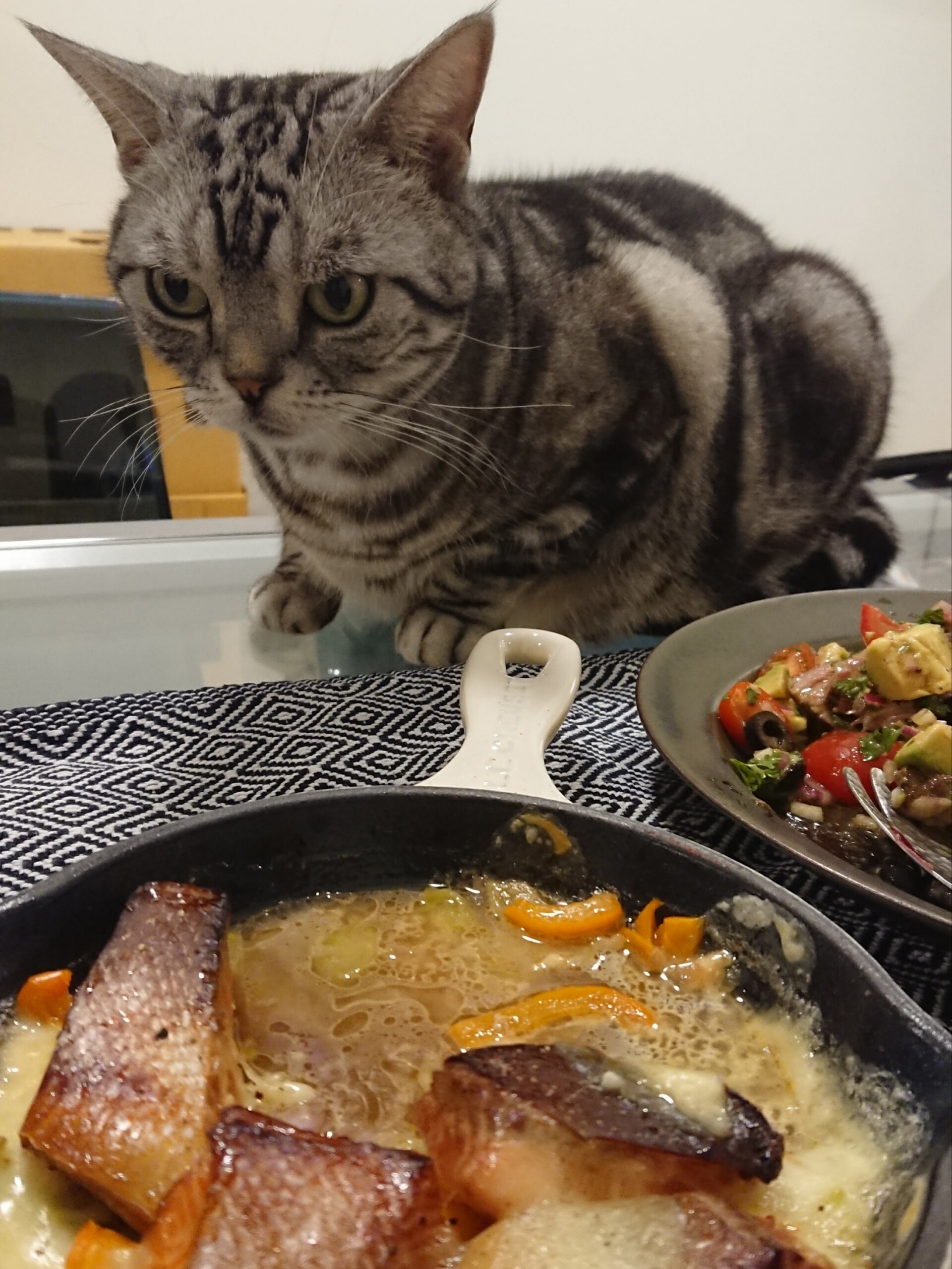 お肉にサーモンに…と、大好物がテーブルにあるもので、ぱずたんそわそわ