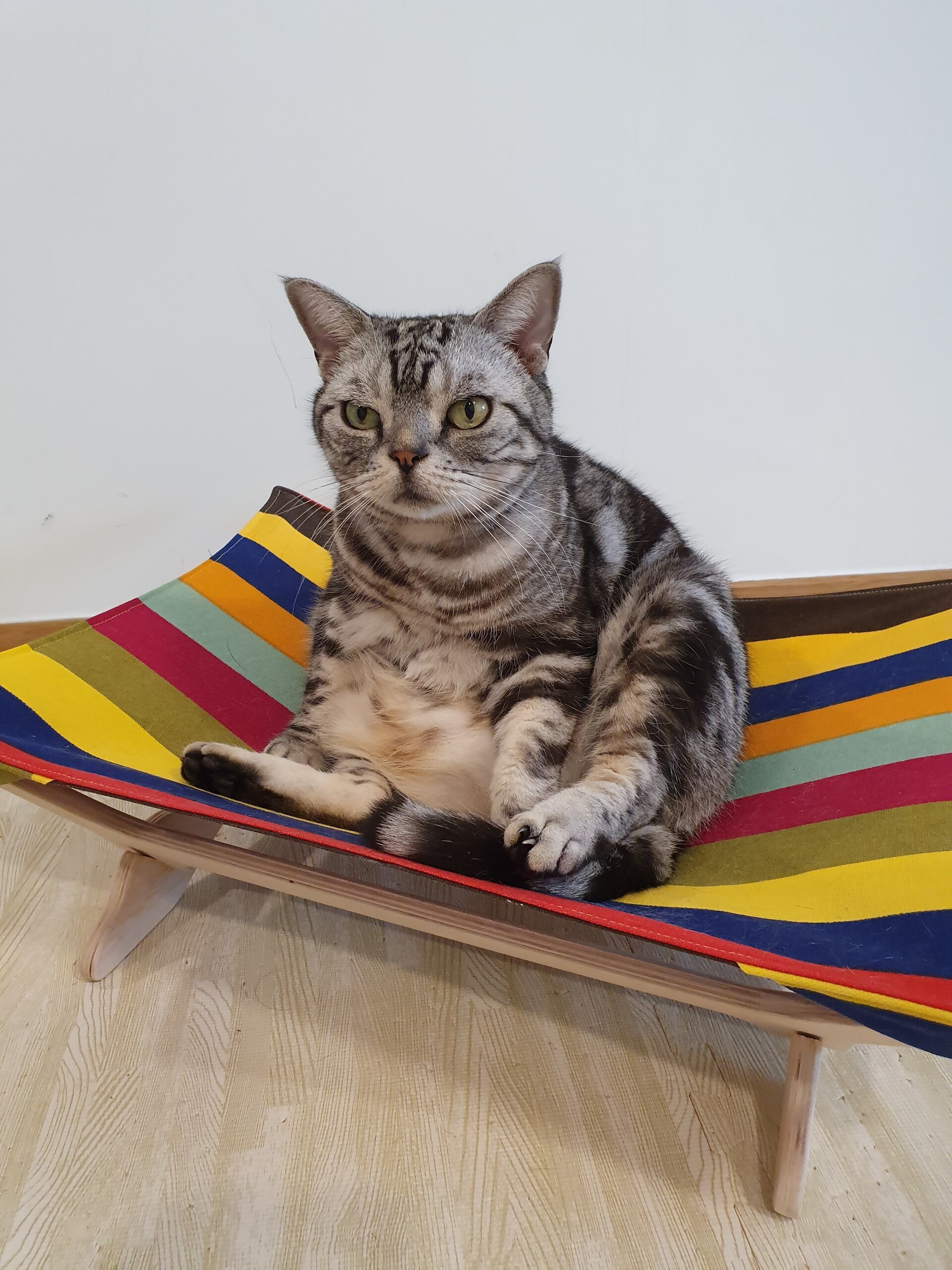大きな猫さんは、体重が分散されるのでハンモックが楽なんですかね?