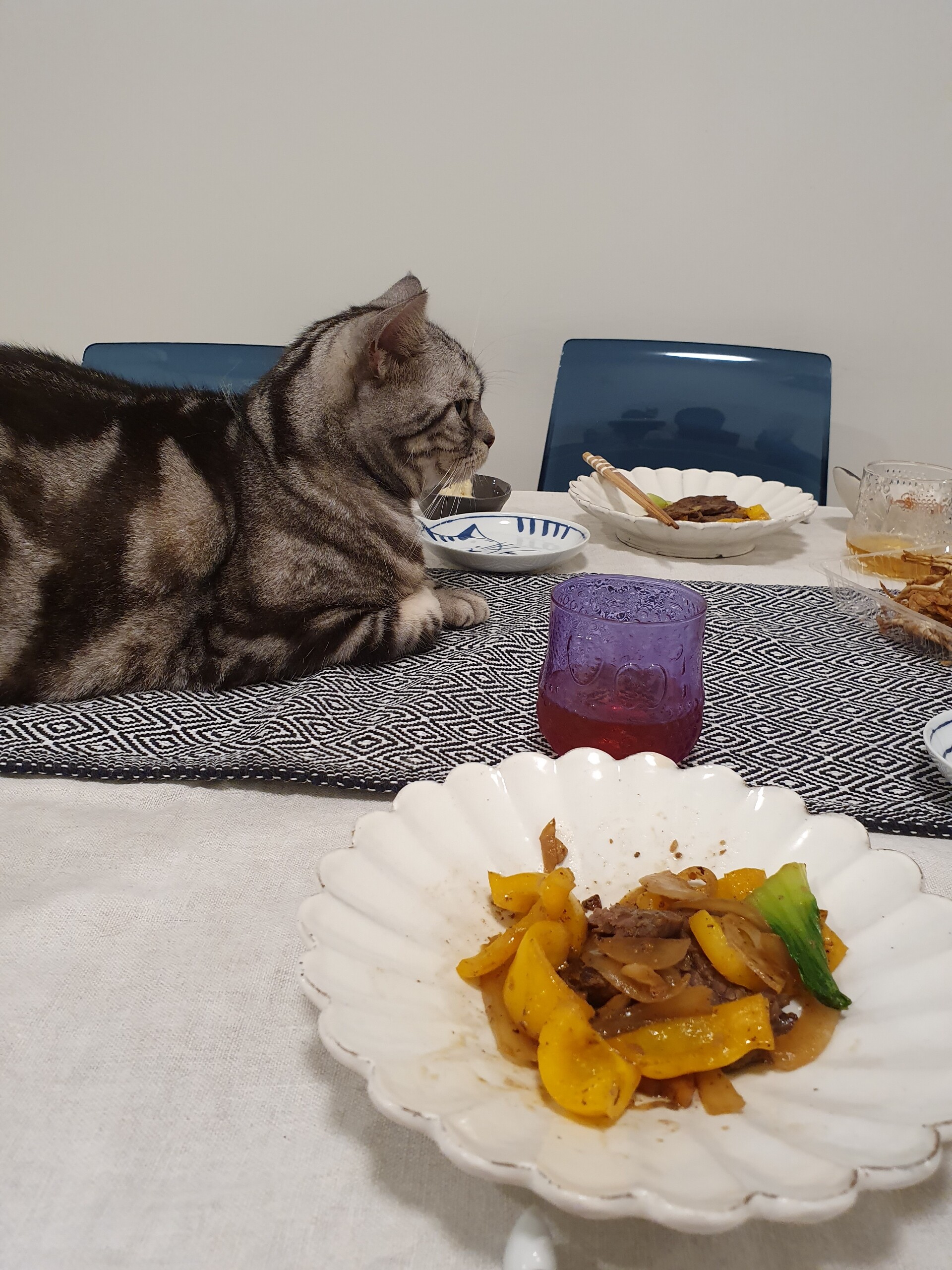 どこに置こうか迷って、とりあえずダイニングテーブルの横に置きました。