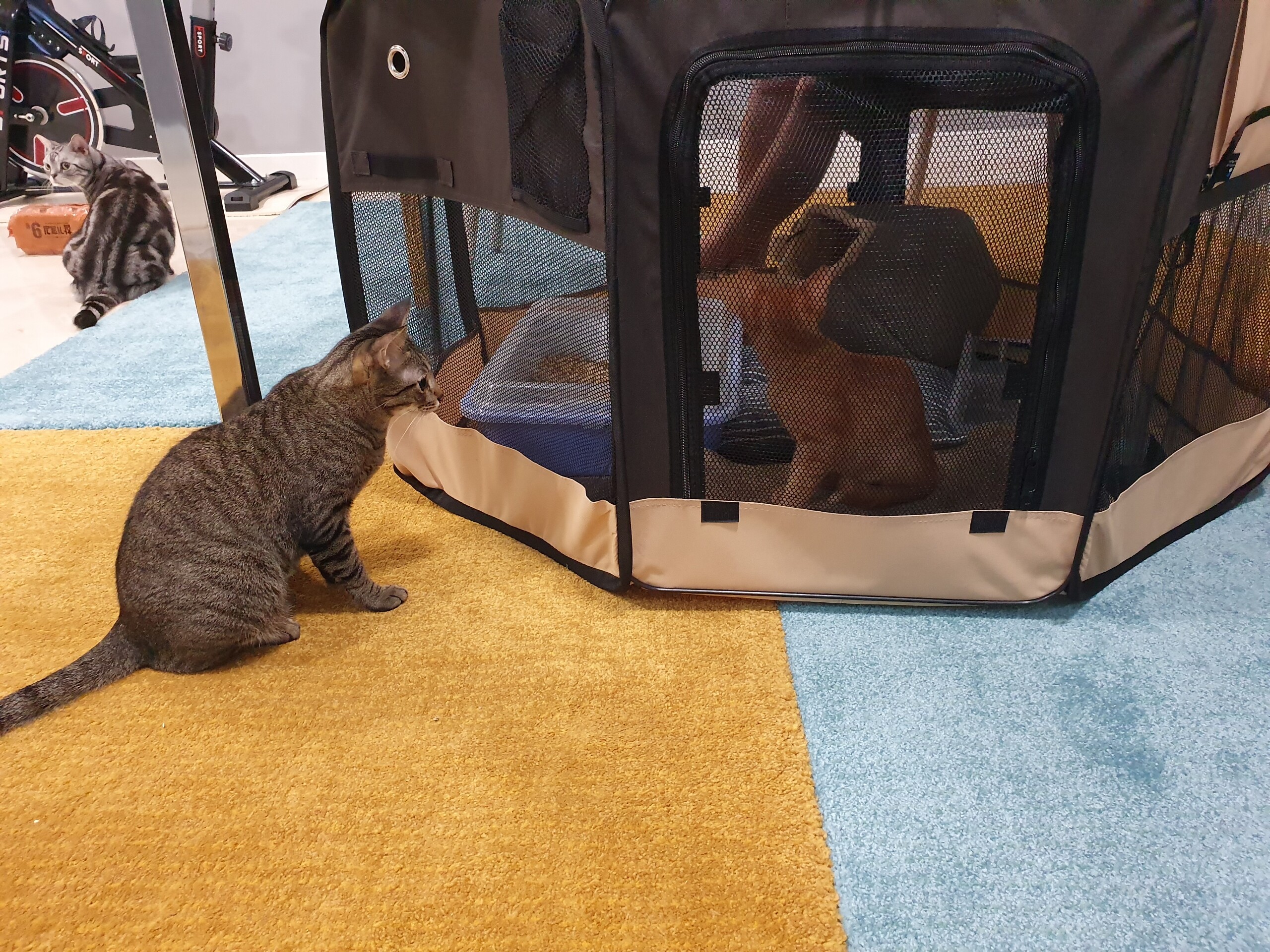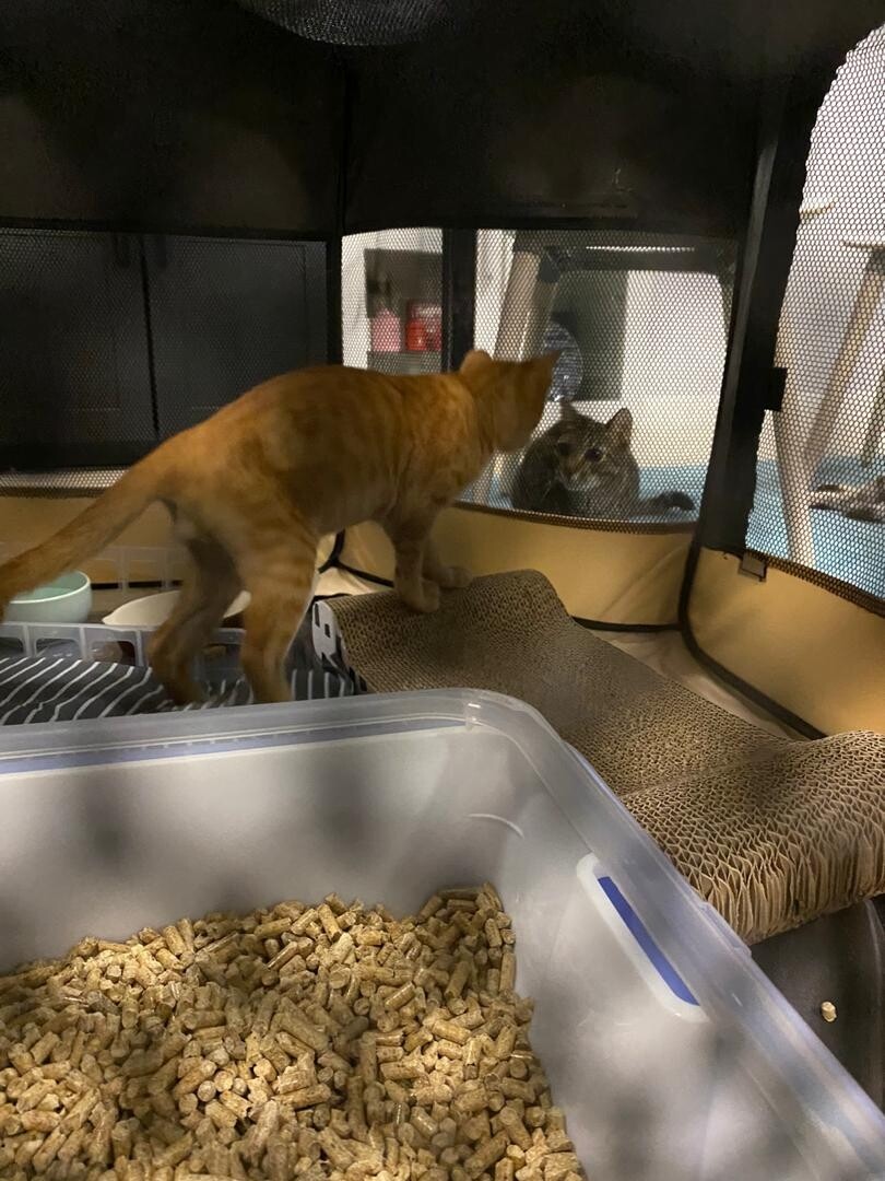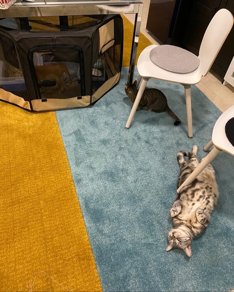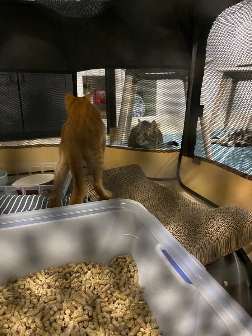周りに猫がいて楽しく遊んでるのが見えたら気になって余計外に出たがるんじゃないか、余計ストレスになるんじゃないか、と…。