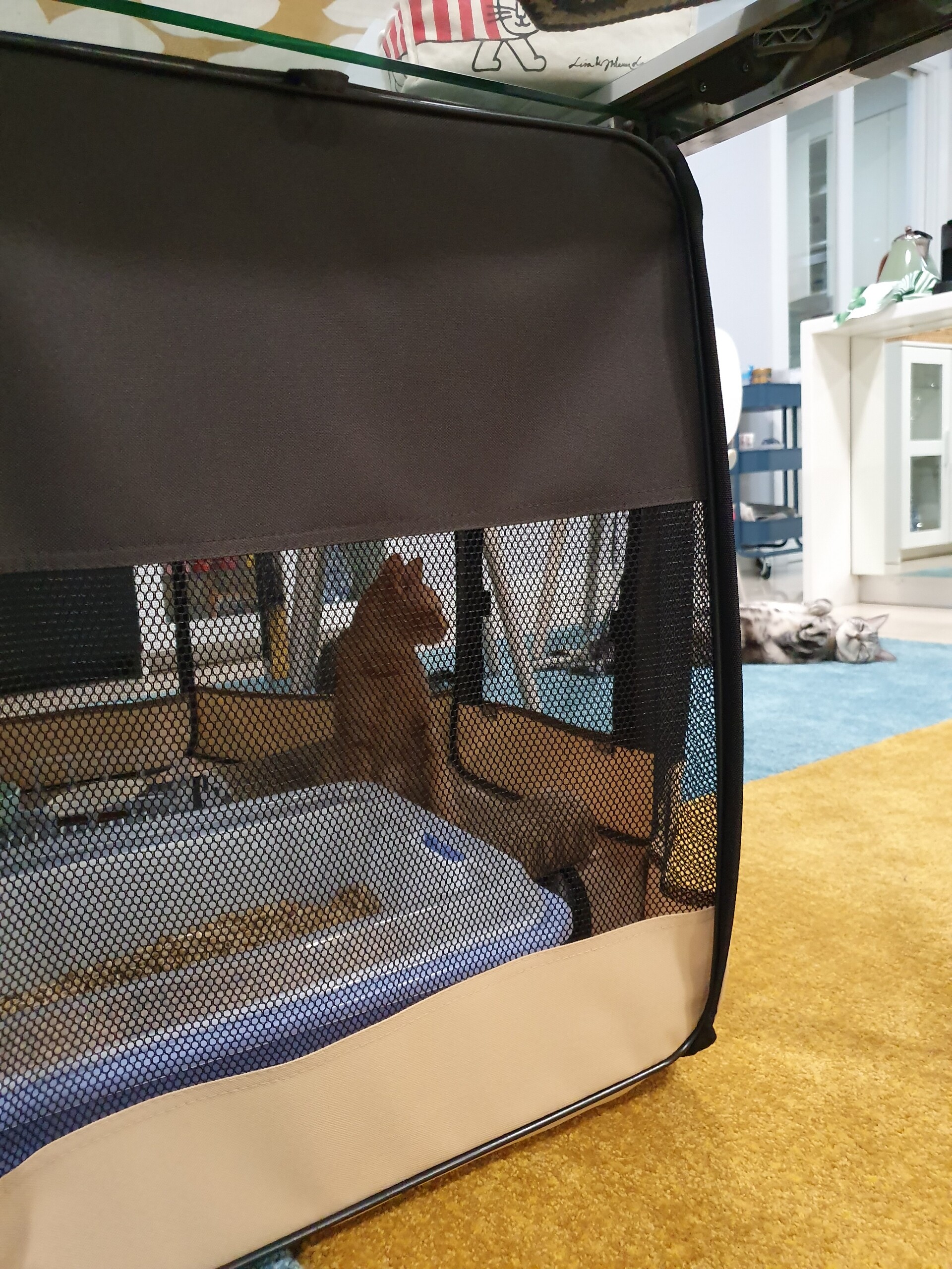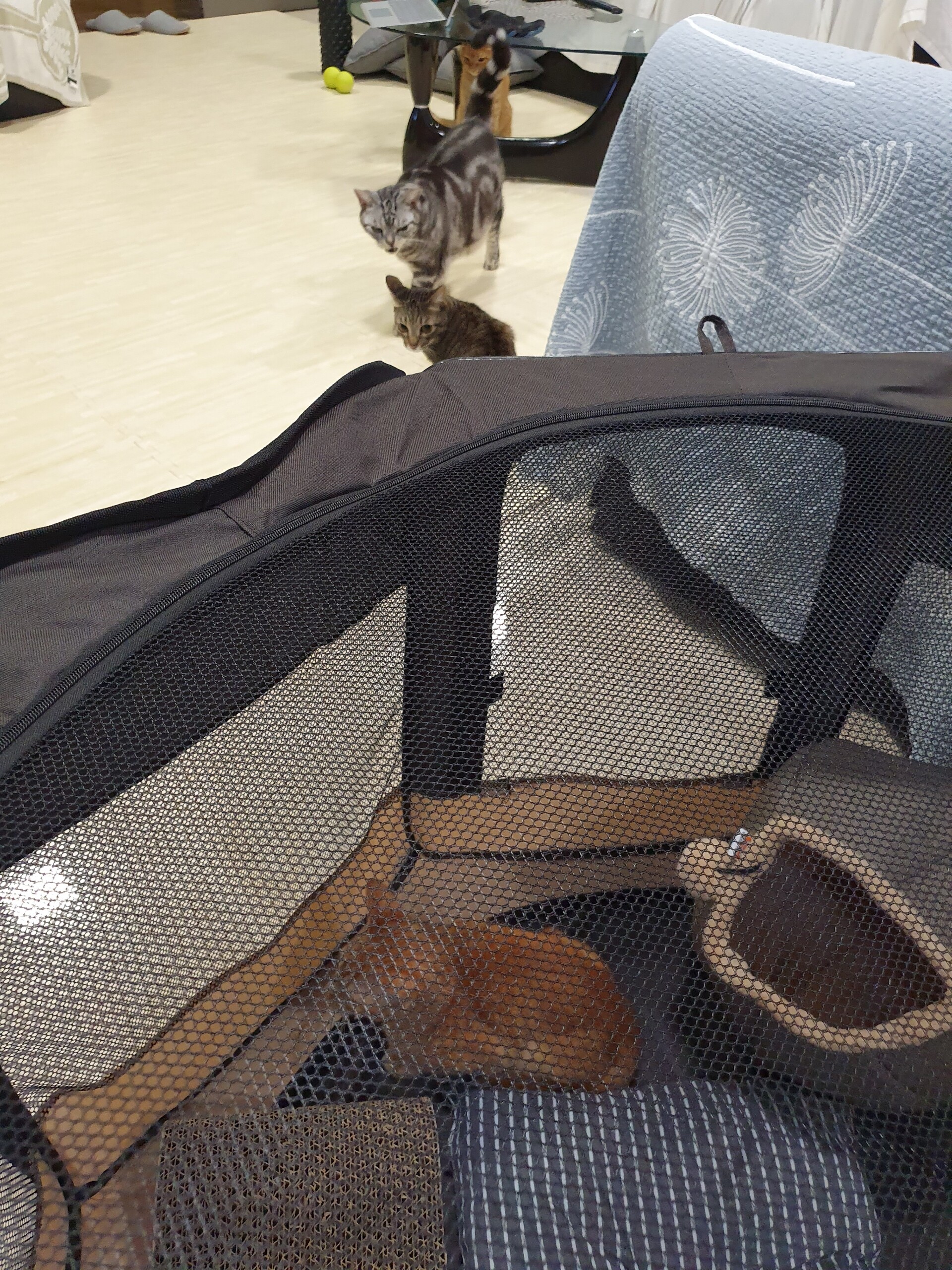 血液検査の結果、猫エイズと猫白血病は共に陰性だったのでちゃーたんのケージをリビングに移動させることにしました。