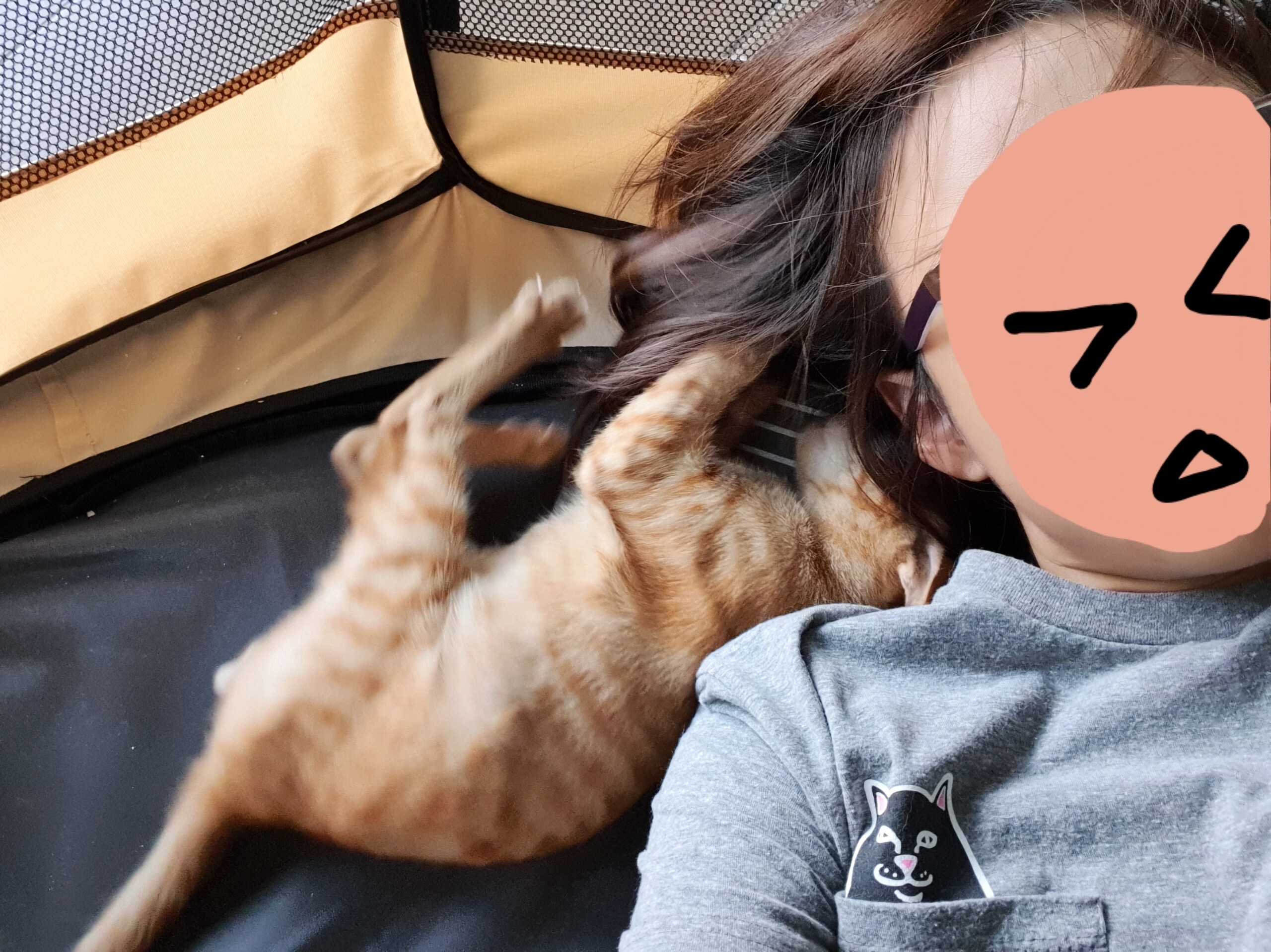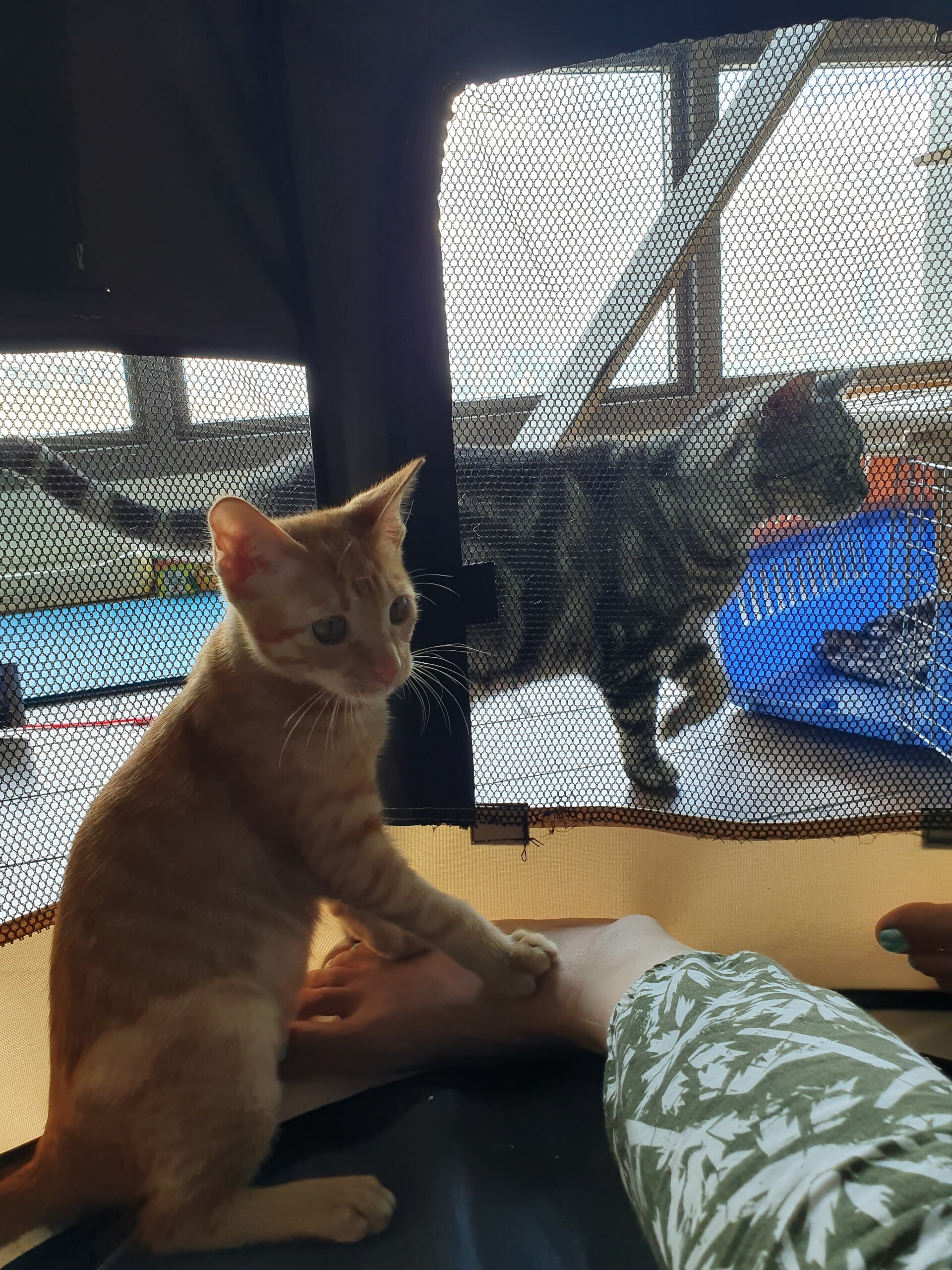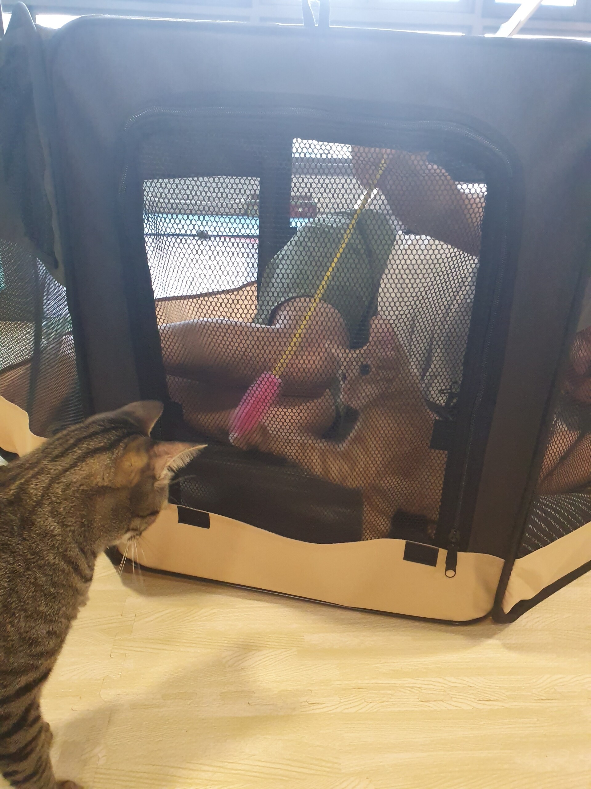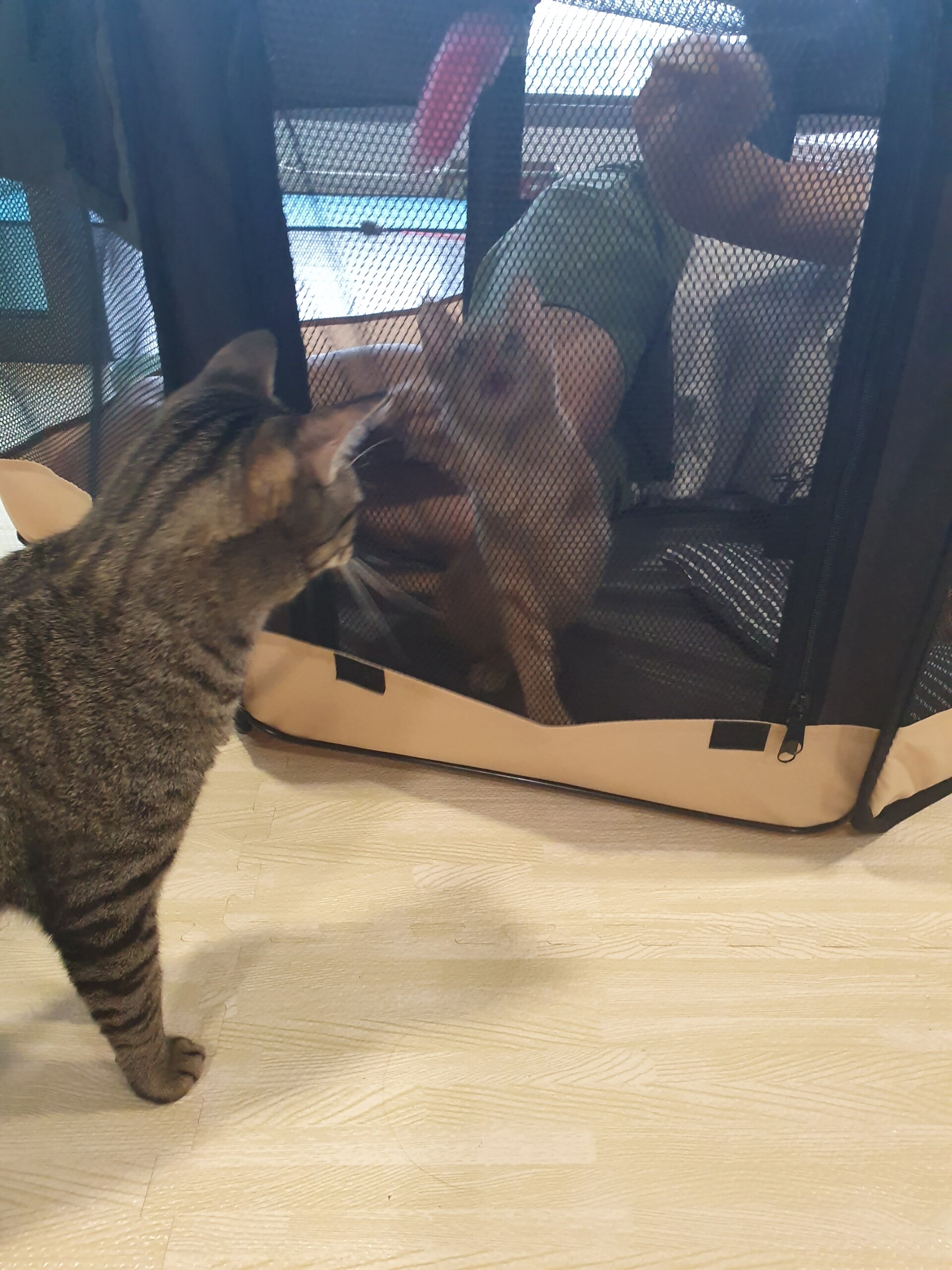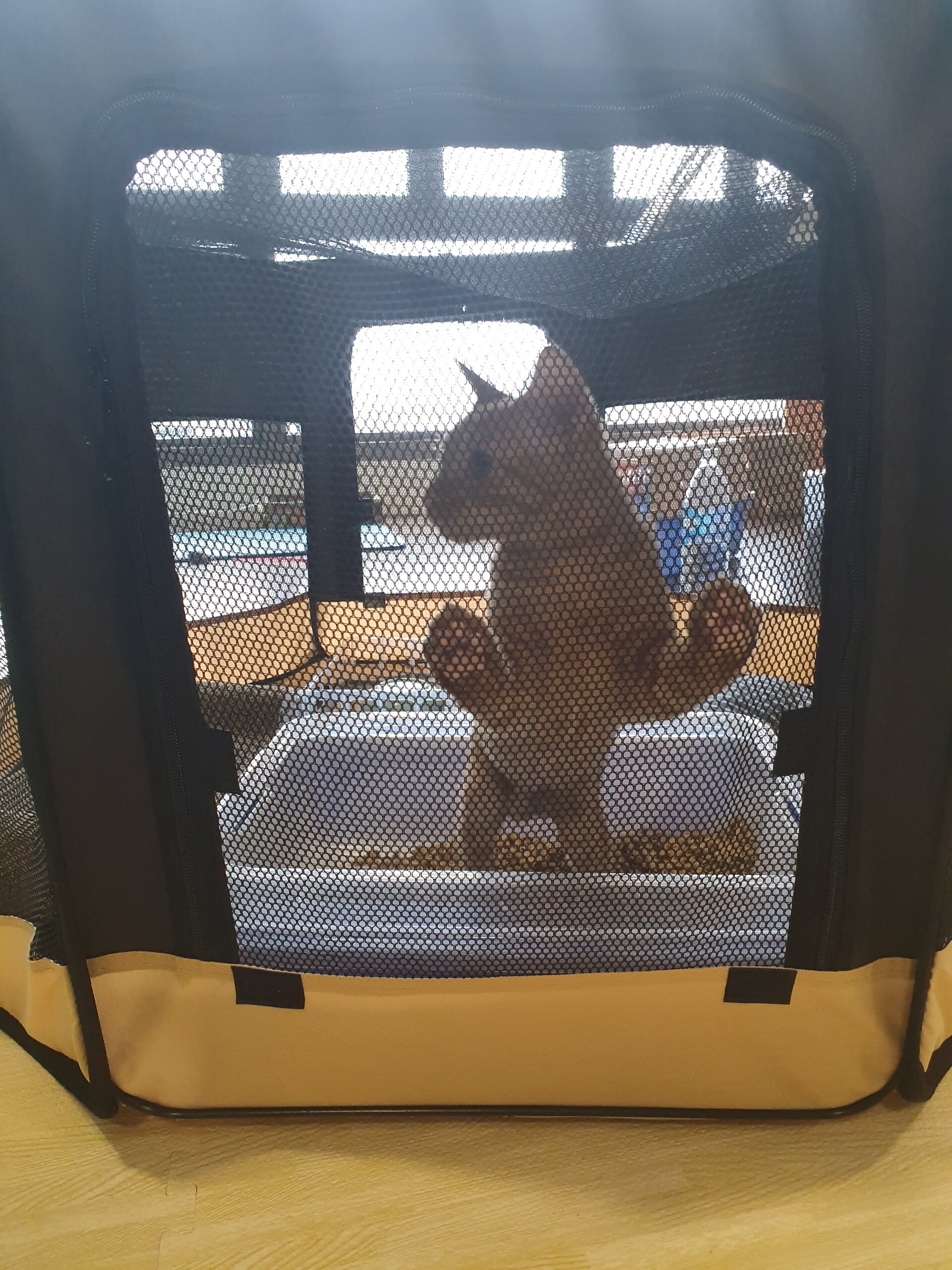 ケージにいるとき、外に出たくてにゃーにゃー鳴くのです。