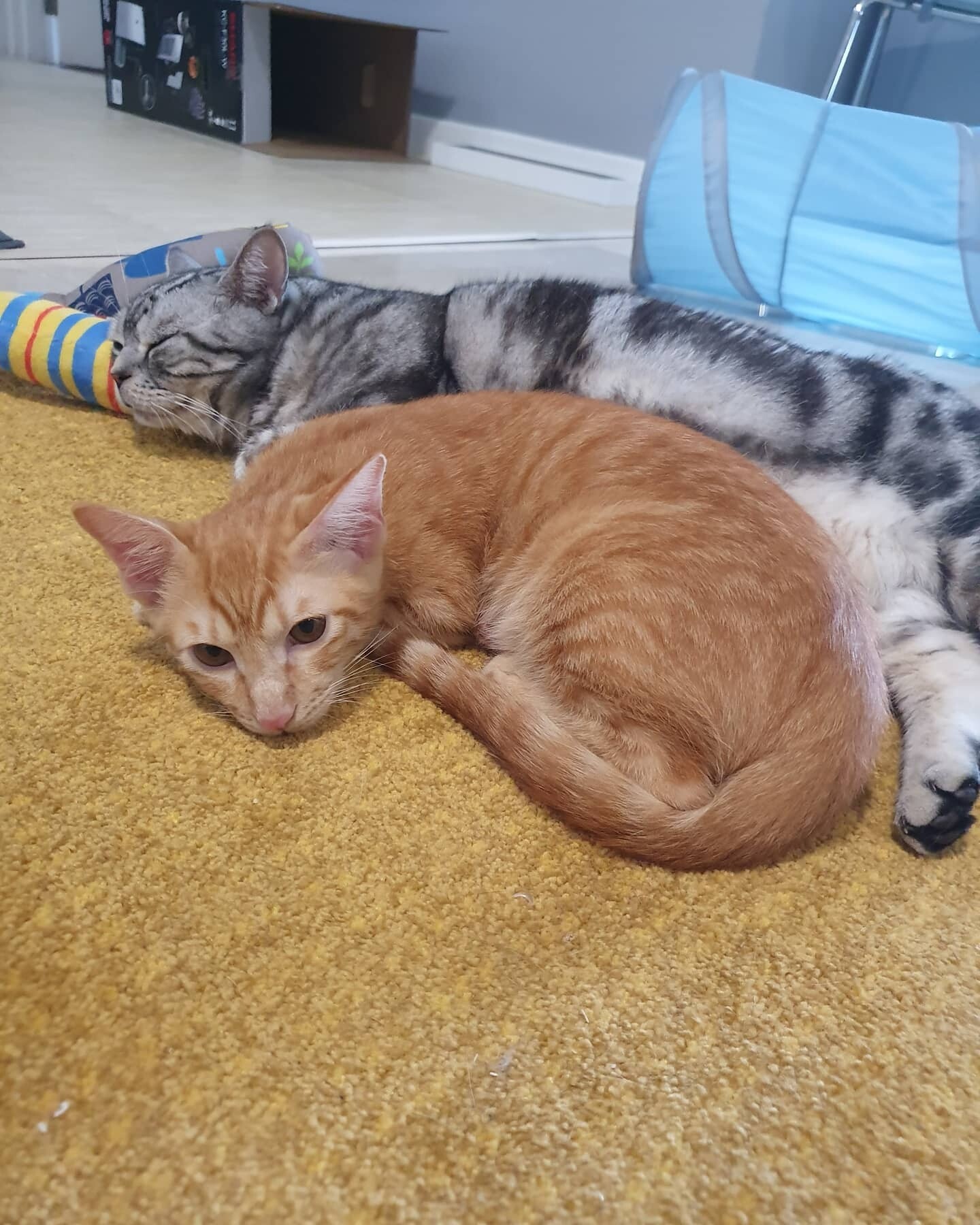 ちゃーたんとしゃーたんは同じ茶トラでよく似てて区別がつきにくいと言われますが、体も顔も結構違います。