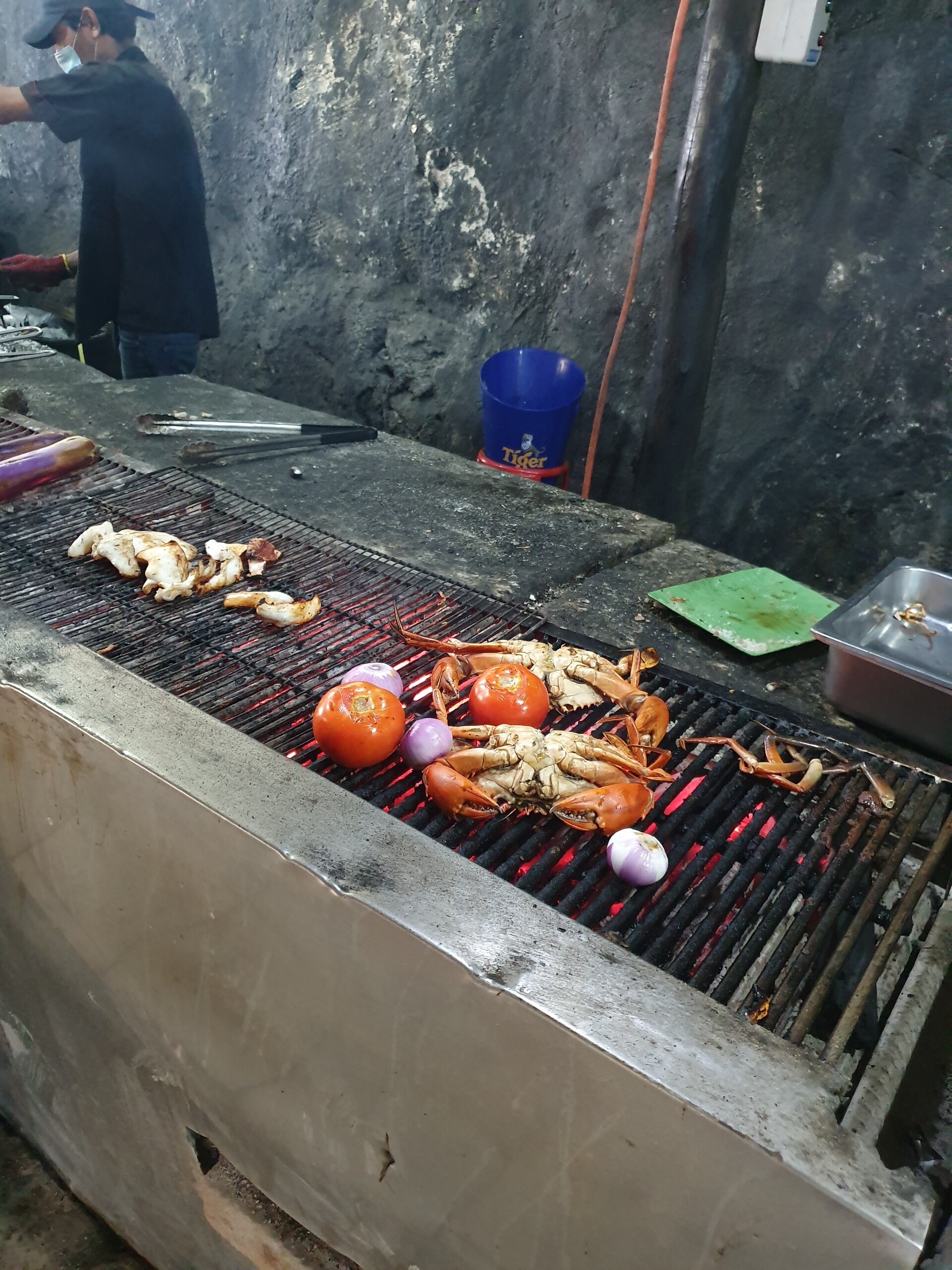 その横ではシーフードのグリルを店員さんが作ってました。