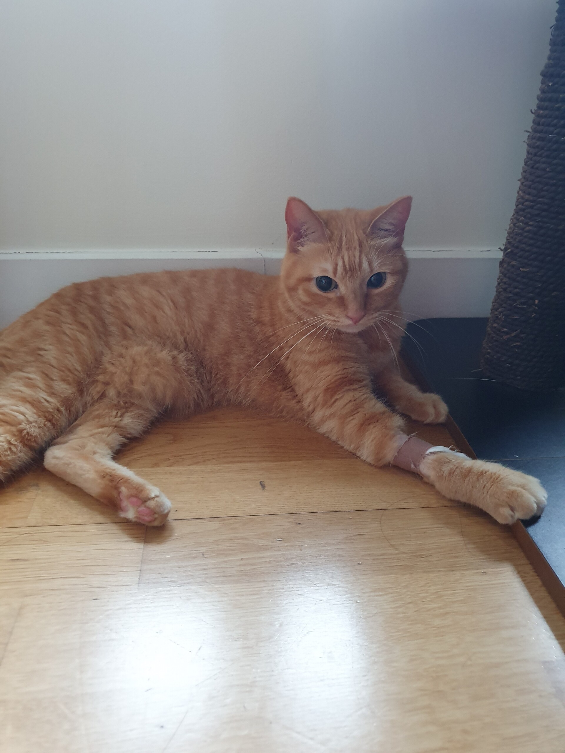 病院で包帯をしてもらってたのですが、嫌がって噛んでしまうので外しました。