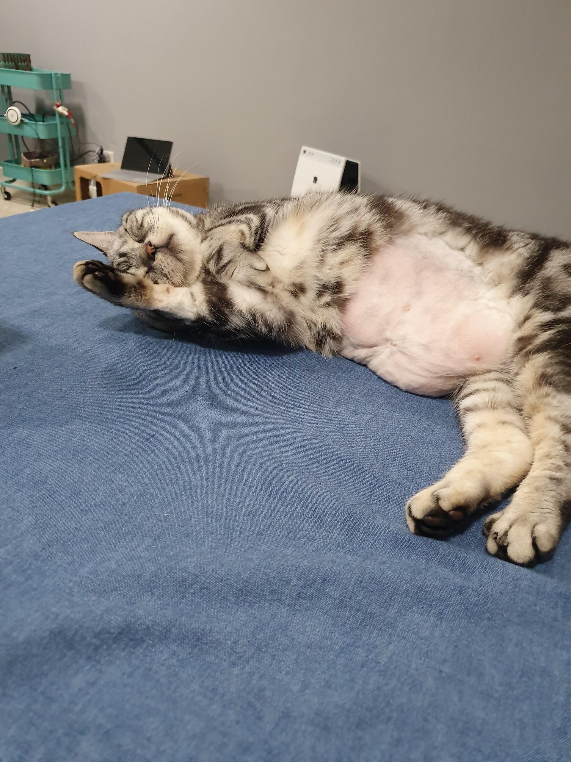 お腹剃られたところが真っ白でぷっくりしてるから最初包帯巻かれたのかと思いました😅老眼なので許して🙏