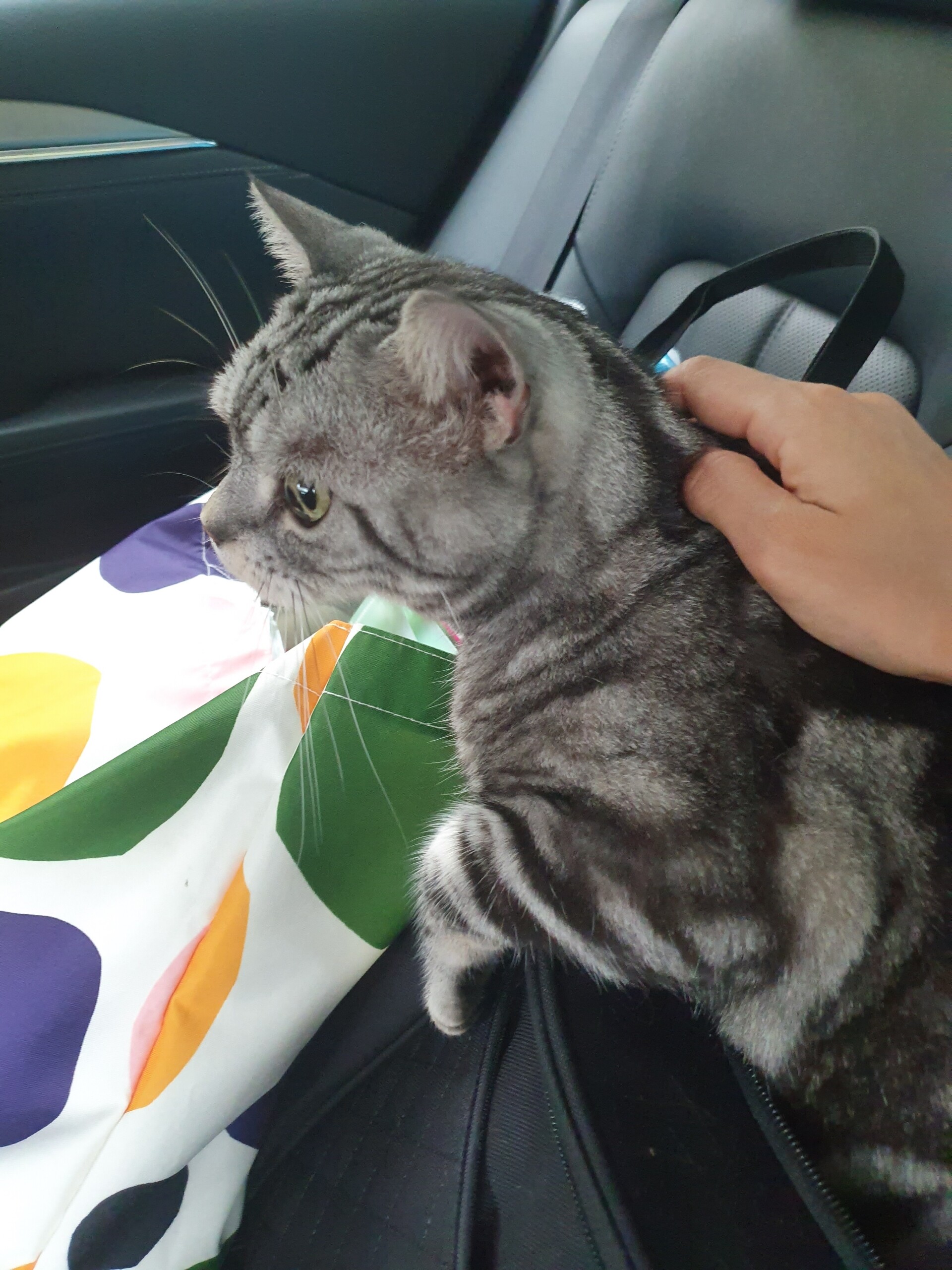 車嫌いなぱずたんですが、キャリーから顔を出して撫でてあげると落ち着きました。