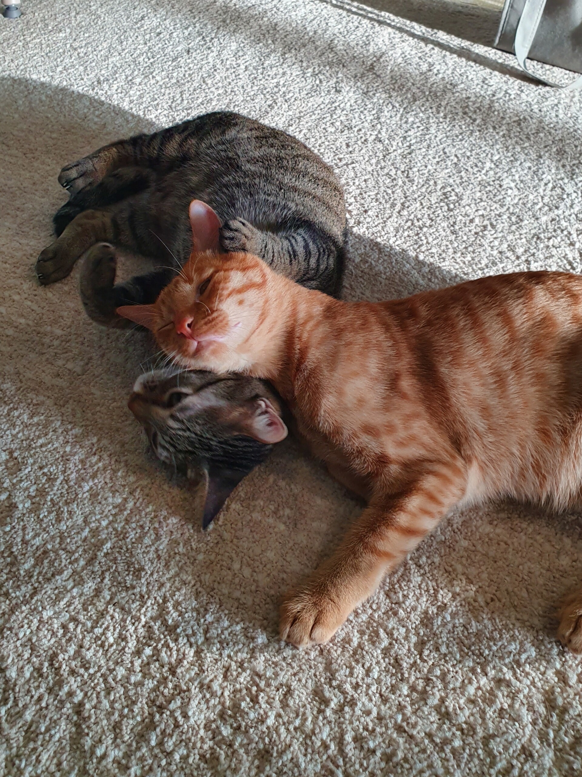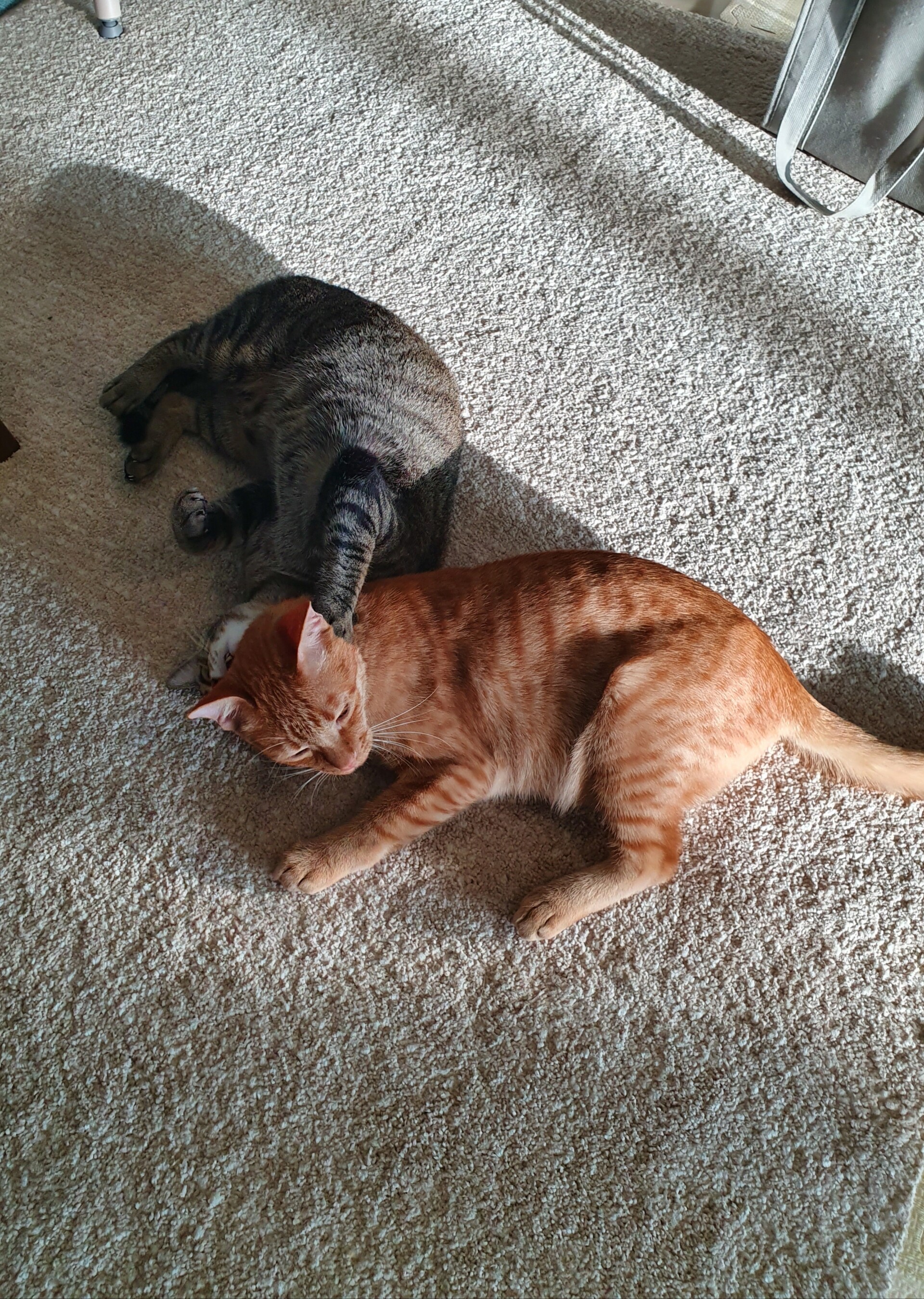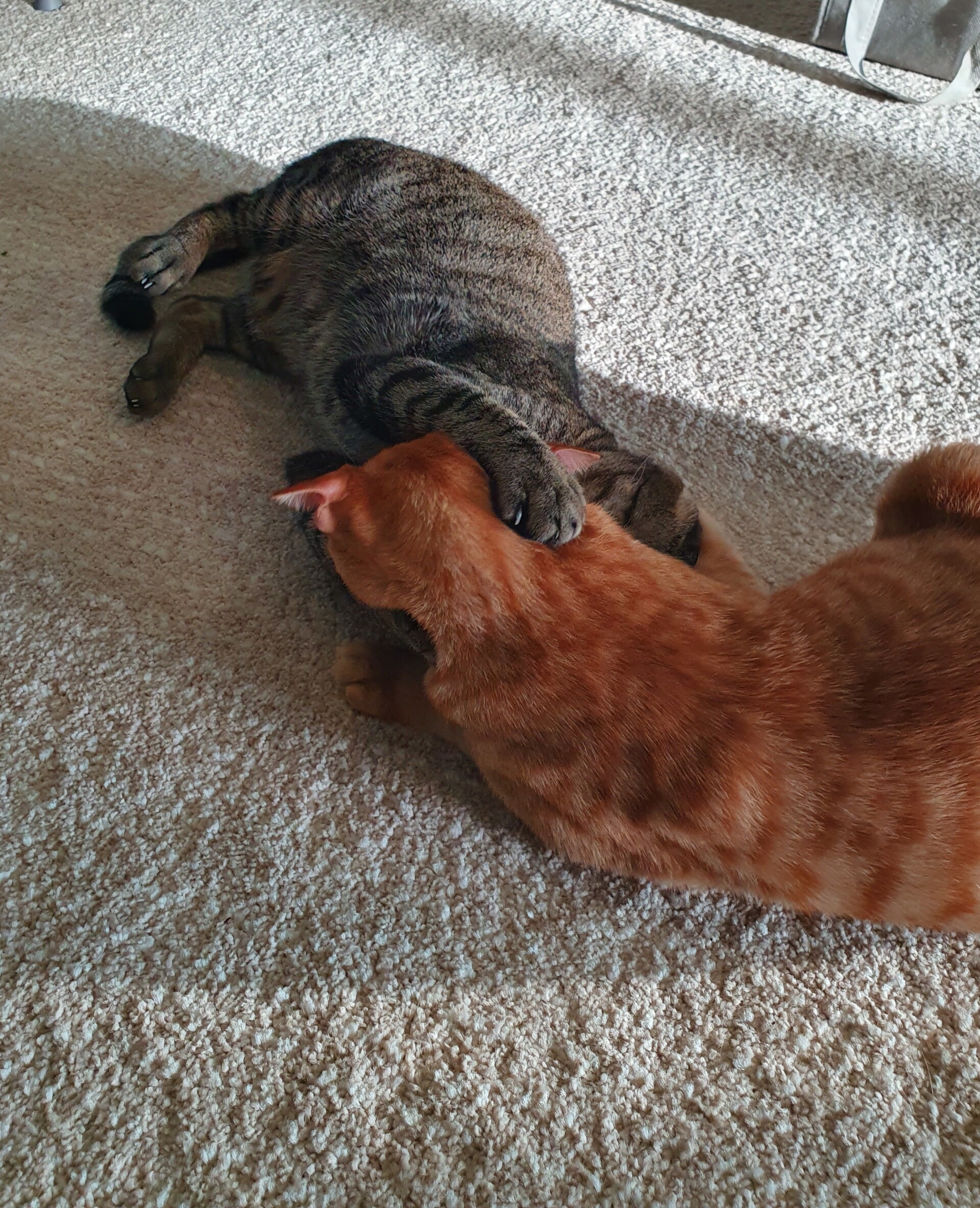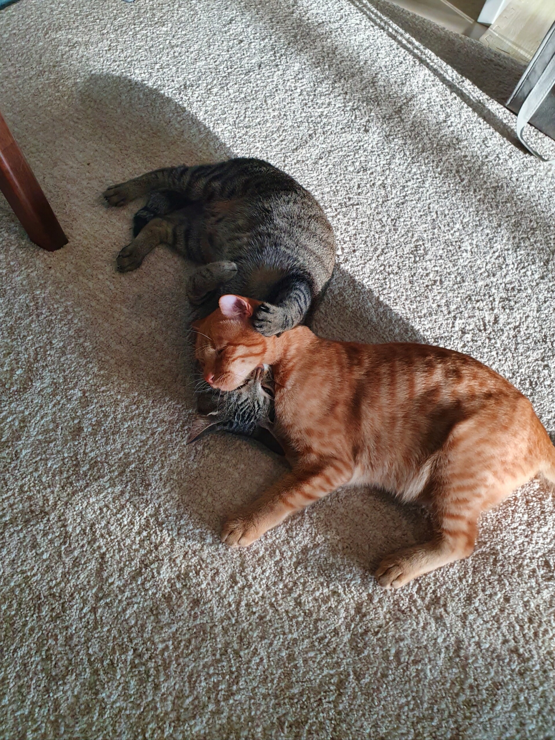 この2匹、追いかけっこやプロレスごっこはよくしてるけどくっついてるの珍しいのです。