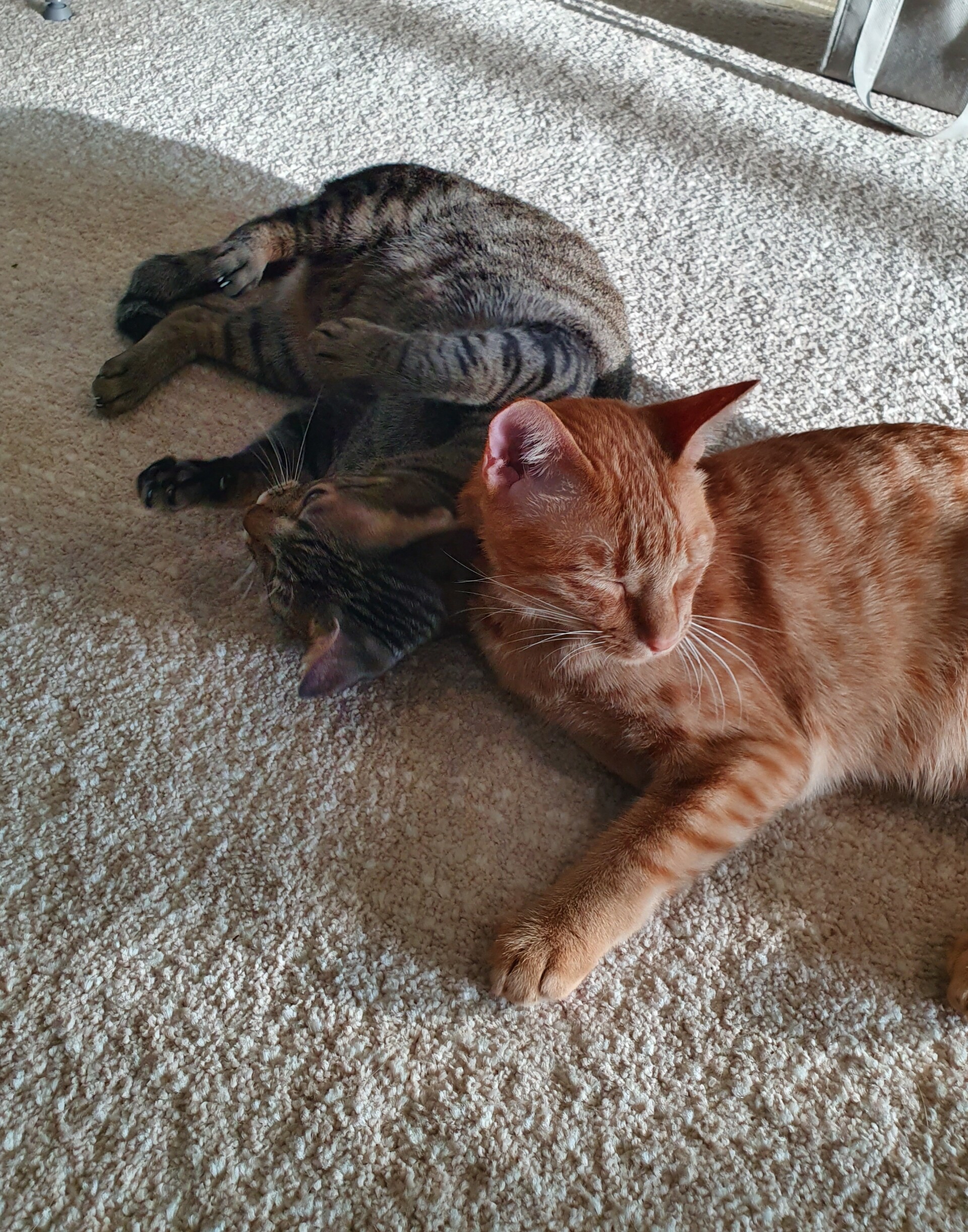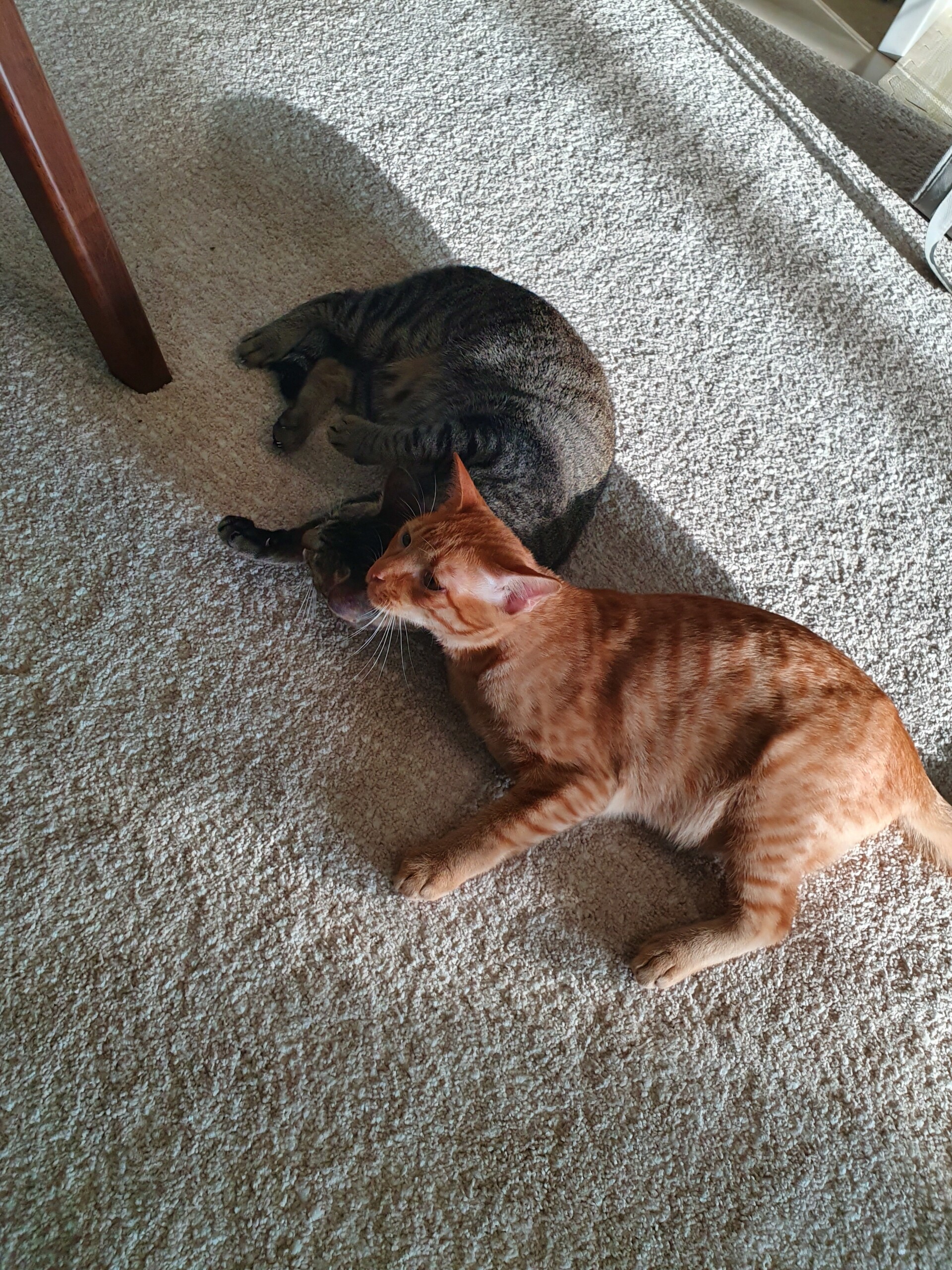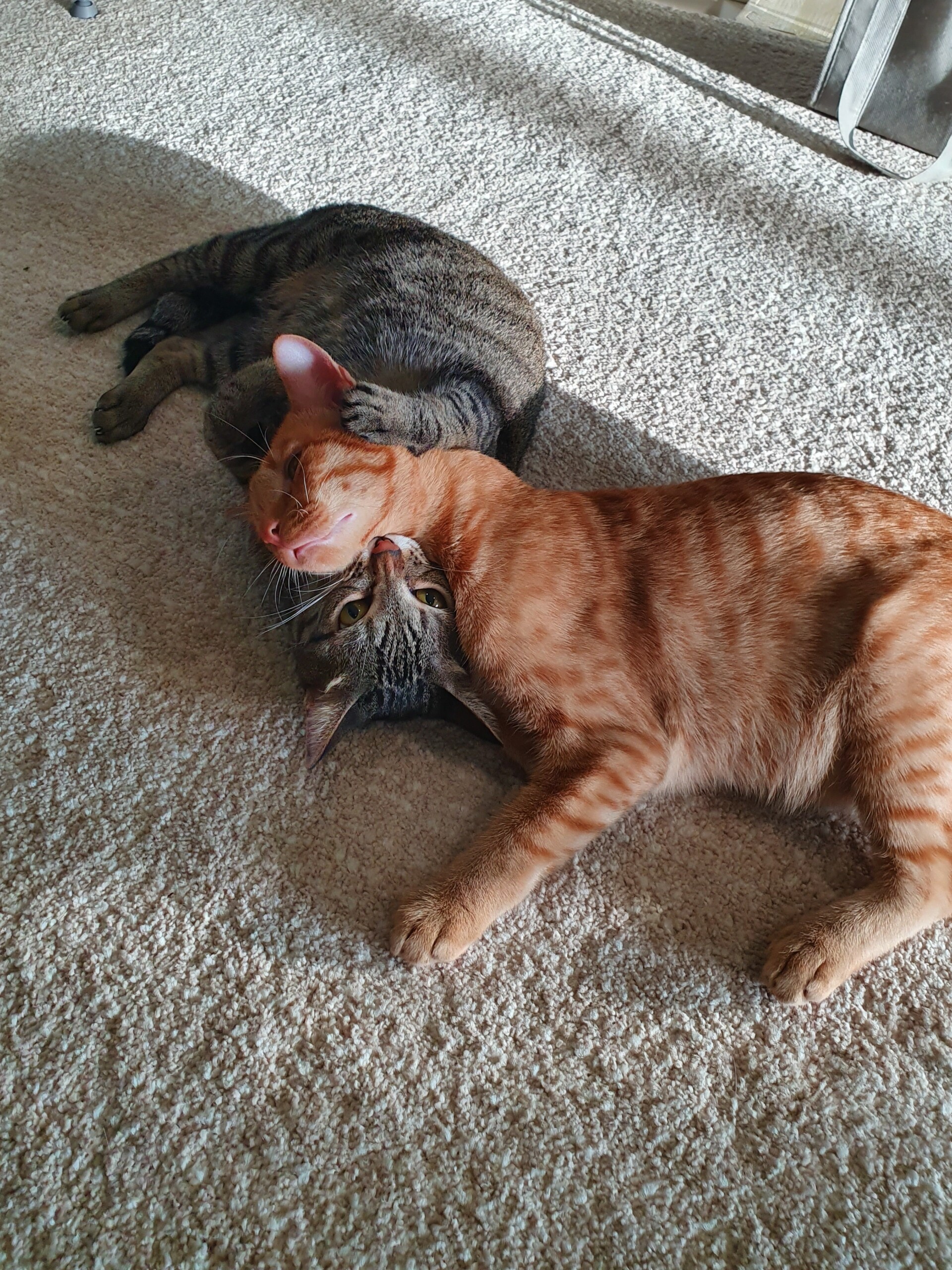 この2匹、追いかけっこやプロレスごっこはよくしてるけどくっついてるの珍しいのです。