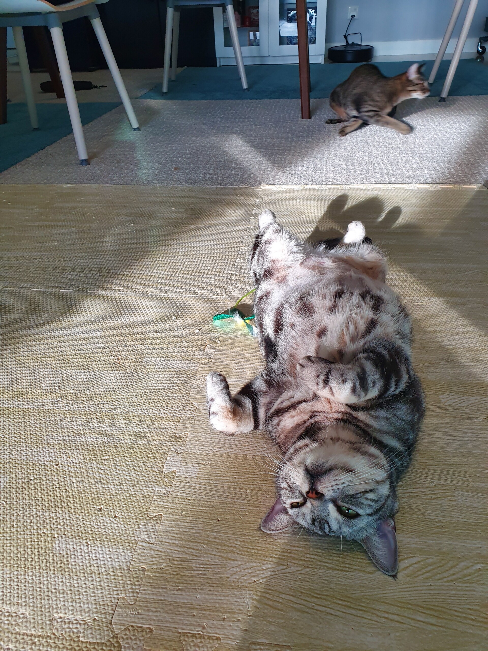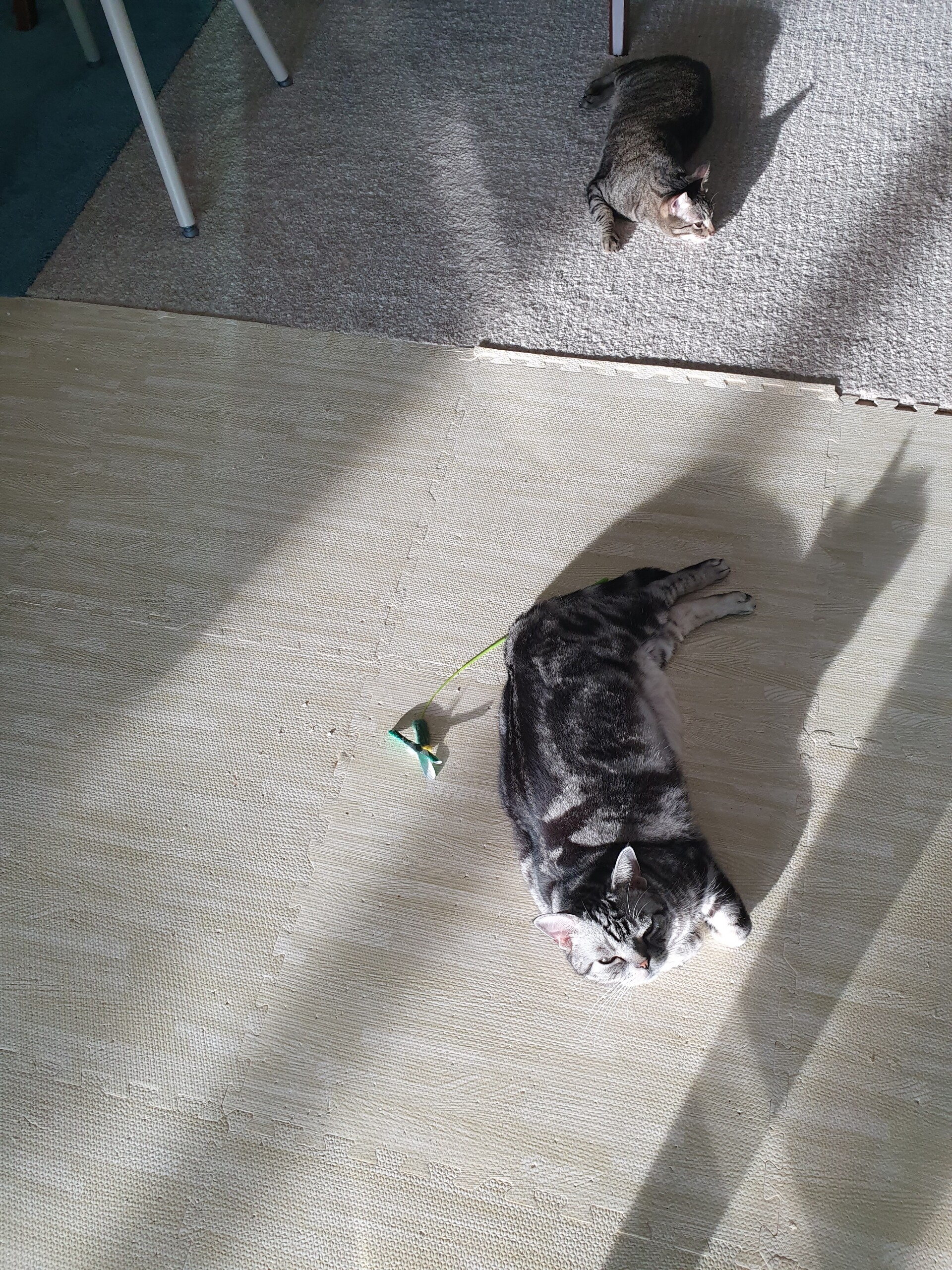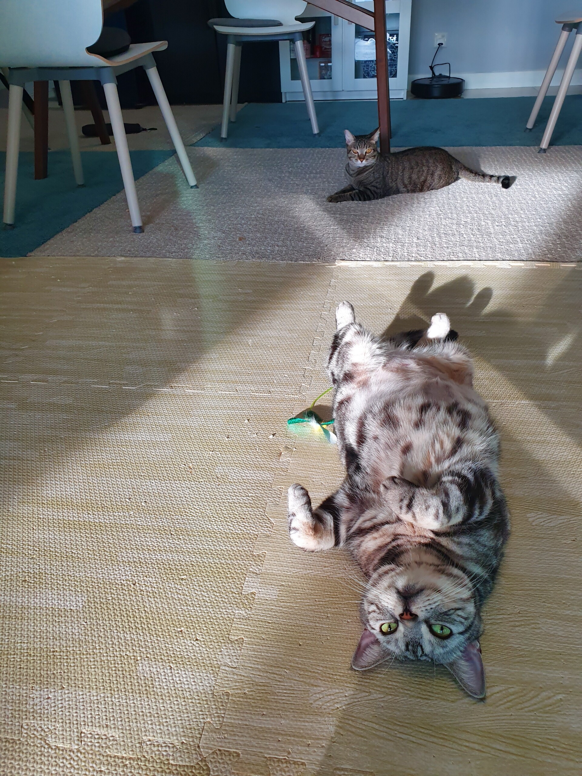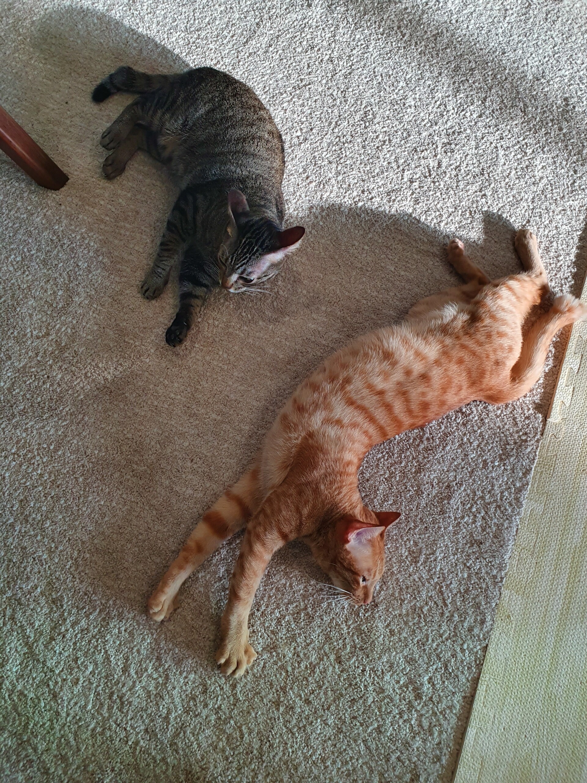 この2匹、追いかけっこやプロレスごっこはよくしてるけどくっついてるの珍しいのです。