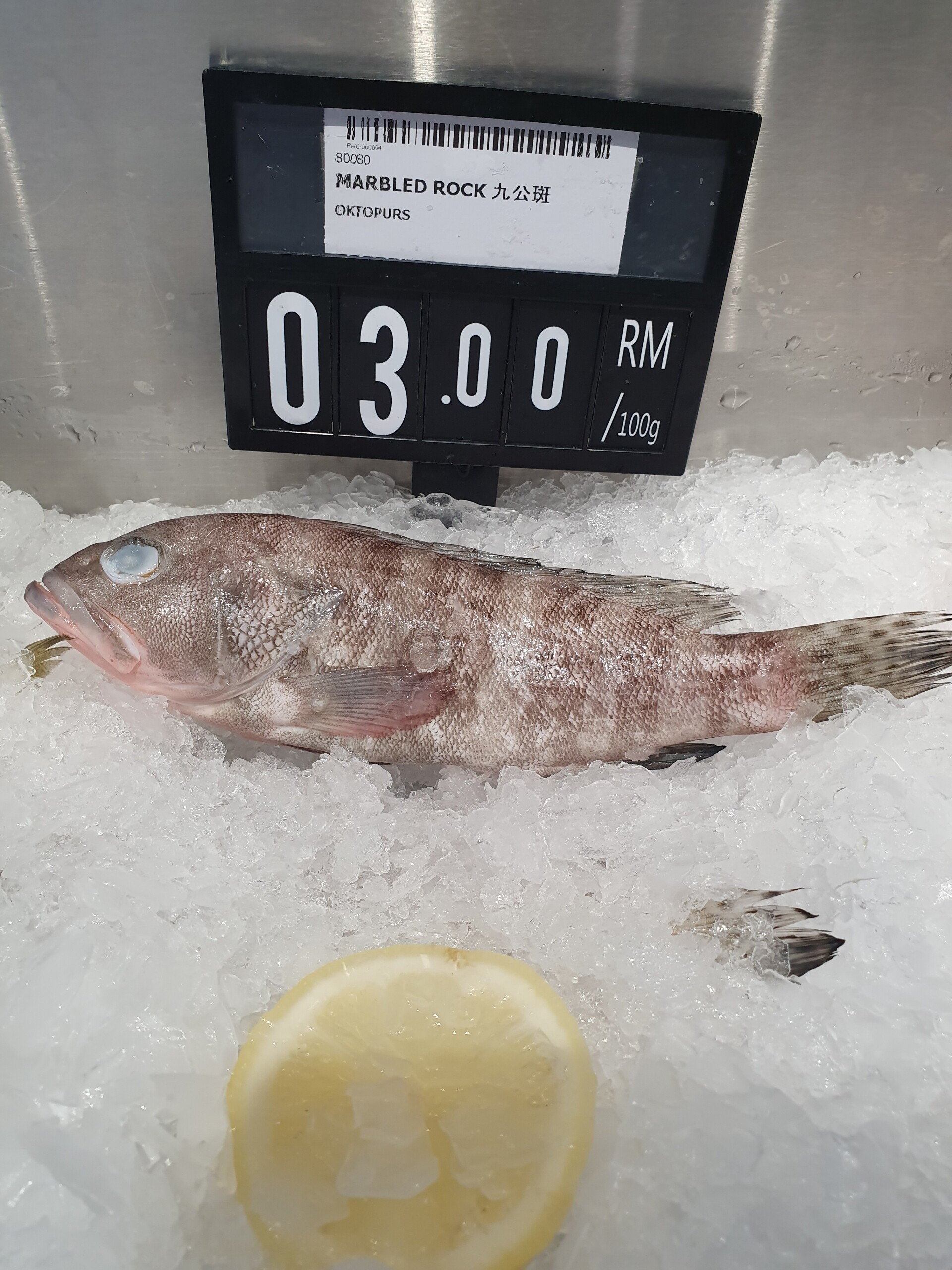 煮魚にした魚が売られてたので値札を見たら、Marbled Rock Fish