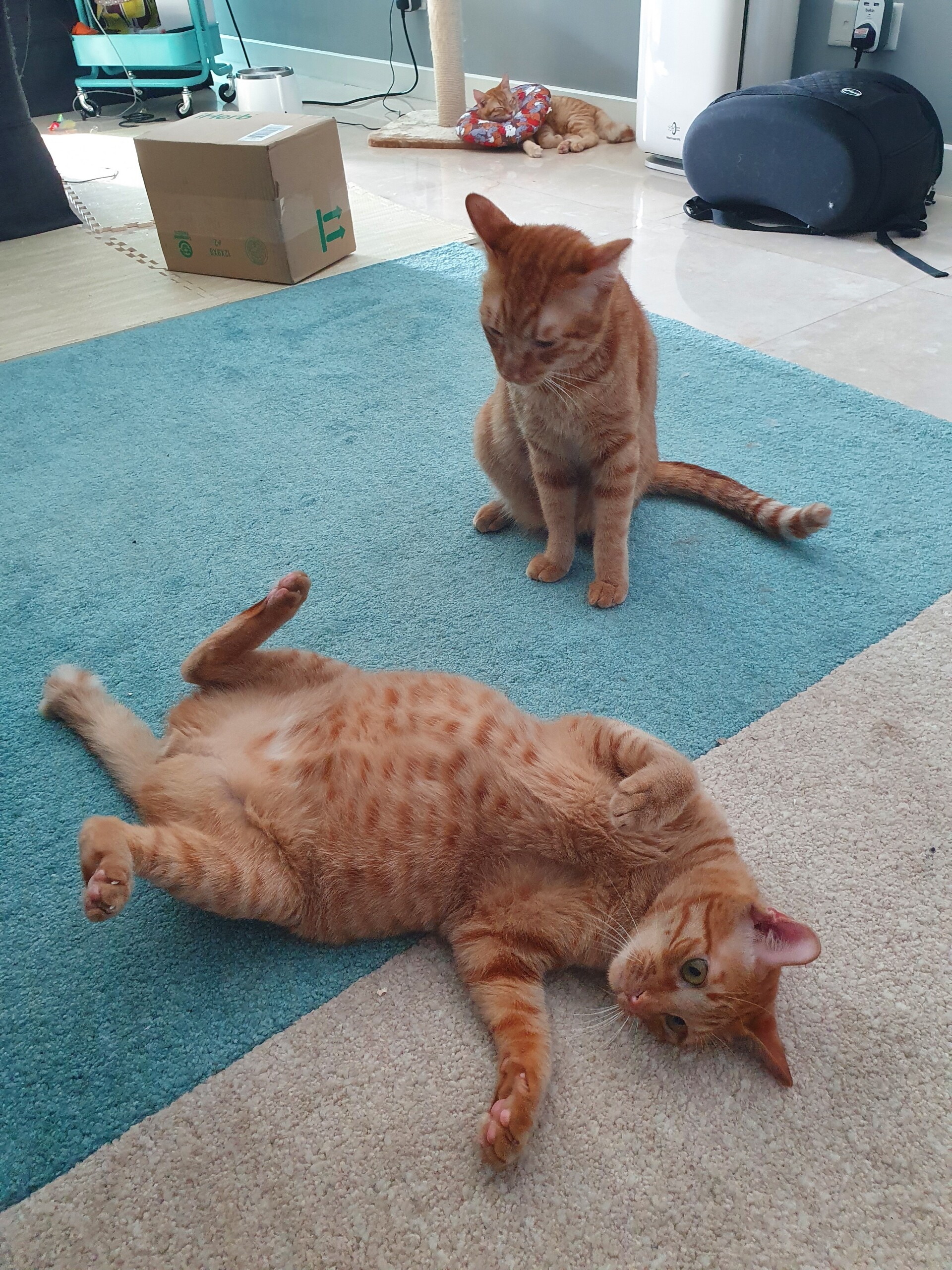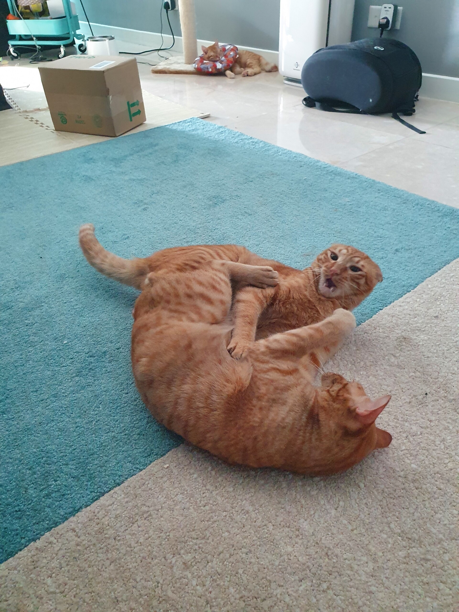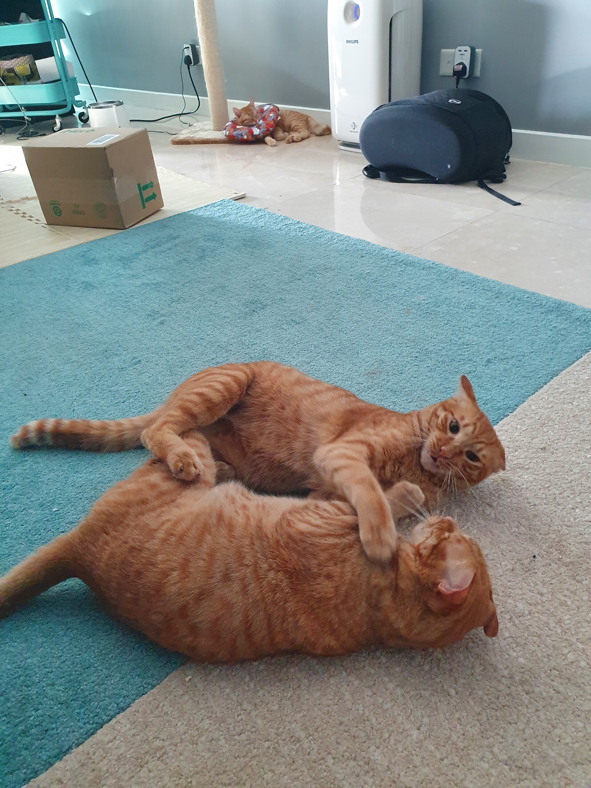 他のにゃんずも、もんちゃんが万全じゃないのわかるのか、もんちゃんにはちょっかいかけず兄弟で遊んでました。