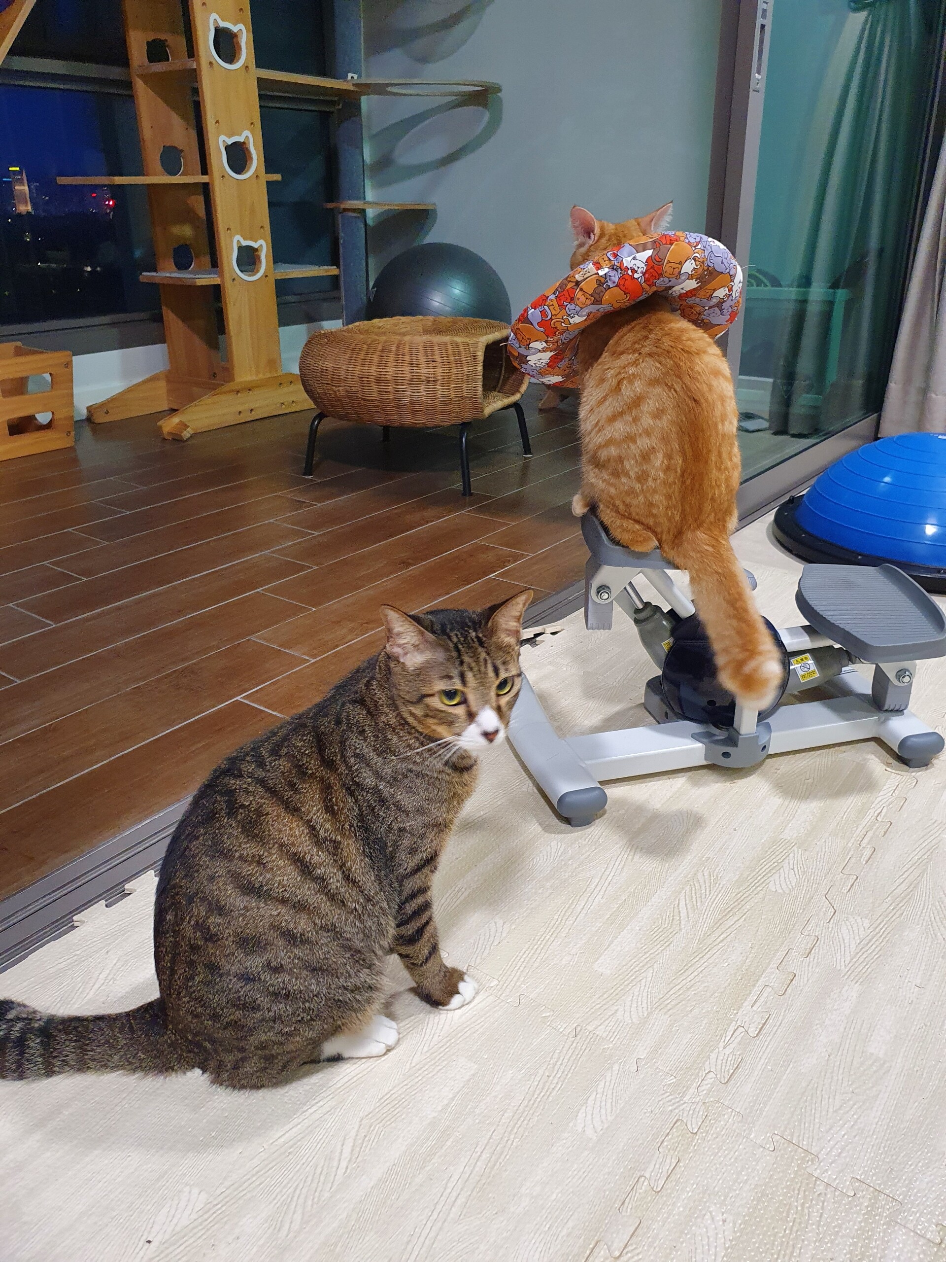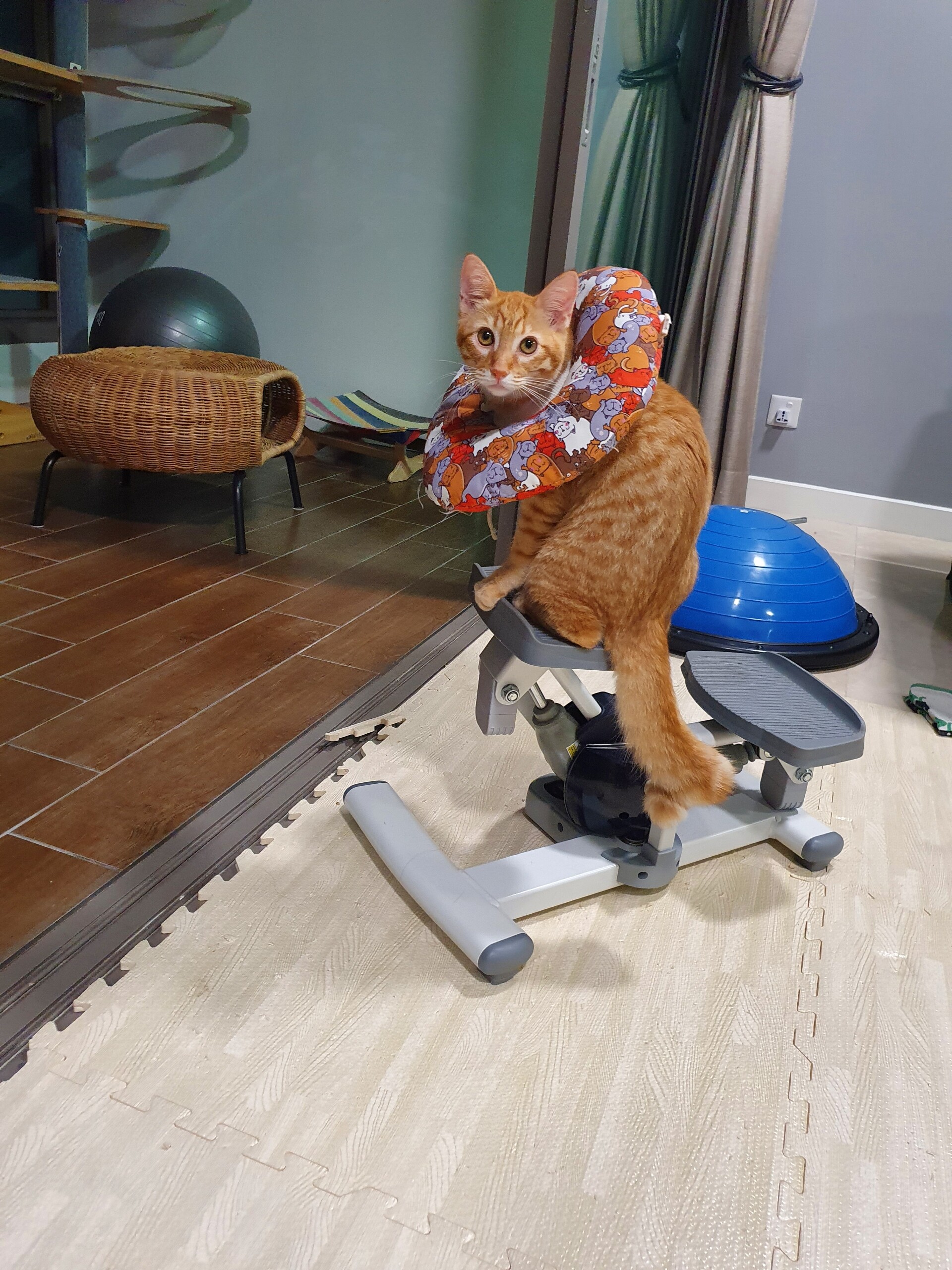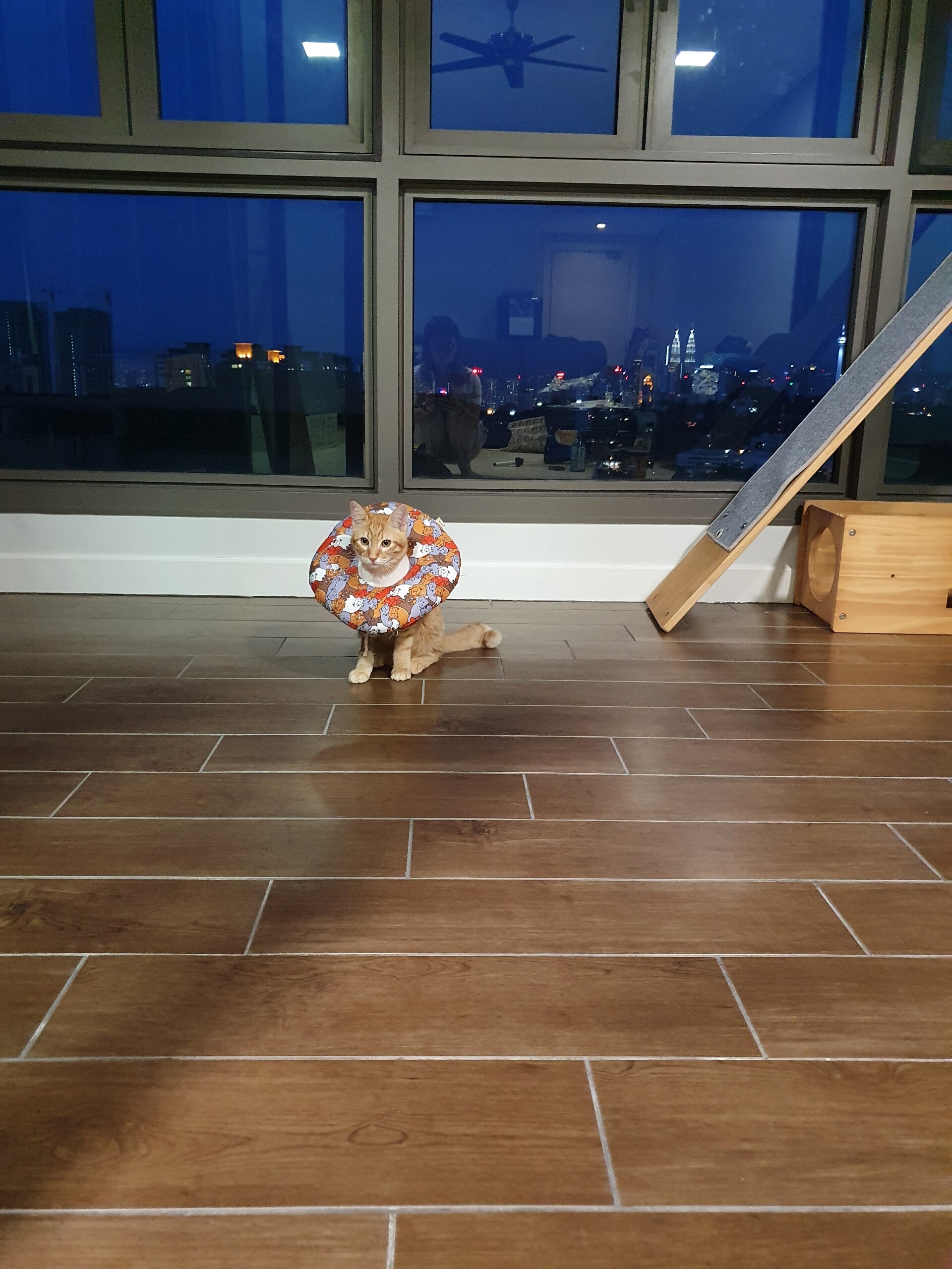 傷が開いたりしないようにもんちゃんだけ隔離した方がいいのかな、とも思ったのですが、自分でセーブしながら動いてる感じがしたのでカラーつけたままフリーにしとくことにしました。
