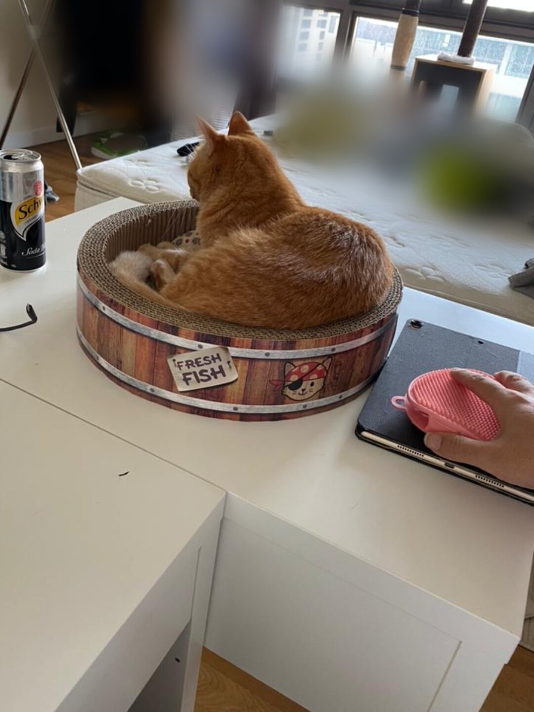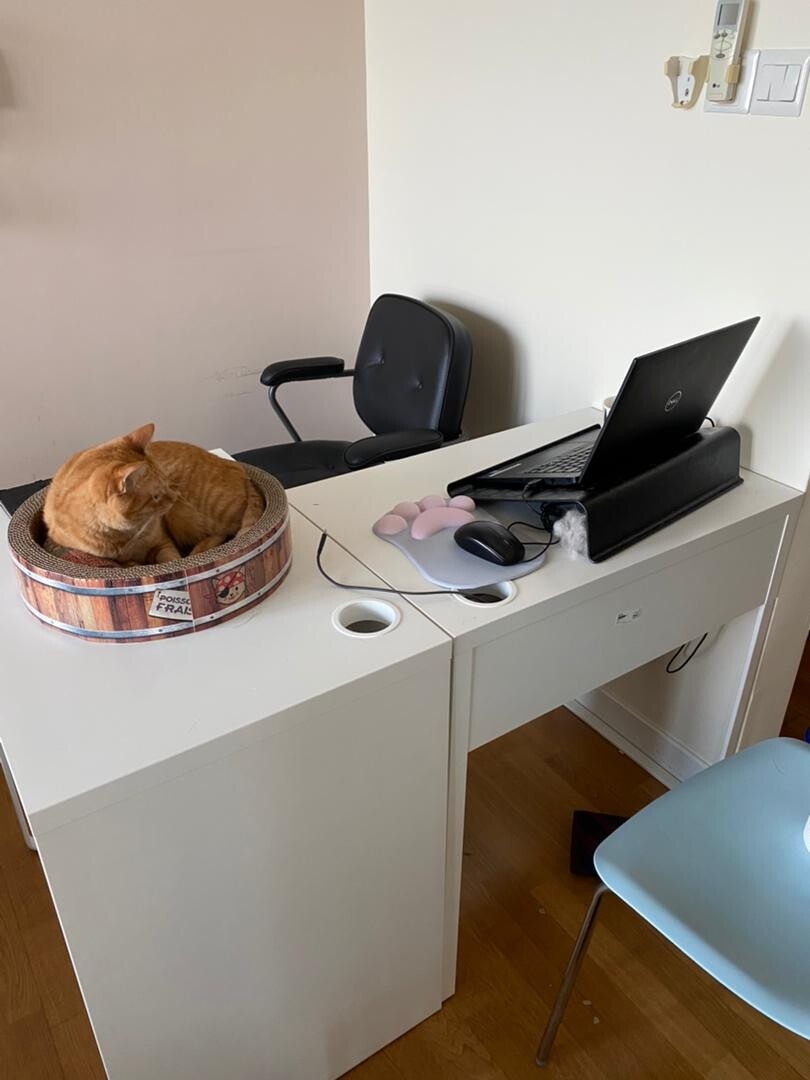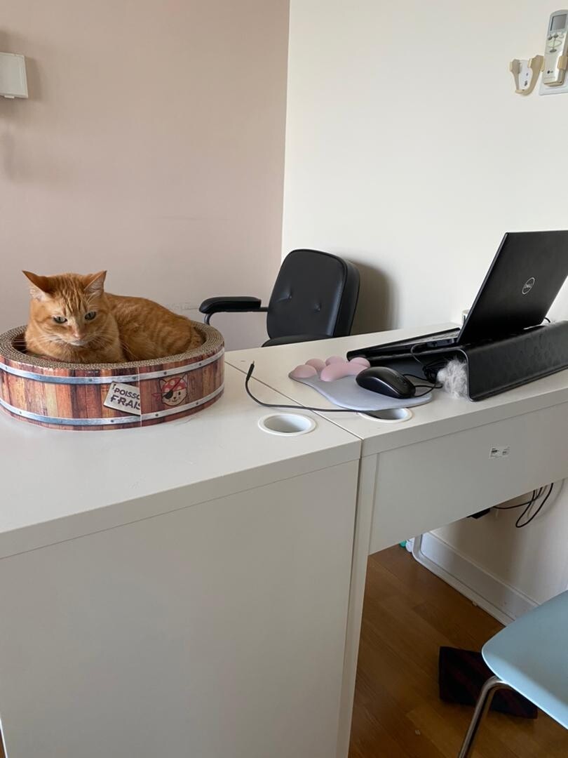机が広くなったことで作業効率がアップされてるかは謎ですが、猫パラダイス度はアップしております。