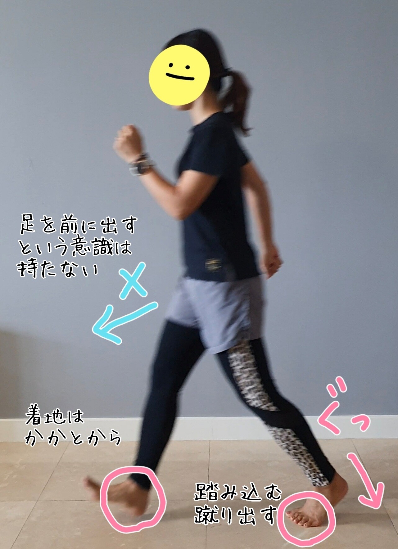 着地するときはかかとから。