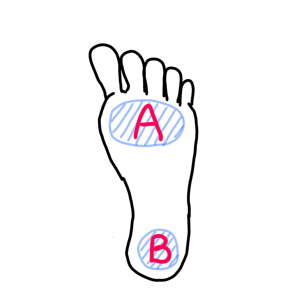 Aで蹴り出して、Bで着地。これを足の裏の感覚を研ぎ澄ましながらずっと意識。