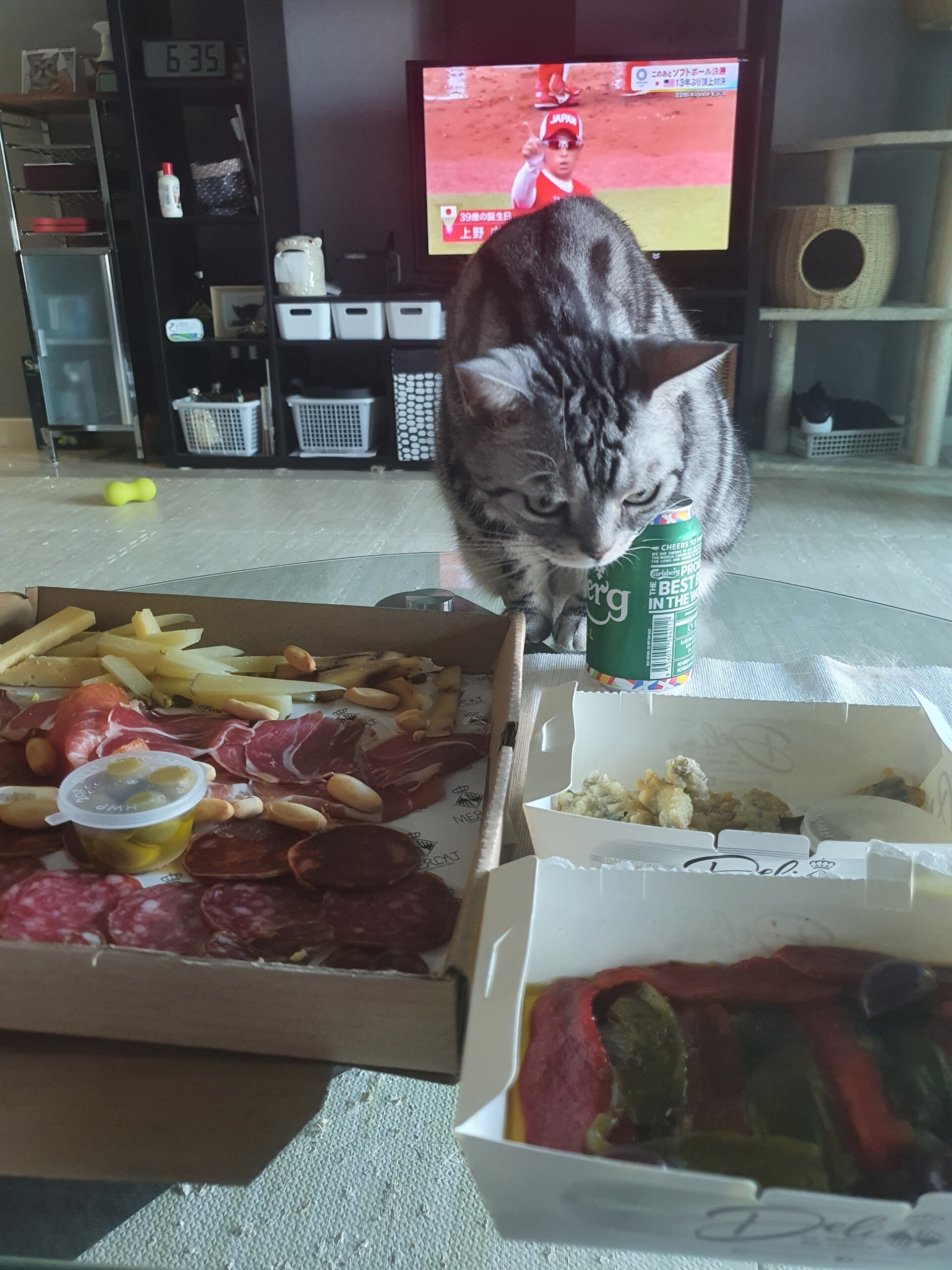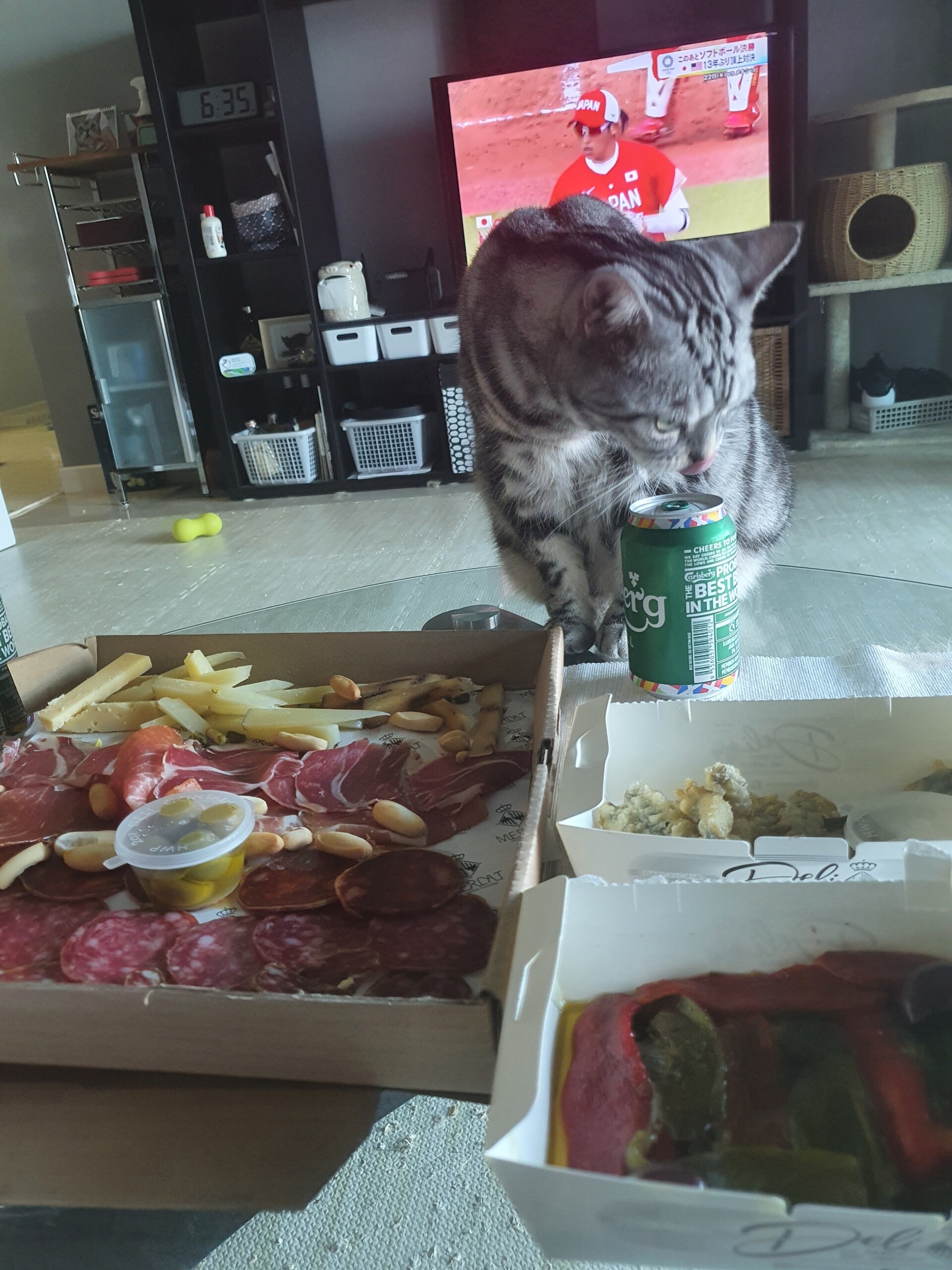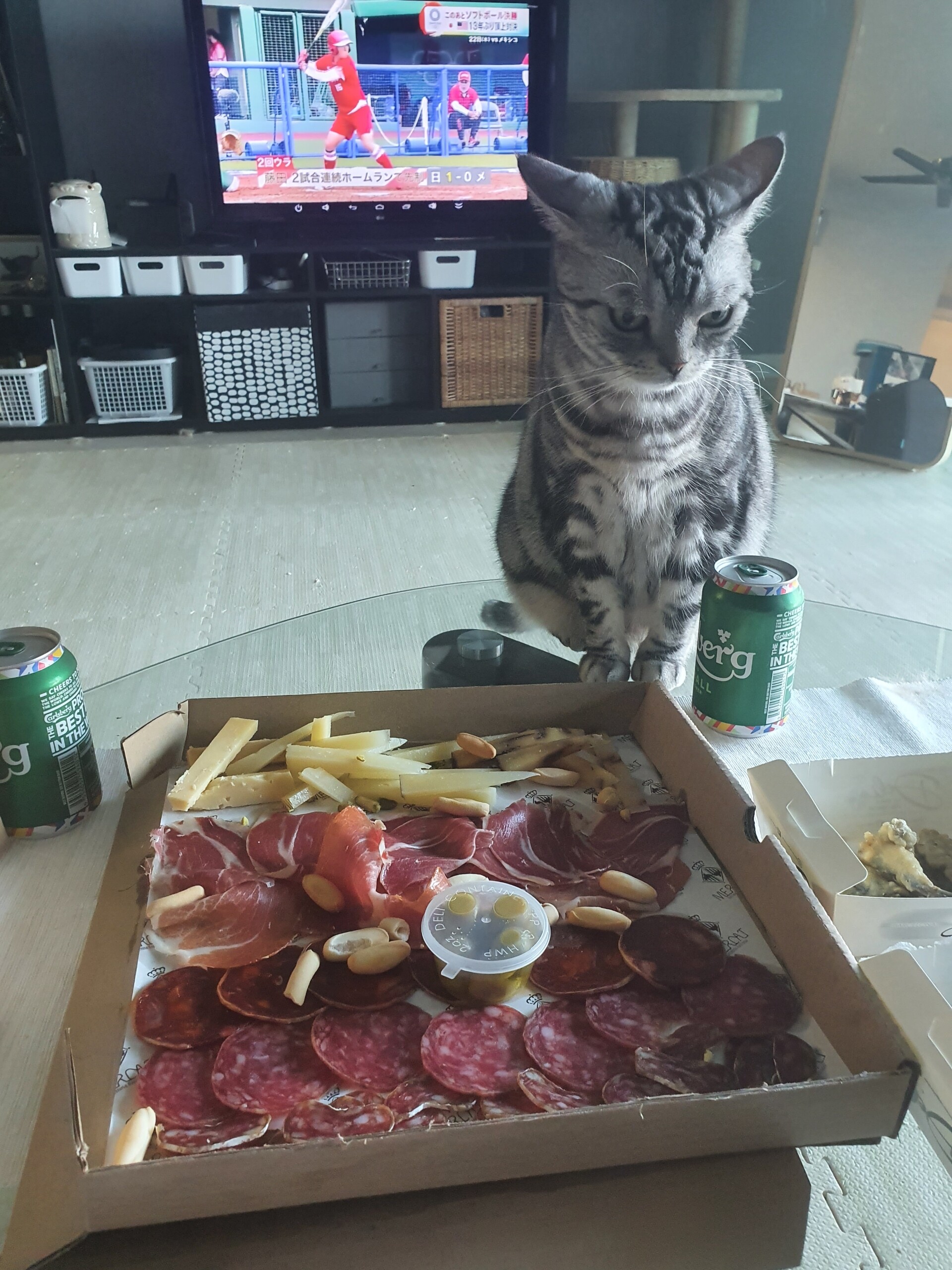観戦にそなえて、近所のスペイン料理屋さんでコールドプラッターをデリバリーしました。